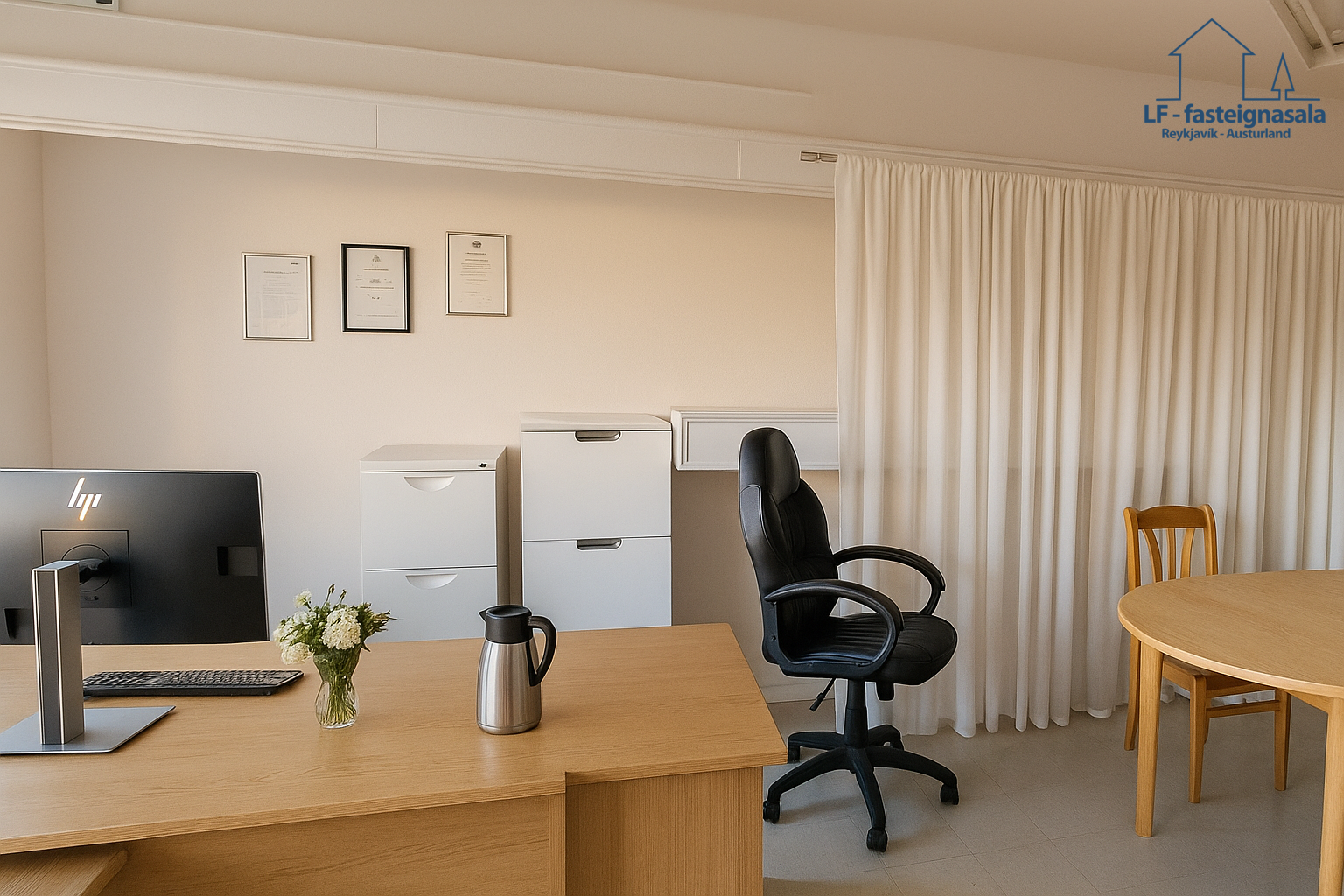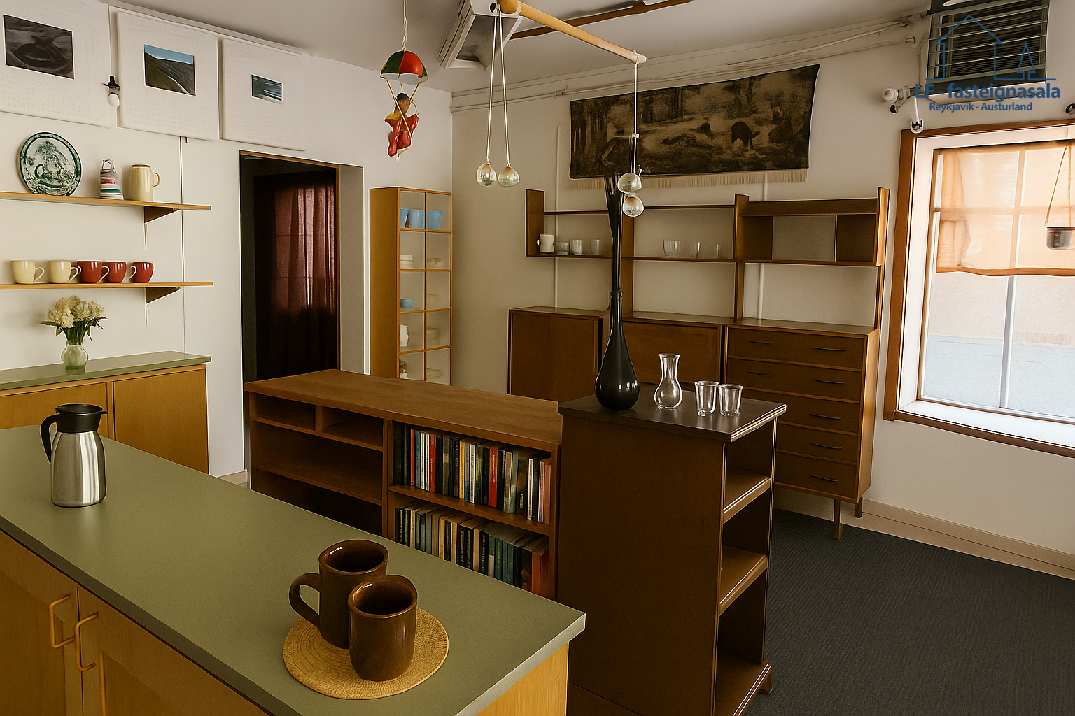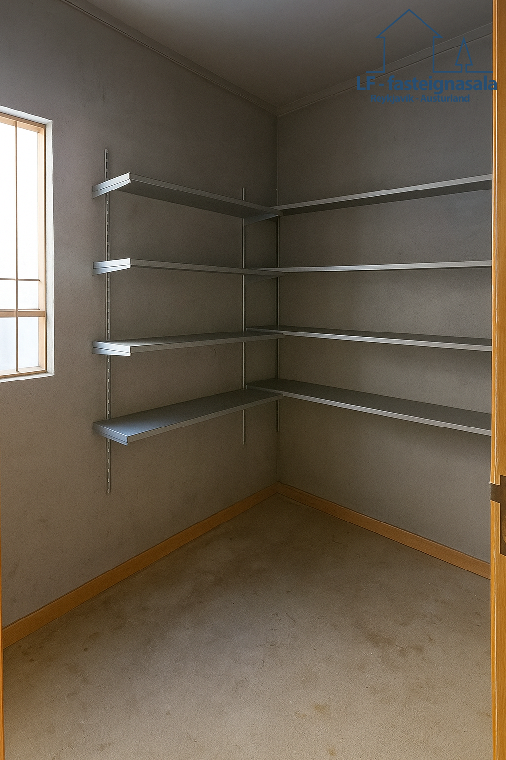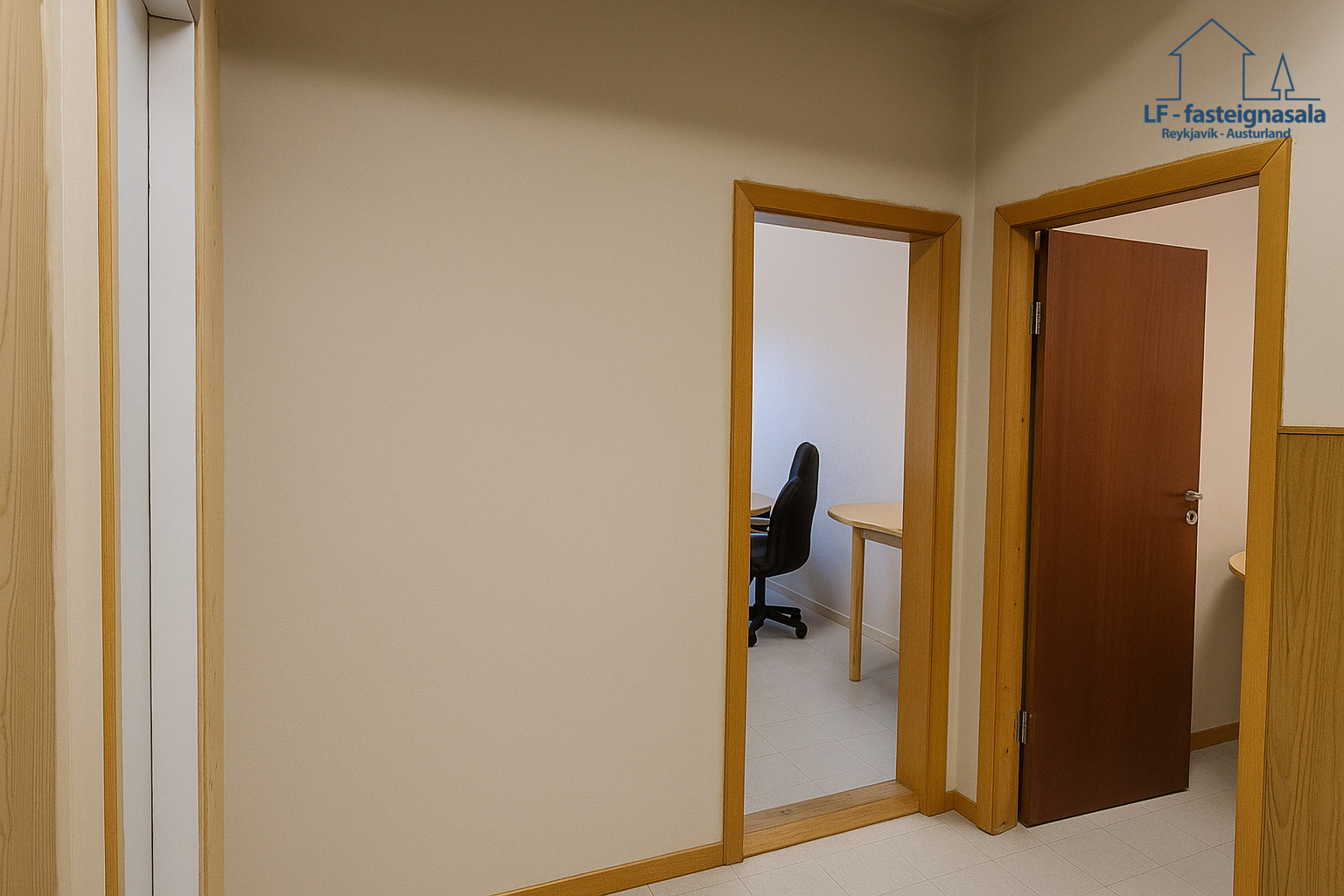Lf-fasteignasala/Lindin fasteignir s. 893-1319 og Þórdís Pála Reynisdóttir löggiltur fasteignasali thordis@lindinfasteignir.is kynna: Útkaupstaðarbraut 1 neðri hæð, vesturendi, Eskifirði. Um er að ræða eignarhluta í steinsteyptri neðri hæð hússins. Stærð eignarinnar er 107 fermetrar. Húsið var byggt sem verslunarhúsnæði og hefur lengst af hýst verslun. Eignaskiptasamningur er í þinglýsingarferli og er húsinu með honum skipt í 3 fasteignir. Verslunarrýmið sem hér um ræðir og íbúð fyrir ofan það ásamt eignarhluta á 2 hæðum í austurhluta hússins og því rými fylgir viðbygging á einni hæð. Gengið er upp eitt þrep frá götu inn í nokkuð stórt rými sem er í dag tvískipt með léttum vegg sem auðvelt er að fjarlægja. Hluti af þessu rými er stórt herbergi með breiðum opnum dyrum (gráar vinilflísar á gólfi og bókahillur). Inn af rýminu er í dag salerni og lítill gangur sem er stúkaður af með léttum vegg sem auðvelt er að fjarlægja, úr þessum litla gangi eru einnig dyraop sem í dag er lokað með plötu ínn í herbergið sem er nefnt hér fyrir ofan. Norðan megin við létta vegginn í stóra rýminu var skrifstofa og úr henni eru dyr inn í bakherbergi sem er handan við létta vegginn sem stúkar áður nefndan lítinn gang af. Við hlið þess rýmis er rúmgott geymsluherbergi með hillum. Löng og mjó geymsla er við hlið létta veggsins sem skiptir stóra rýminu í tvennt í dag. Gamalt vatnsinntak er í þessari geymslu. Hitaveita er í húsinu og er hún í dag sameiginlega fyrir þetta rými og íbúðina fyrir ofan en austurendinn er með sér hita. Verslunargluggarnir á vestur hlið hússins og á SV horninu eru úr tekki. Í flestum rúðum er mjög þykkt einfalt gler en a.m.k. ein stór rúða er með tvöföldu gleri. Gólfefni eru upprunalegar linoleum- og vinilflísar. Gluggar á norðurhlið eru lokaðir af að innanverðu og eru orðnir mjög lélegir. Rýmið býður upp á ýmsa skemmtilega notkun og er húsið mjög vel staðsett fyrir verslun og eða kaffihús eða veitingastað t.d. Einngi væri hægt að gera glæsilega íbúð með mikilli lofthæð í rýminu en seljandi kýs frekar að selja einhverjum sem hyggir á atvinnustarfssemi í húsinu en skoðar auðvitað öll tilboð.