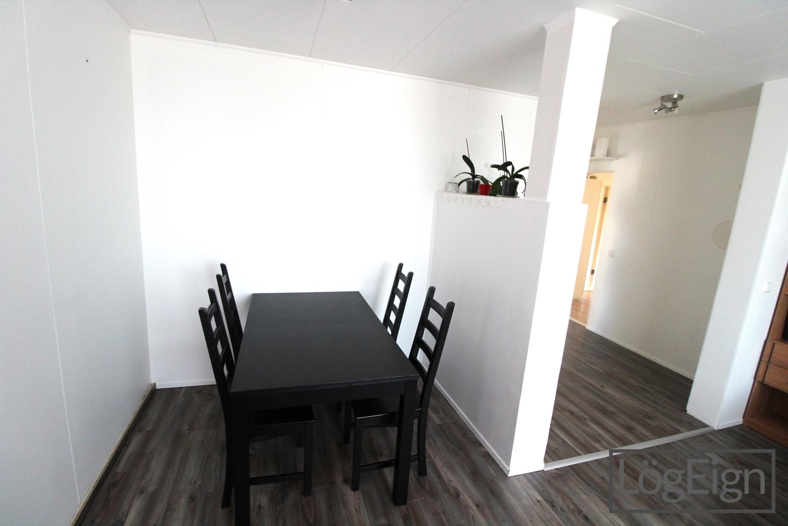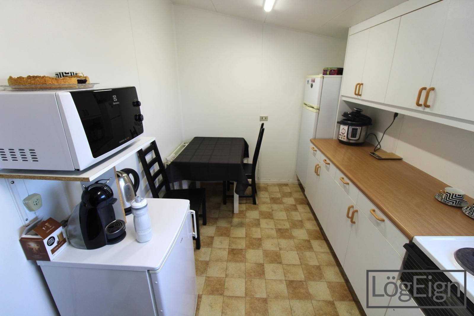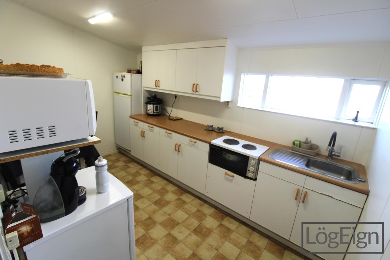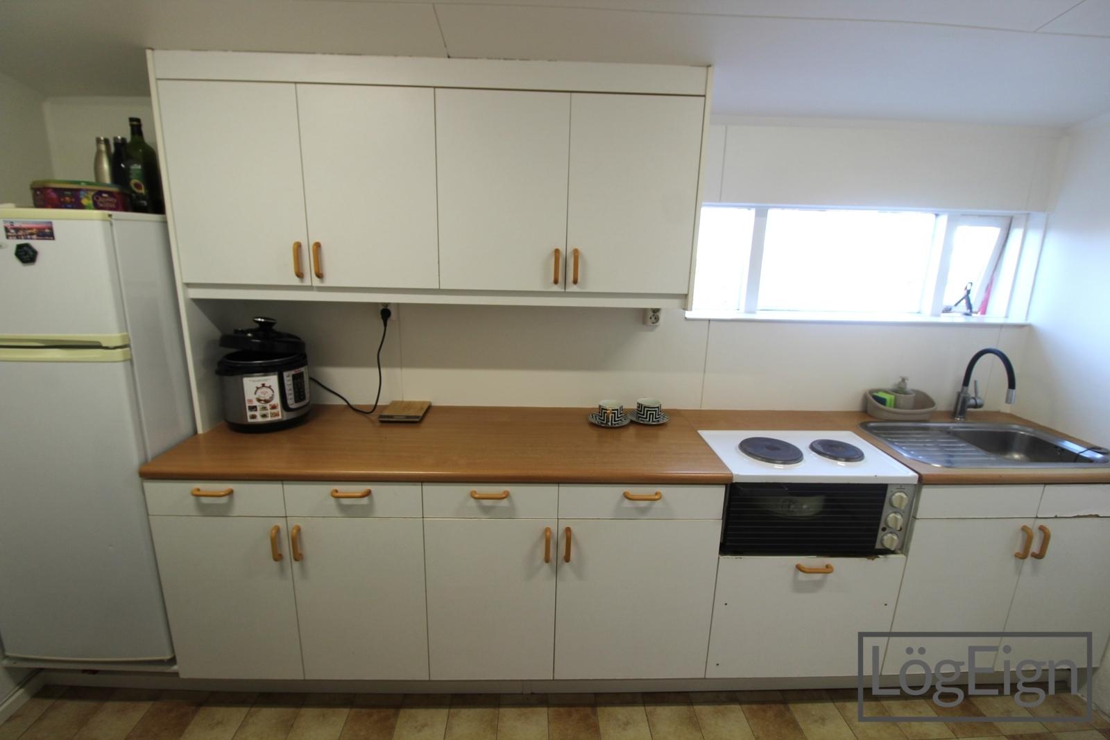 Nánari lýsing; Gengið er inn austan megin í húsinu og er þar malarbílastæði fyrir framan. Gengið er inn í anndyri sem byggt var síðar við húsið úr timbri. Þar eru flísar á gólfi. Lítil geymsla er við forstofu. Úr forstofu er gengið upp þrep inn í hol íbúðar. Eldhús og herbergi eru sunnan megin í íbúðinni. Eldhús er með eldri innréttingu. Baðherbergi er fyrir miðju í holi og er þar tengi fyrir þvottavél og þurrkara. Baðherbergi var gert upp nýlega á smekklegan hátt. Norðan megin í húsinu er herbergi og stofa. Stórir gluggar eru í stofu og er hún rúmgóð miðað við stærð íbúðar. Annað; - Járn á þaki var endurnýjað fyrir rúmlega 10 árum. - Nýlegt gólfefni er á stórum hluta íbúðar. - Rafmagn hefur verið endurnýjað að einhverju leyti. - Baðherbergi var endurnýjað að öllu leyti fyrir nokkrum árum.