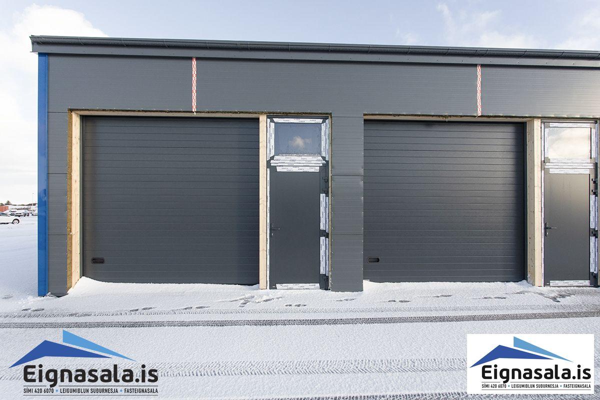Iðnaðarhurðir: 3,1 m breiðar x 3,0 m háar, án mótors, litur dökkgrár.