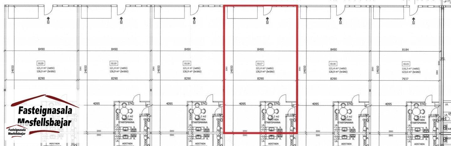 Eignin afhendist fullbúin að utan, að innan er komin rafmagnstafla, hitablásari, rafmagnsopnari á iðnaðarhurð, ljós eru í loftum og fyrir utan.