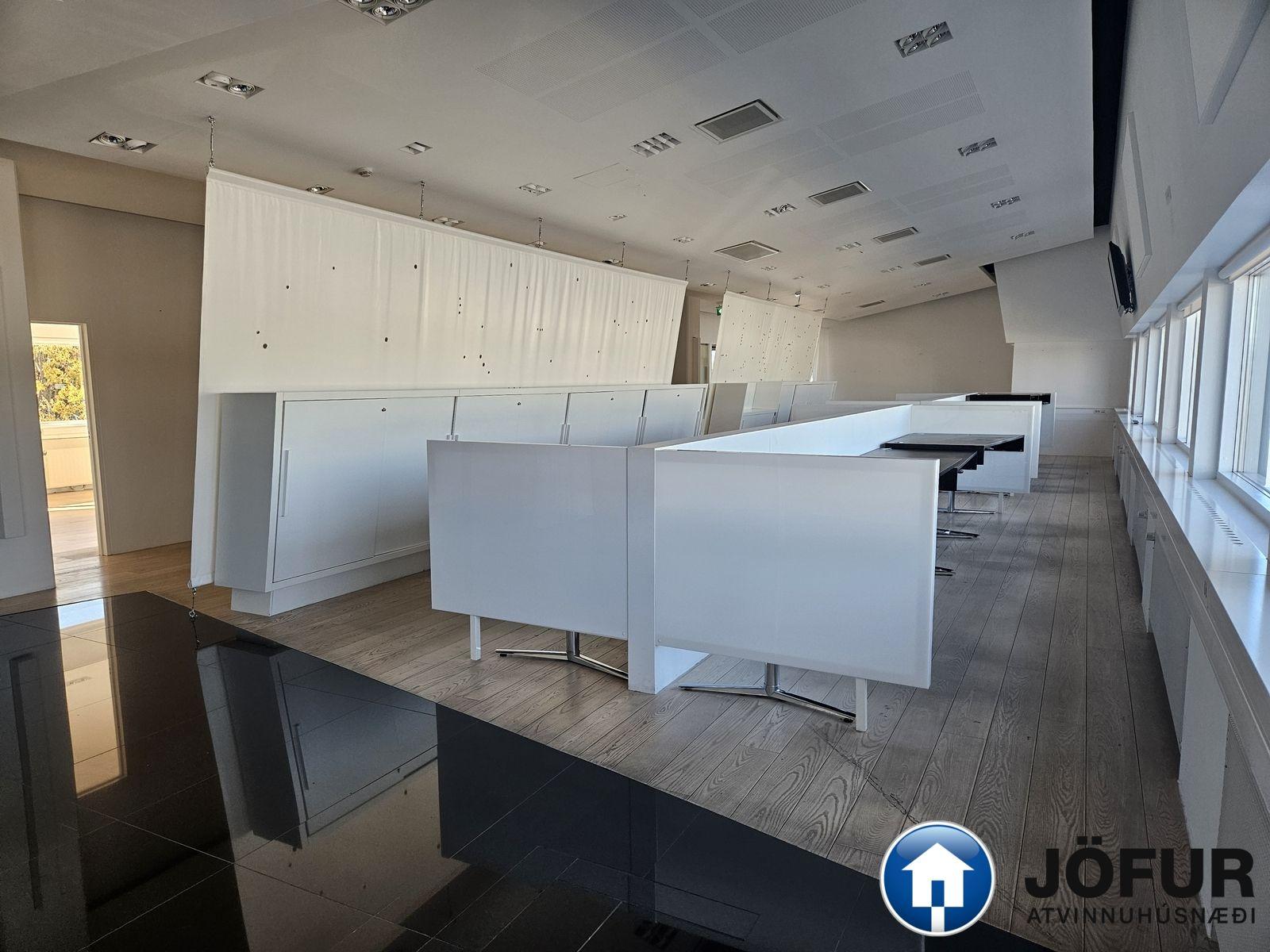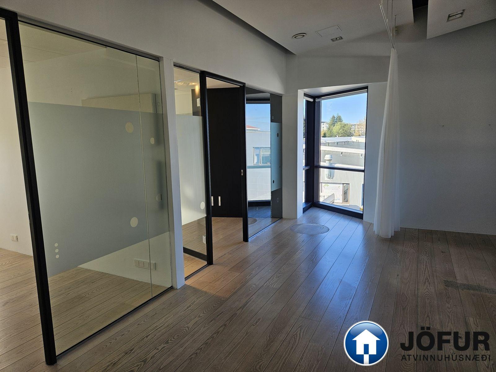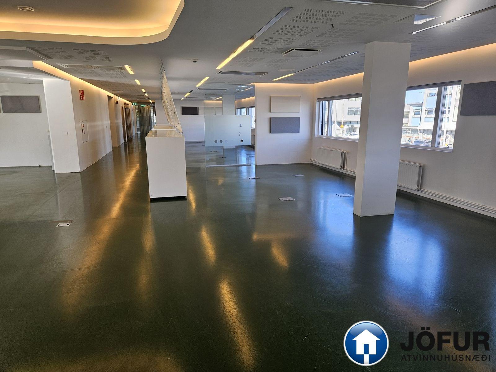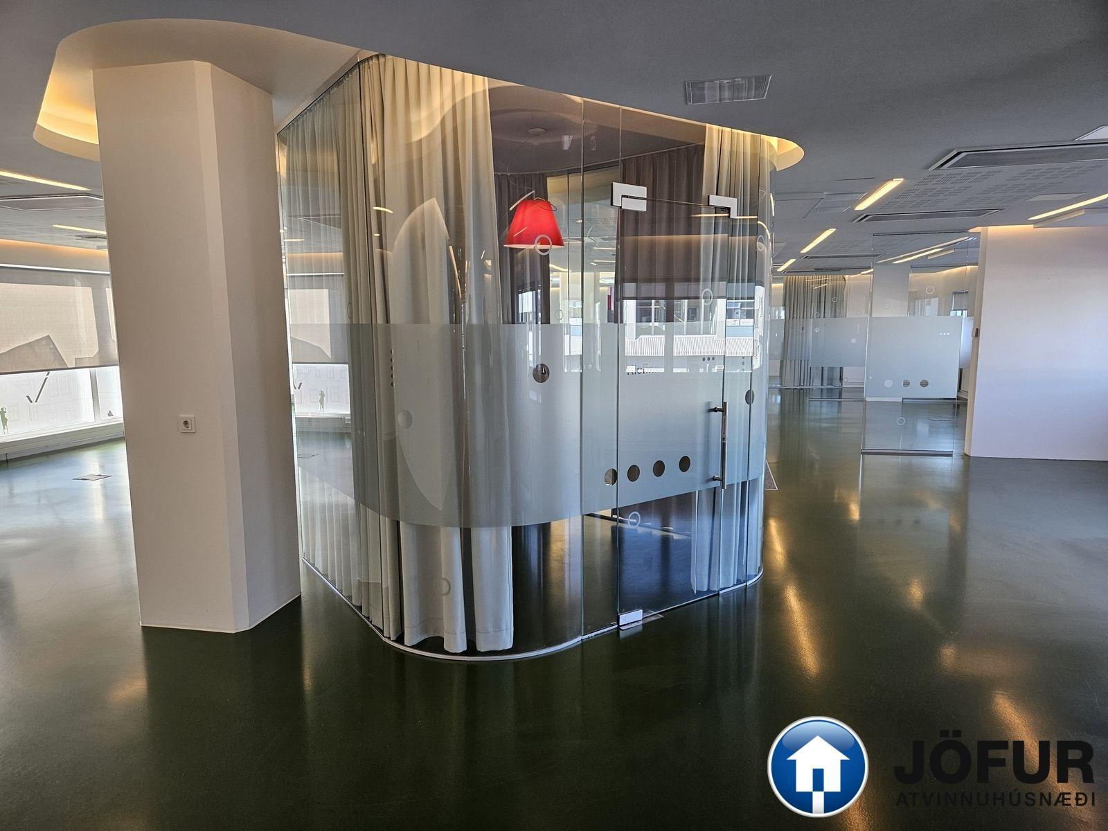 Nánari lýsing: Glæsilegt skrifstofuhúsnæði á 4 hæðum sem skiptist upp í stór opin skrifstofurými, margar lokaðar skrifstofur, fundarherbergi, eldhús, snyrtingar og tæknirými. Á efstu hæðinni er mötuneyti með fundarherbergi. Kerfisloft og lýsing í loftum. Sérsmíðaðar innréttingar. Aðgengi fatlaðra er gott og næg bílastæði eru á lóð hússins. Sturtu- og hjólageymsluaðstaða er til staðar. VSK leggst ekki við leigufjárhæðina.