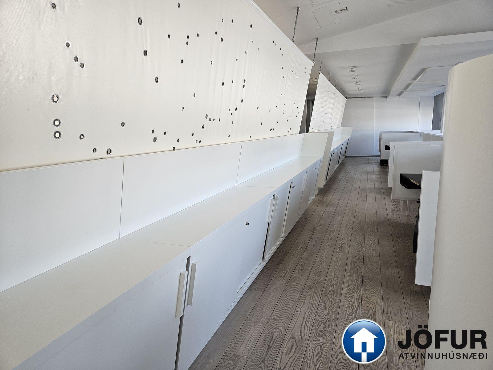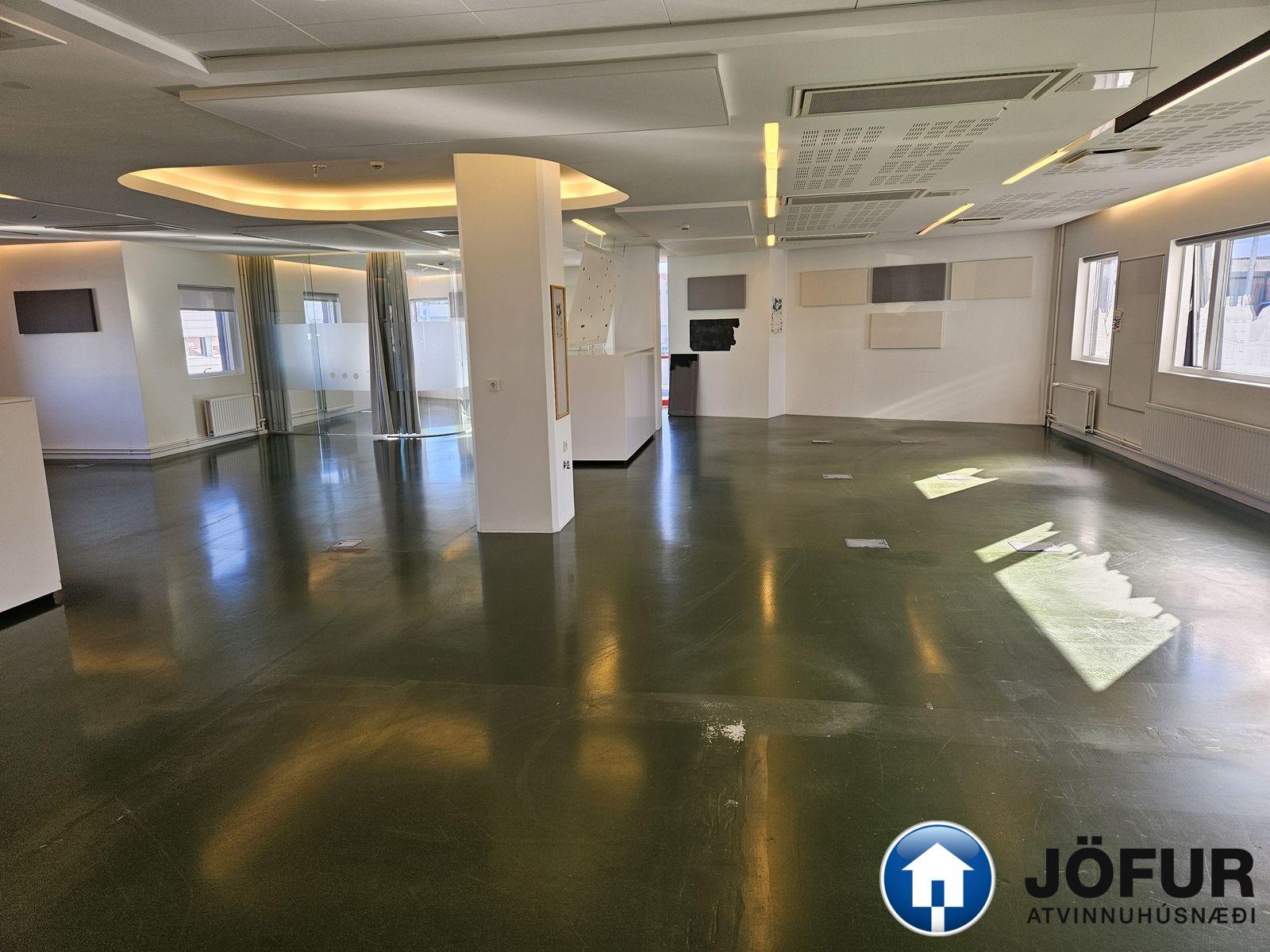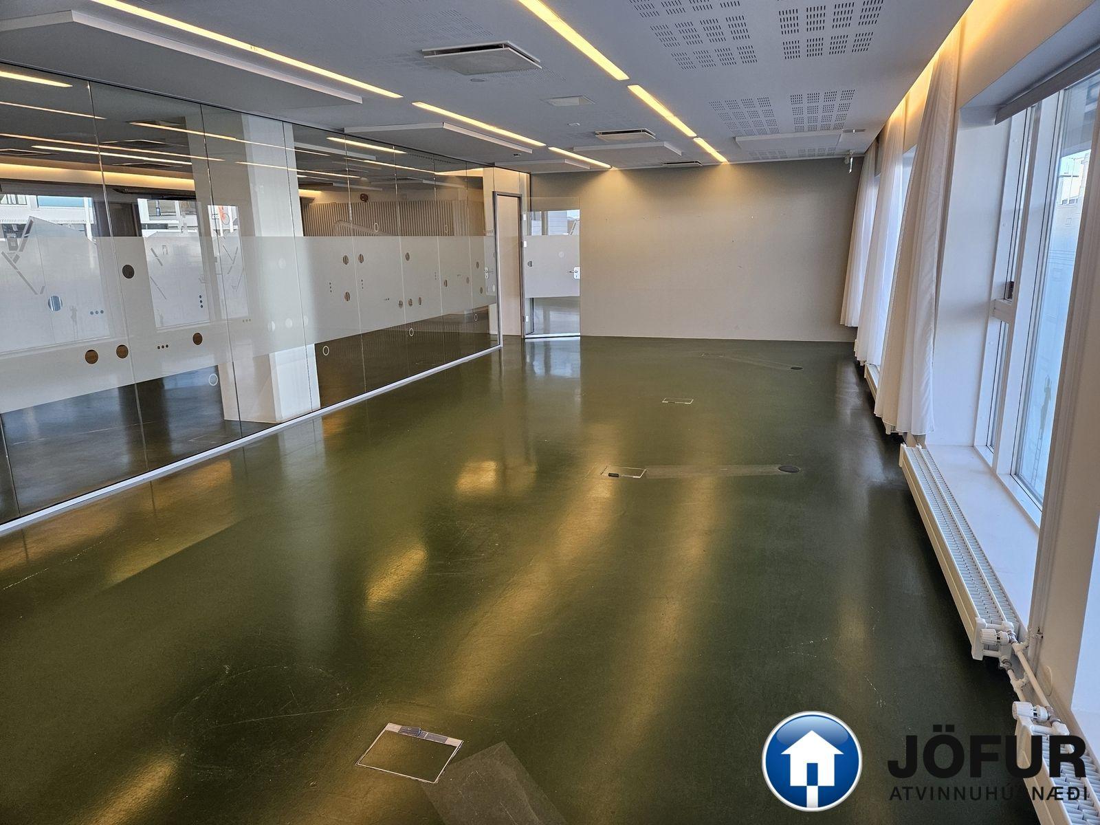 Nánari lýsing: Glæsilegt skrifstofuhúsnæði á 4 hæðum sem skiptist upp í stór opin skrifstofurými, margar lokaðar skrifstofur, fundarherbergi, eldhús, snyrtingar og tæknirými. Á efstu hæðinni er mötuneyti með fundarherbergi. Kerfisloft og lýsing í loftum. Sérsmíðaðar innréttingar. Aðgengi fatlaðra er gott og næg bílastæði eru á lóð hússins. Sturtu- og hjólageymsluaðstaða er til staðar. VSK leggst ekki við leigufjárhæðina.