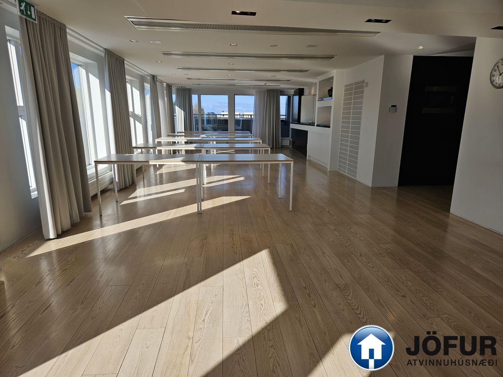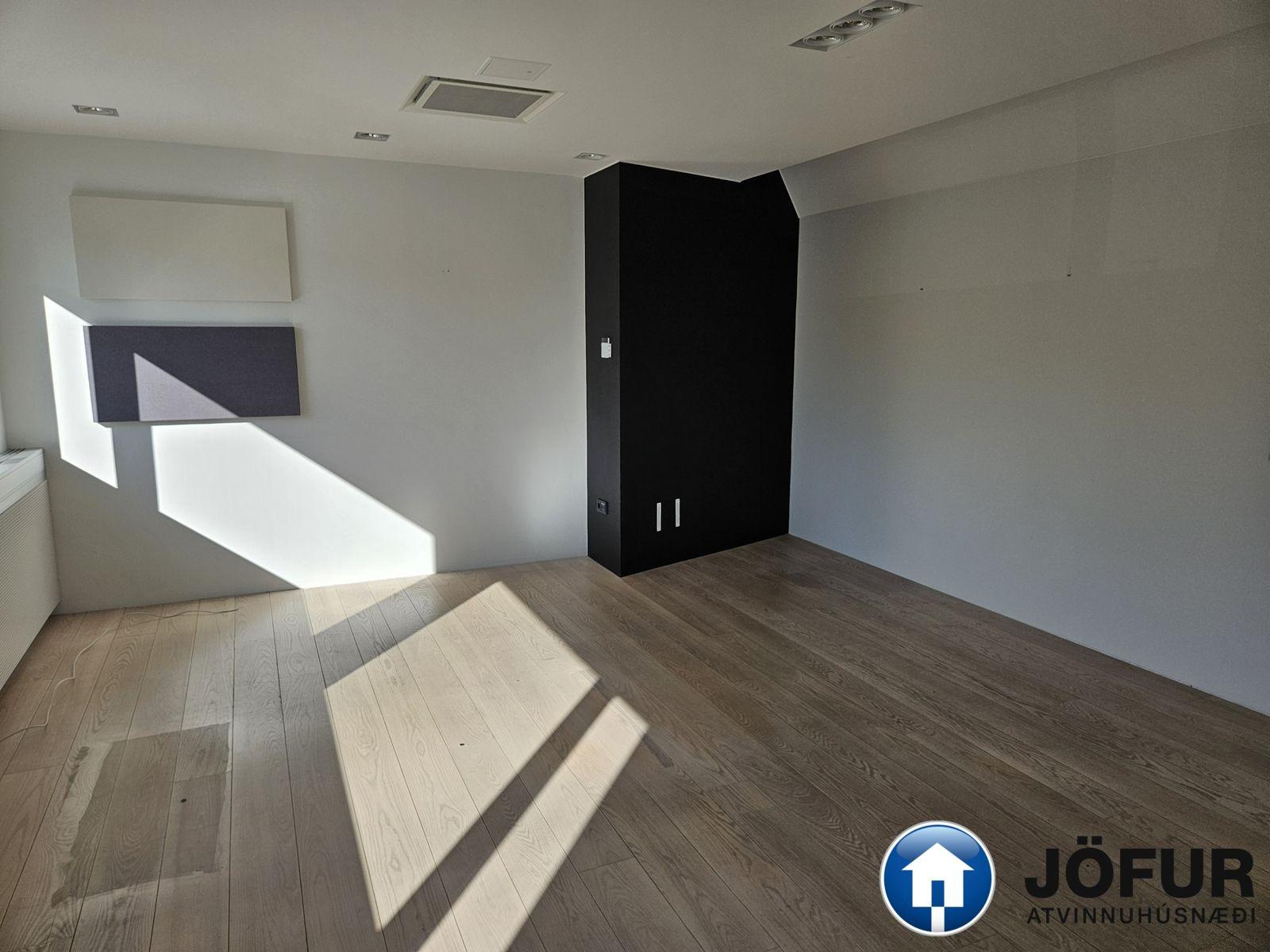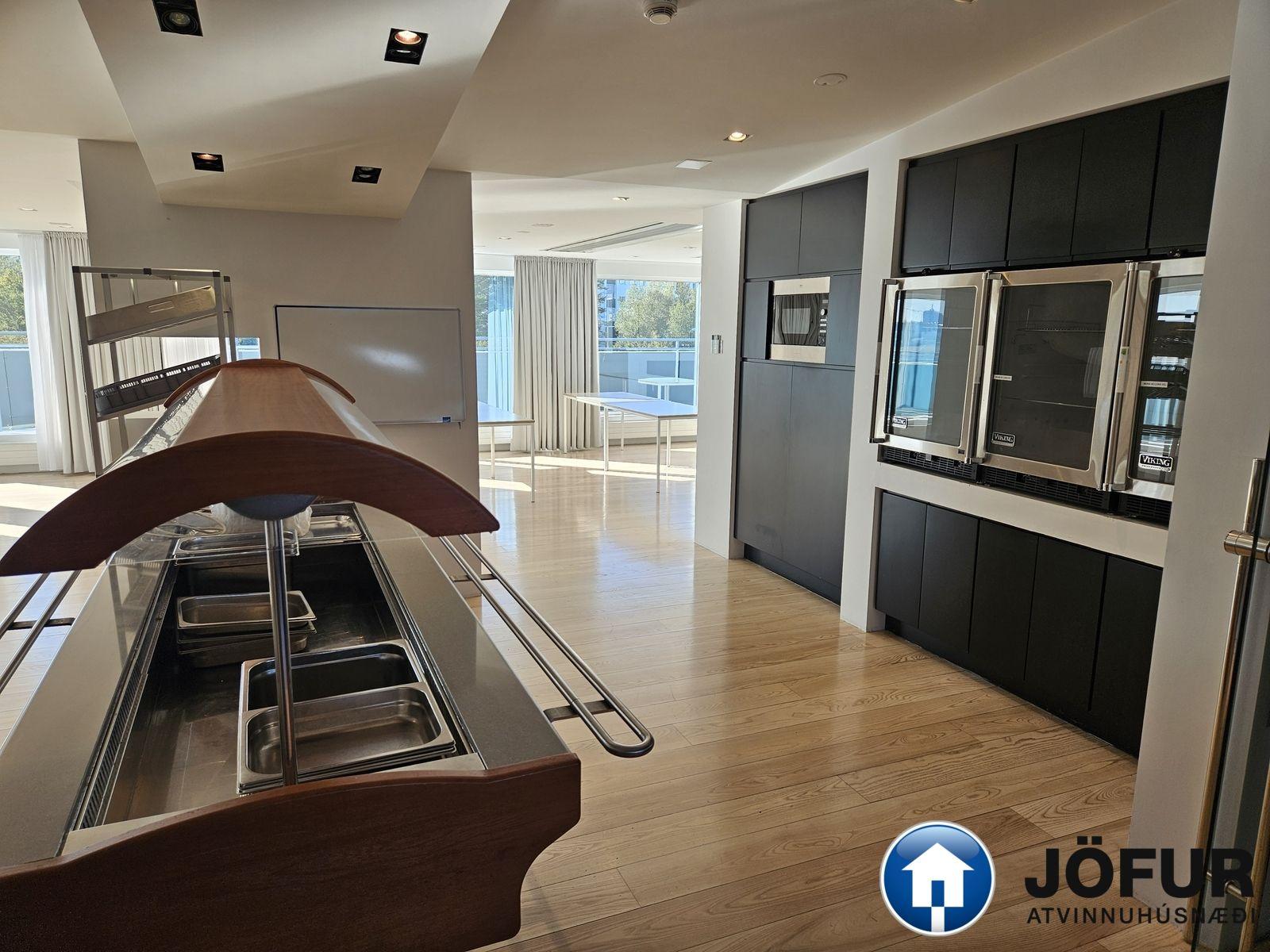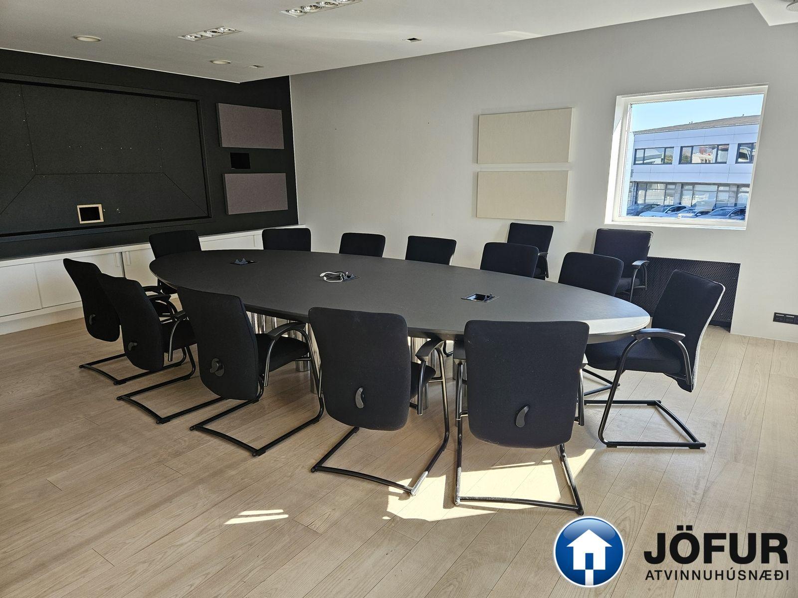 Nánari lýsing: Glæsilegt skrifstofuhúsnæði á 4 hæðum sem skiptist upp í stór opin skrifstofurými, margar lokaðar skrifstofur, fundarherbergi, eldhús, snyrtingar og tæknirými. Á efstu hæðinni er mötuneyti með fundarherbergi. Kerfisloft og lýsing í loftum. Sérsmíðaðar innréttingar. Aðgengi fatlaðra er gott og næg bílastæði eru á lóð hússins. Sturtu- og hjólageymsluaðstaða er til staðar. VSK leggst ekki við leigufjárhæðina.