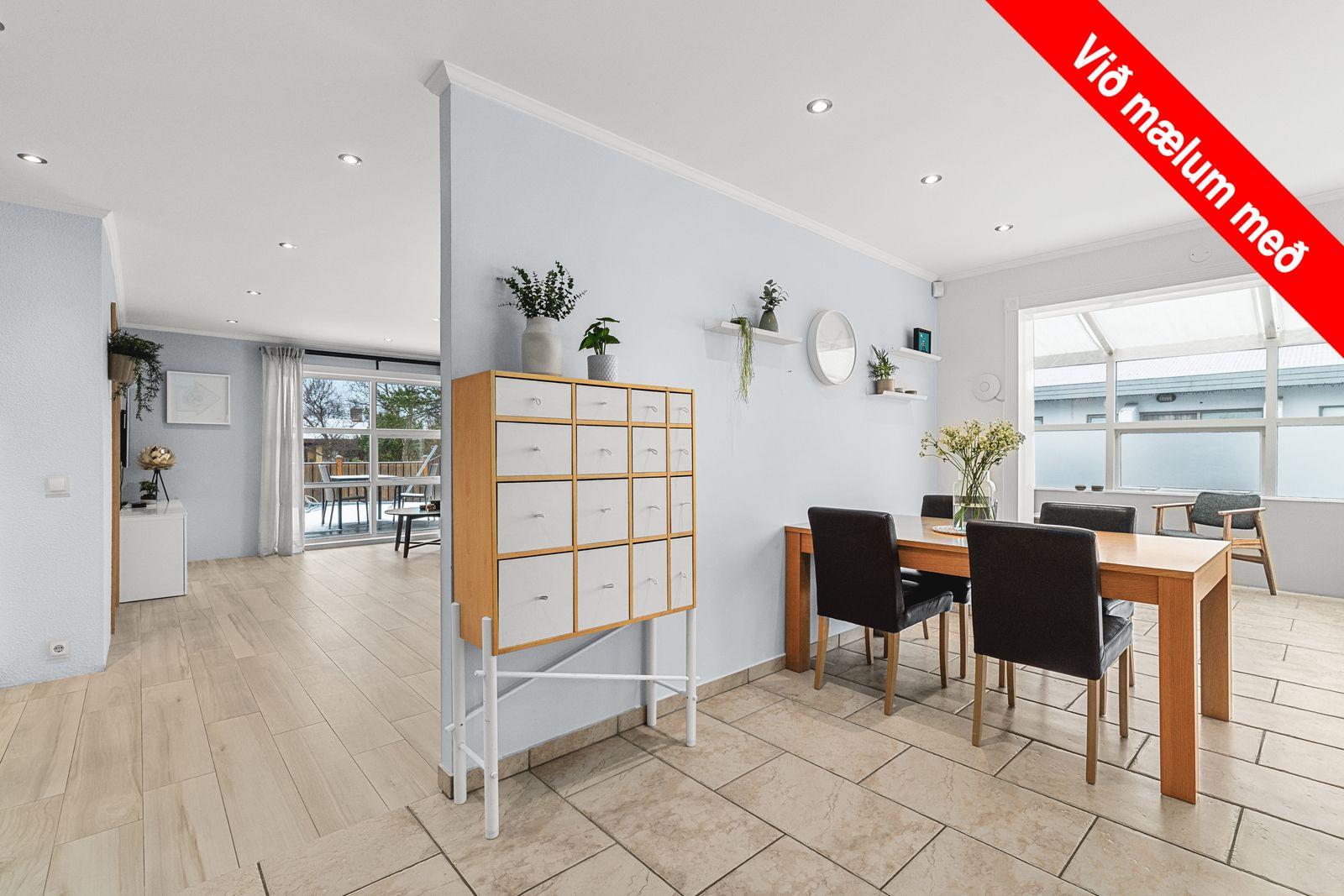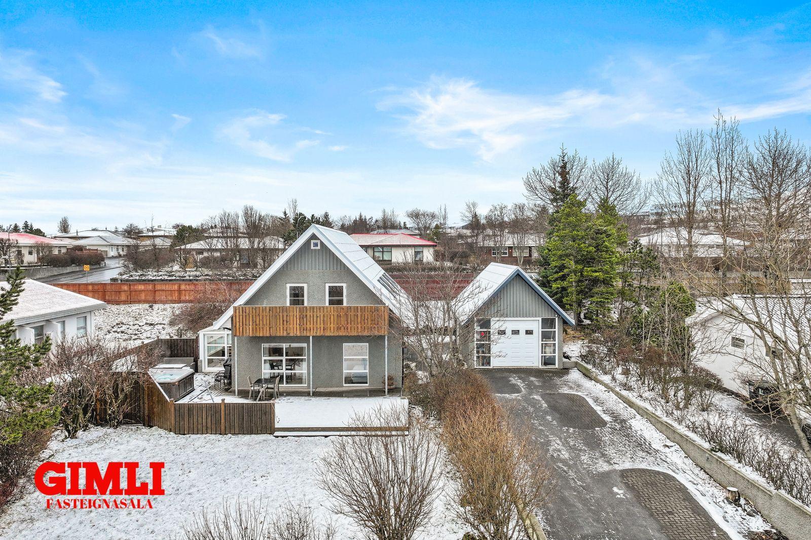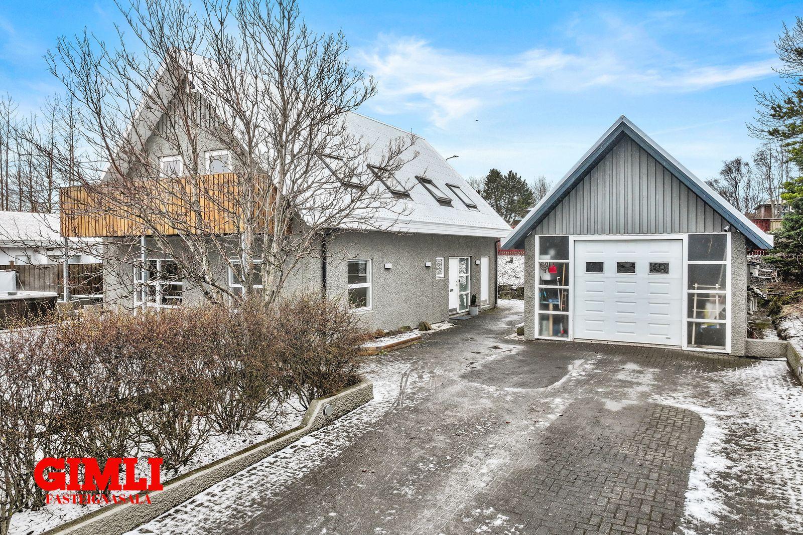 Bílskúr: (40 fm) er staðsettur við hliðina á húsinu með sjálfvirkum hurðaopnara.
