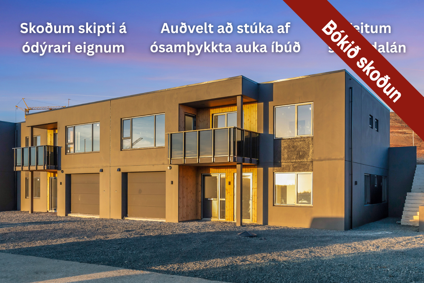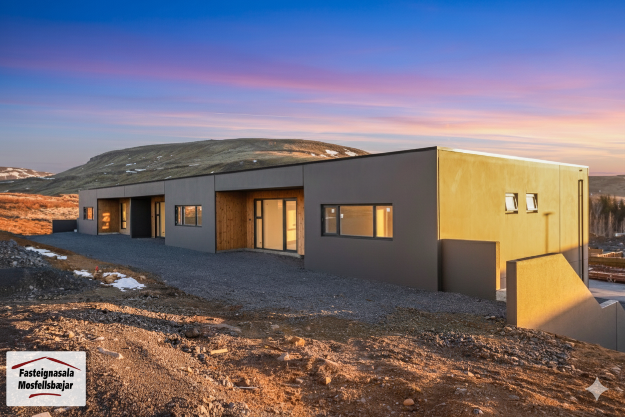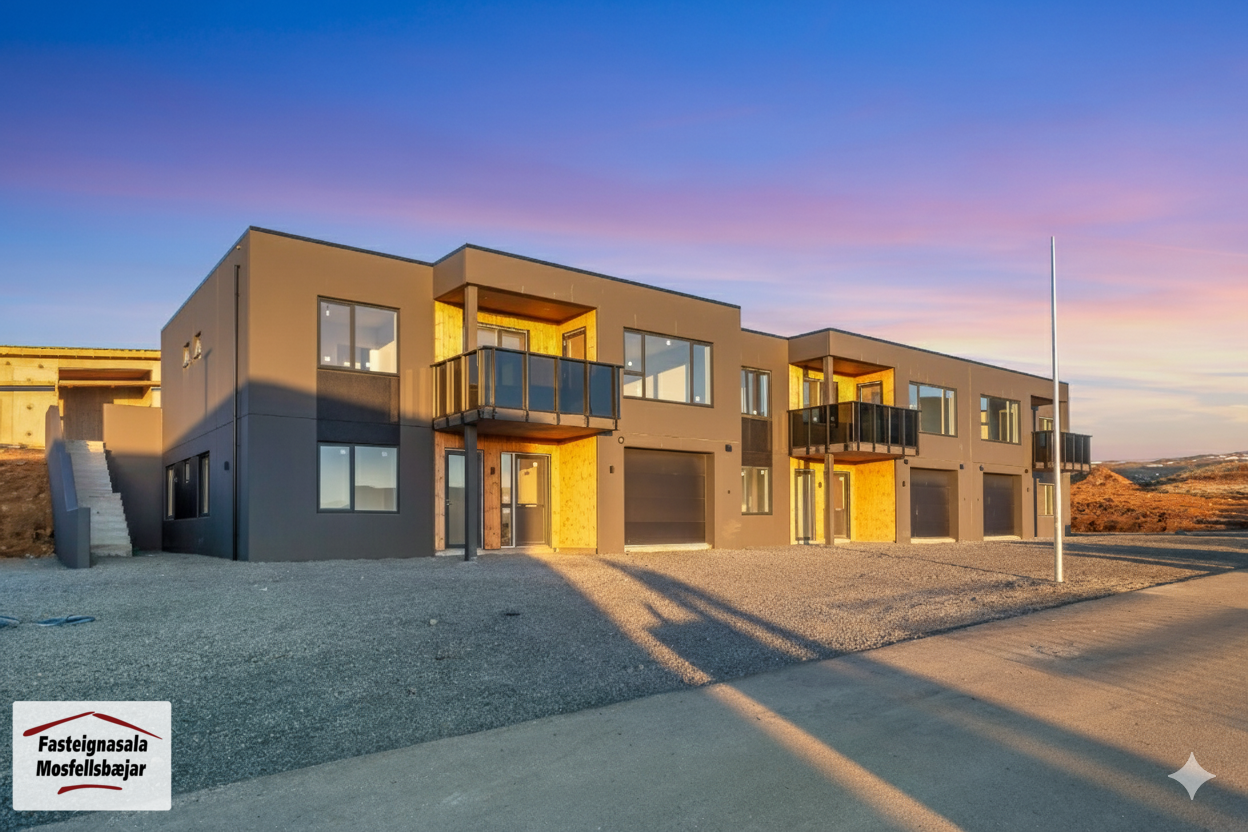 - Eignin er tilbúin til afhendingar við kaupsamningVerð kr. 137.900.000,- Skilalýsing er eftirfarandi:Utanhúss: Raðhús á tveimur hæðum með bílskúr byggt úr forsteyptum einingum frá Steypustöðinni.