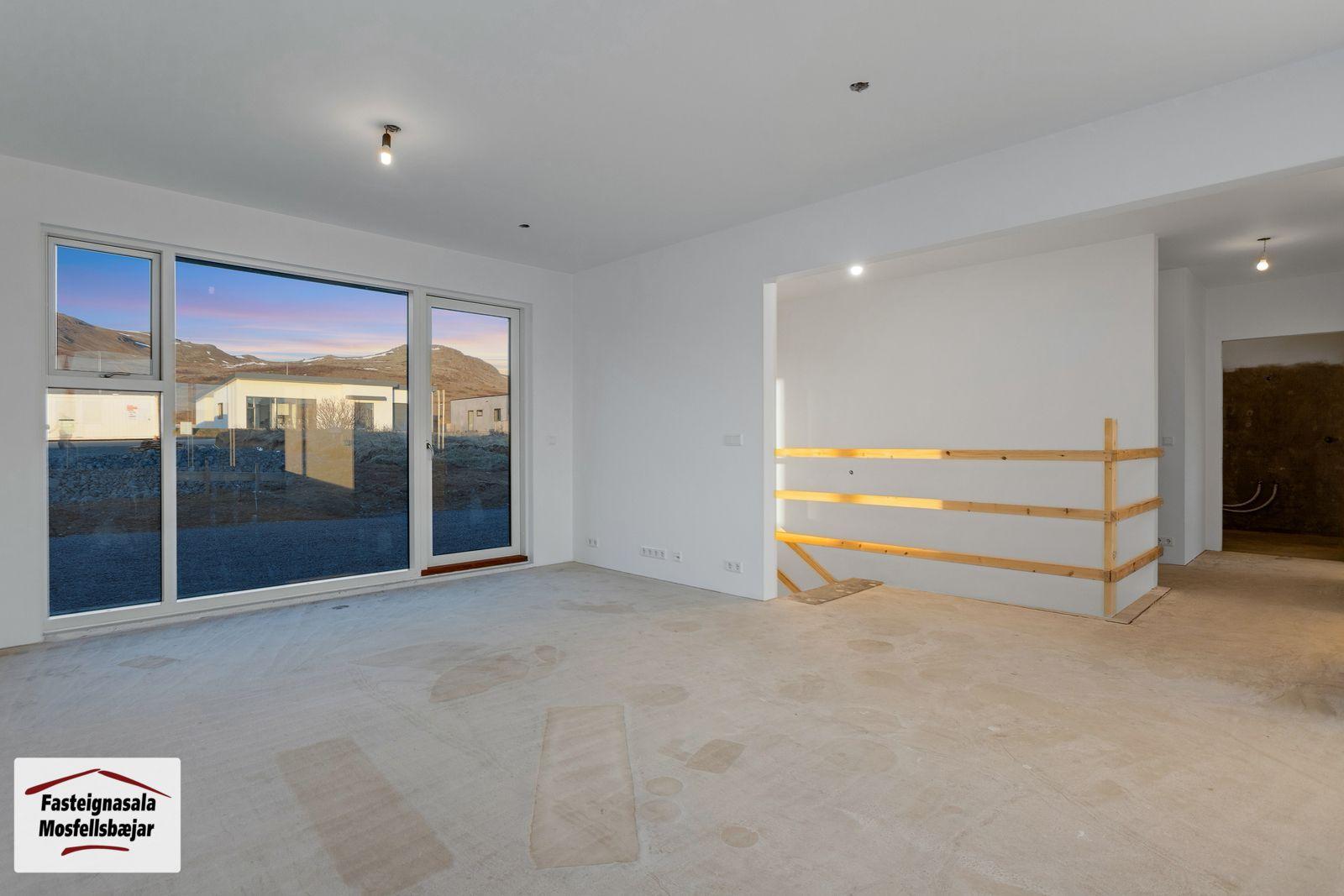 Eignin afhendist tilbúin til innréttinga samkvæmt byggingarstig B3 (byggingarstigi 5 miðavið gamla staðalinn, ÍST 51:2001). Byggingargjöld og gatnagerðargjald eru greidd. Seljandi greiðir heimtaugagjöld fyrir rafmagn og hita, en kaupandi greiðir 0,3% skipulagsgjald sem er innheimt við endanlegt brunabótarmat. Kaupandi skal fá nýja byggingastjóra og meistara að verkinu við afhendingu og sér um úttektir eftir afhendingu eignar. Allar byggingarteikningar afhendast samþykktar frá skipulagsnefnd Mosfellsbæjar til kaupanda. Kaupandi greiðir fyrir allar breytingar á teikningum sem hann kann að óska eftir.