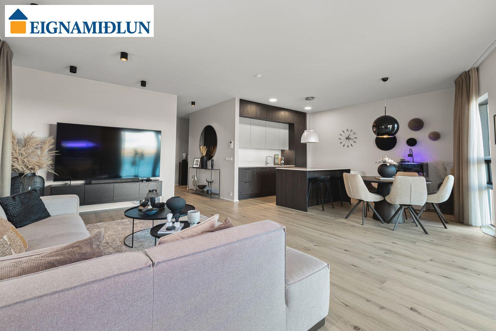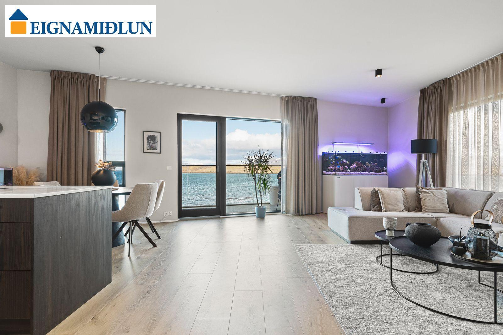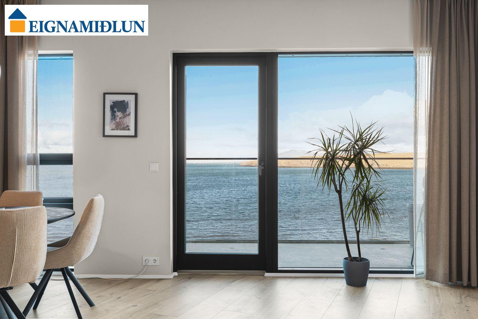 Nánari lýsing eignarinnar: FORSTOFA/GANGUR: Forstofa/gangur , skápar og parket. BAÐHERBERGI: Baðherbergið er flísalagt, innrétting, "walk in" sturta, vegghengt salerni og er tengi fyrir þvottavél og þurkara á baðherbergi. HERBERGI I: Hjónaherbergi er mjög rúmgott, parketlagt og með góðum skápum. HERBERGI II: Aukaherbergið er ágætlega rúmgott,parketlagt og með skápum. ALRÝMI: Alrýmið er mjög rúmgott og parketlagt og skiptist í STOFU, BORÐSTFU og ELDHÚS með vandaðri eldaeyju opið yfir í stofuna. Svalir út frá stofu til norðvesturs með GLÆSILEGU ÚTSÝNI á sundin og fjöllin í norðri. Eldhúsið er með vandaðri innréttingu og eldaeyju , vönduð tæki, innbyggður ísskápur og uppþvottavél fylgja, steinn á borðum og góð lýsing. Stofa og borðstofa eru með parketi og góðum gluggum. Samkvæmt teikningu er möguleiki að stúka af herbergi í alrýminu ef vill. SAMEIGN: Sameiginleg hjóla og vagnageymsla. Sérgeymsla mjög rúmgóð og innangengt úr sameign í bílageymslu þar sem íbúðin á sérmerkt stæði. GLÆSILEG VEL SKIPULÖGÐ ÍBÚÐ Í ÁLKLÆDDU LYFTUHÚSI Á SJÁVARKAMBINUM Í GUFUNESI SEM ER ÖRT STÆKKANDI BORGARHVERFI Í GÓÐUM TENGSLUM VIÐ GÖNGU, HJÓLASTÍGA OG ÚTIVISTARPERLUR.