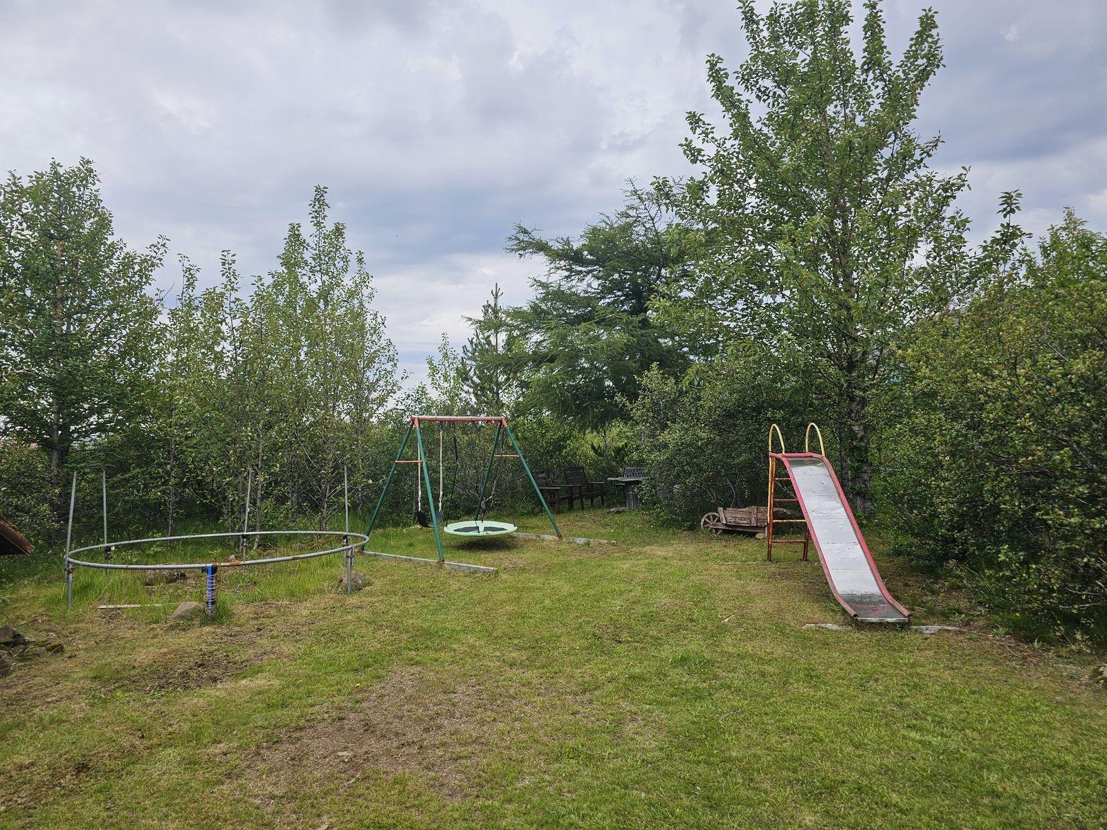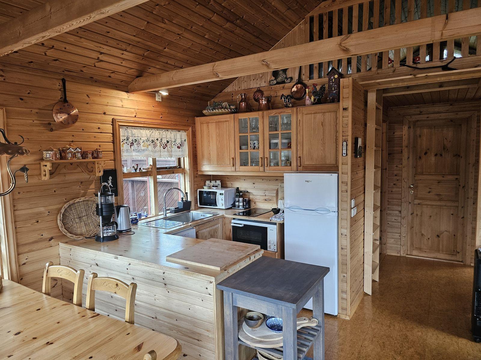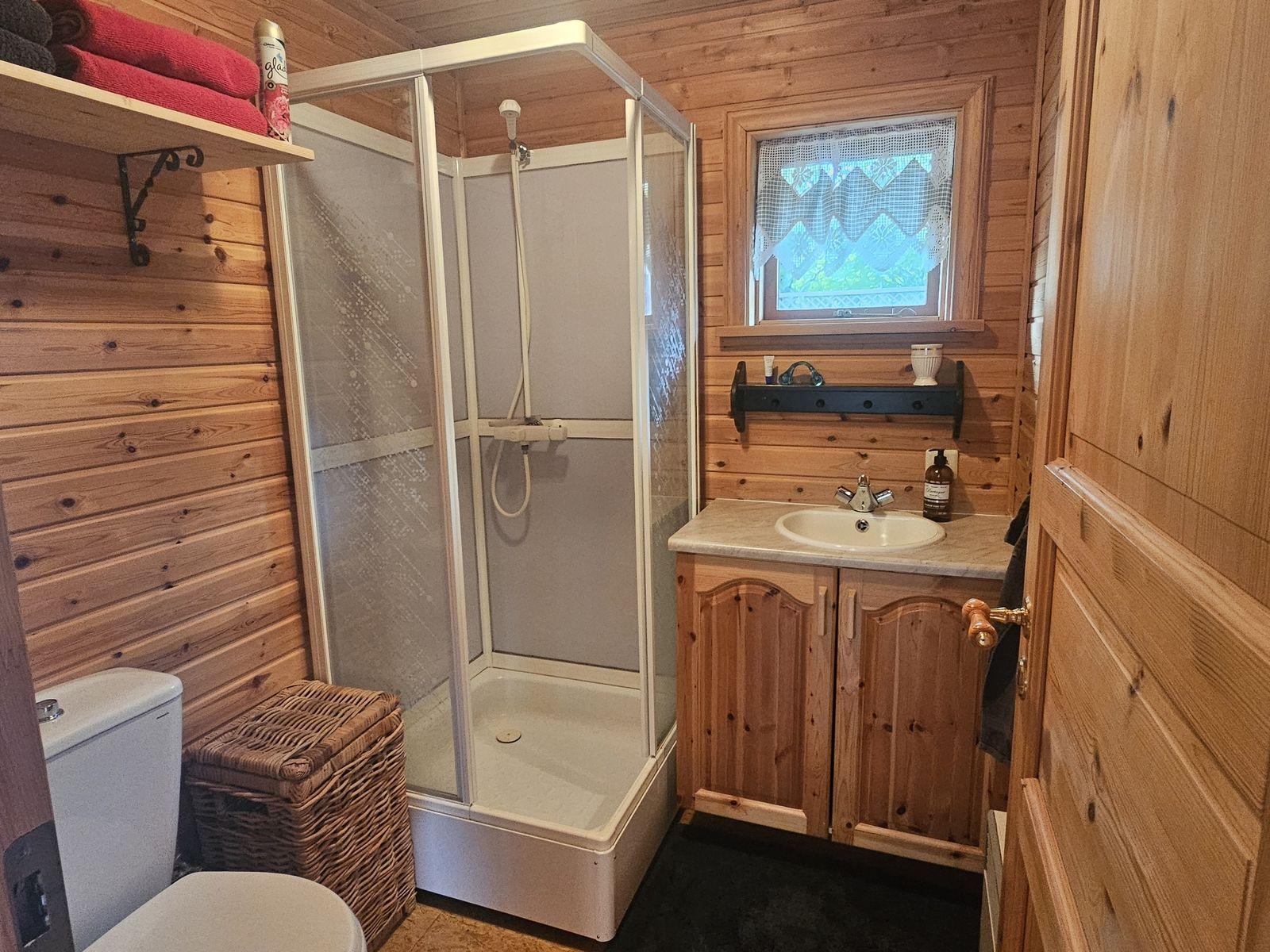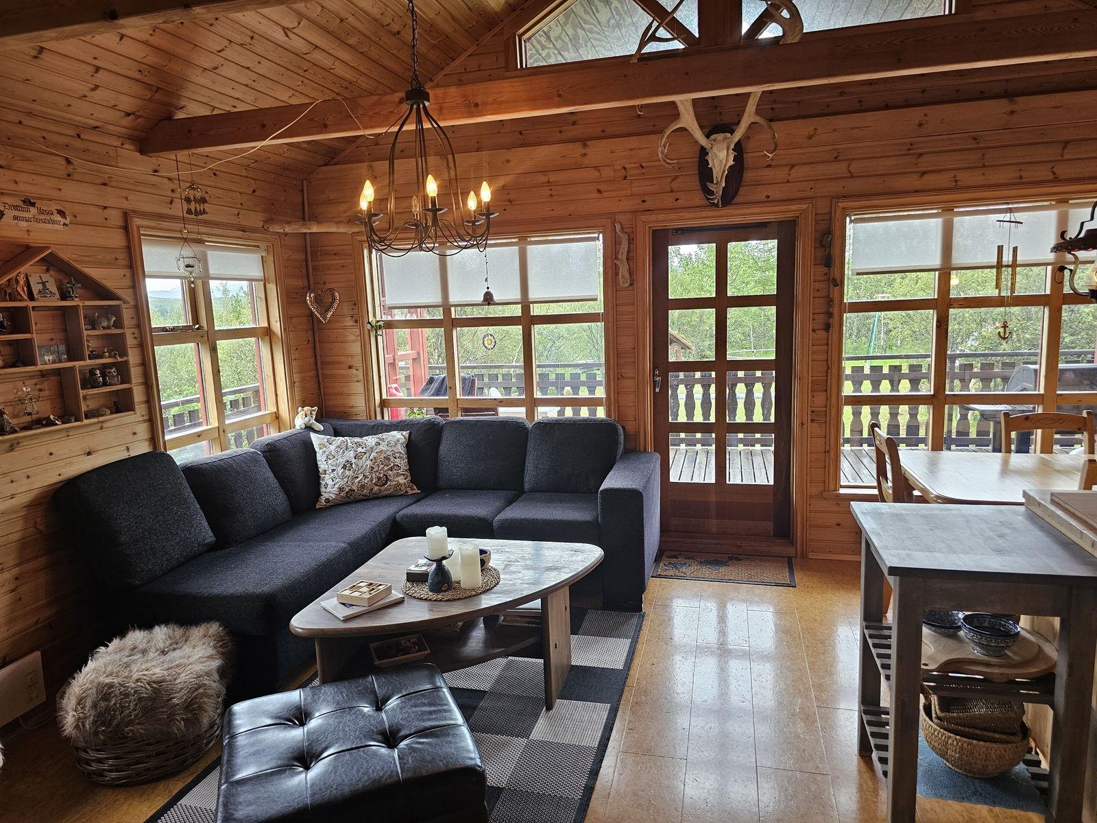Nánari lýsing: Húsið skiptist í anddyri með fataskáp, alrými, sem er setustofa og eldhús, 2 herbergi og baðherbergi með sturtu. Að auki er svefnloft yfir hluta hússins. Húsið er innréttað með panelklæðningu á veggjum og í lofti en pressaðar spónaplötur eru á gólfi. Eldhúsinnrétting er timbur og í góðu ástandi.