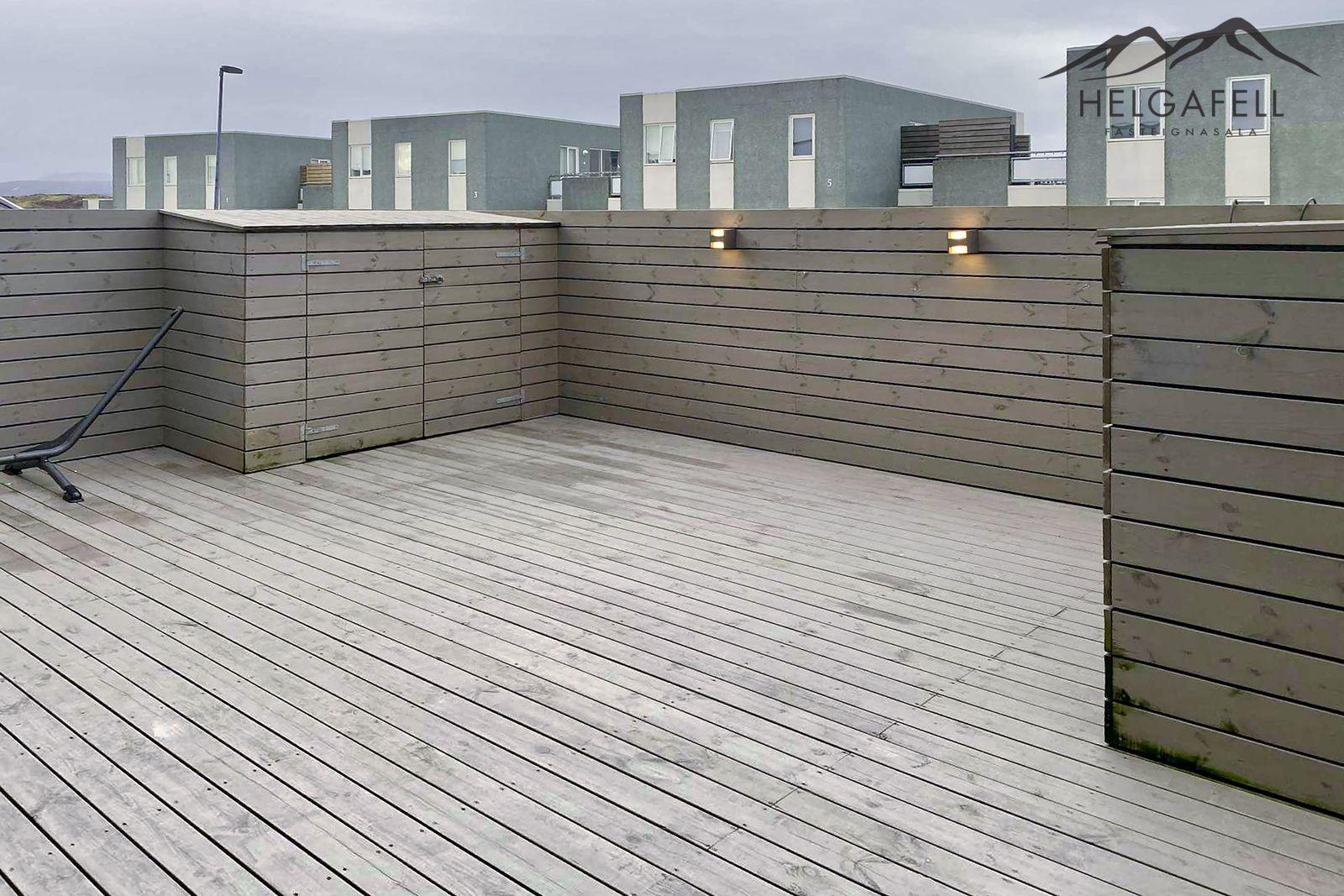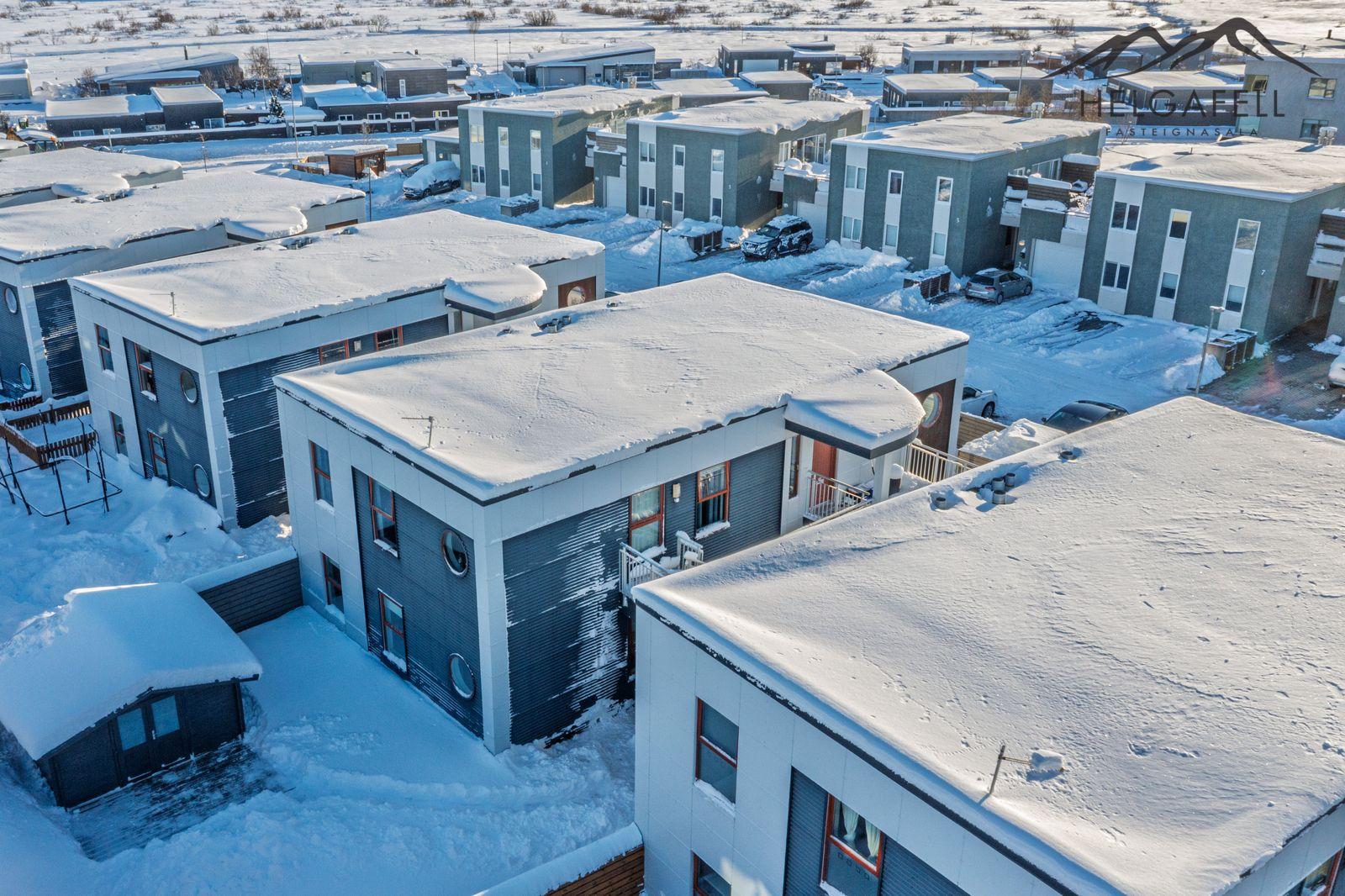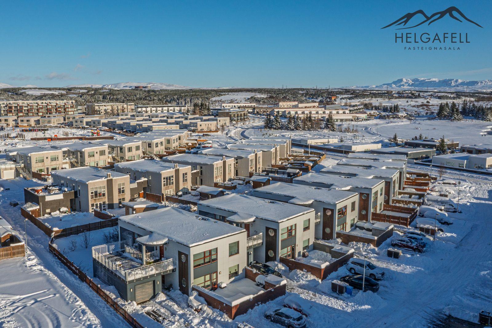 Eignin skiptist í anddyri, baðherbergi, þvottahús, fjögur svefnherbergi, eldhús opið við stofu með útgengi á glæsilegan um 50 fm. sólpall.