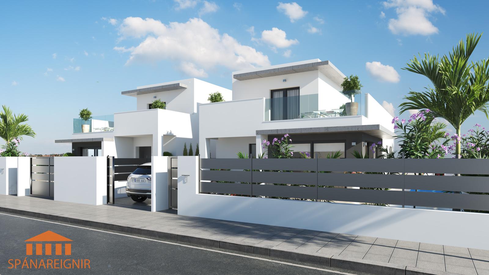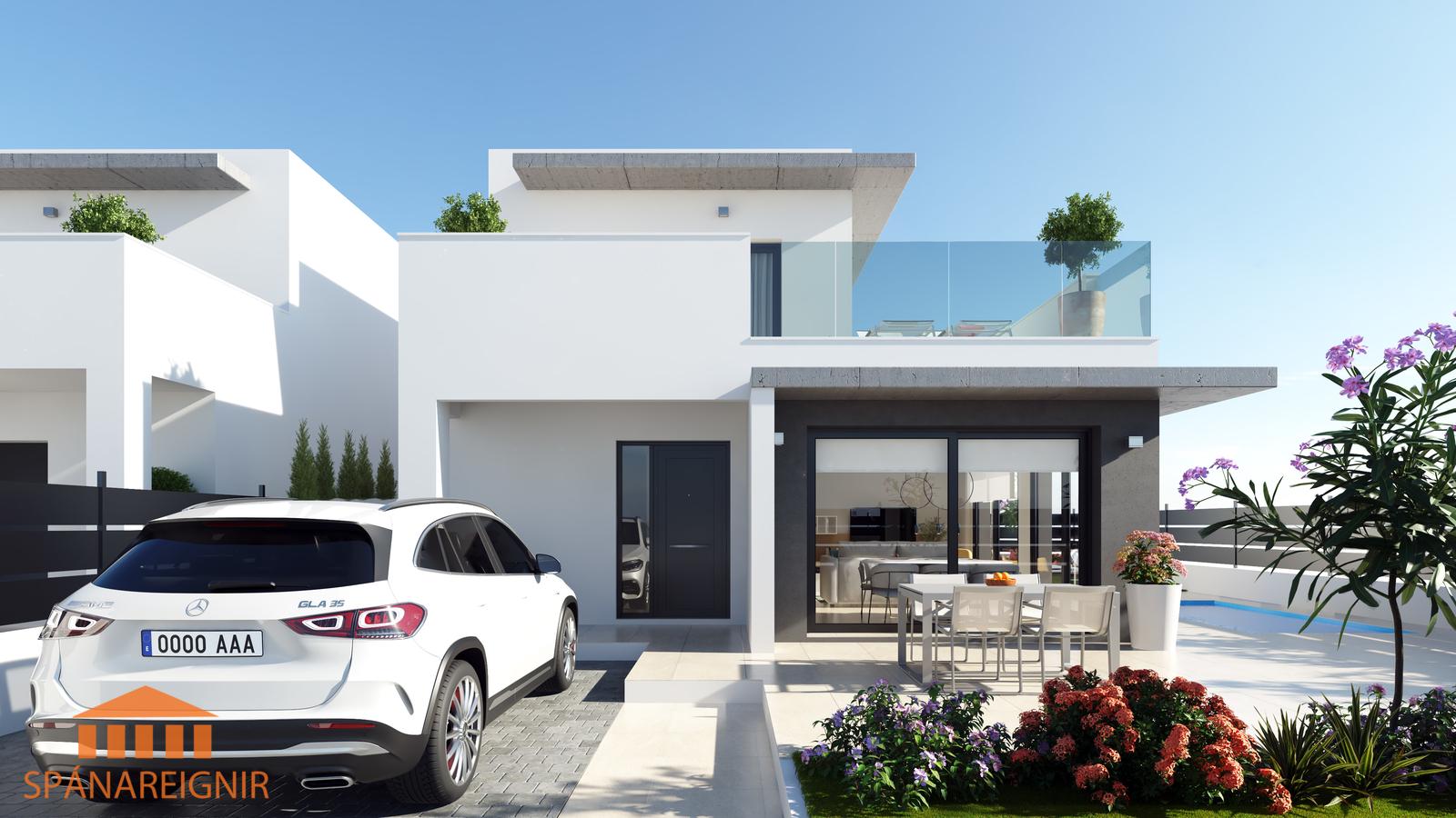 Stórglæsileg einbýlishús á tveimur hæðum. Rúmgóð verönd, sér garður með möguleika á einkasundlaug. Þrjú svefnherbergi og tvö baðherbergi. Stofa og borðstofa vel tengt eldhúsi. Þvottahús/geymsla inn af eldhúsi. Sérgarður með einkasundlaug og góðri grill aðstöðu. Sér bílastæði inni á lokaðri lóð.