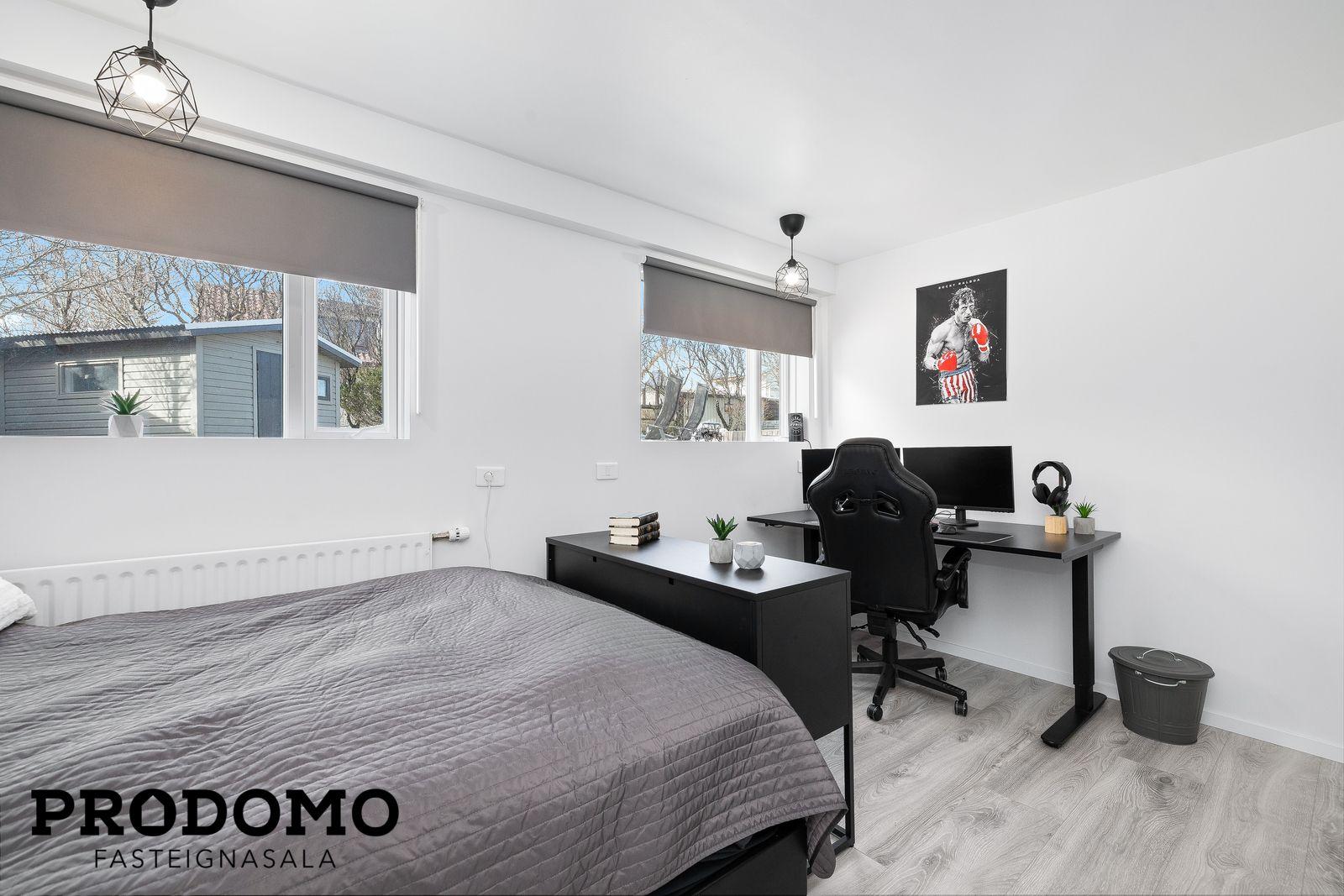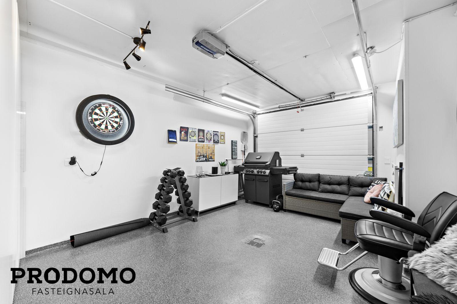 Bílskúr er með epoxy á gólfi, þar eru góðir skápar og búið að útbúa aukaherbergi í enda bílskúrs.