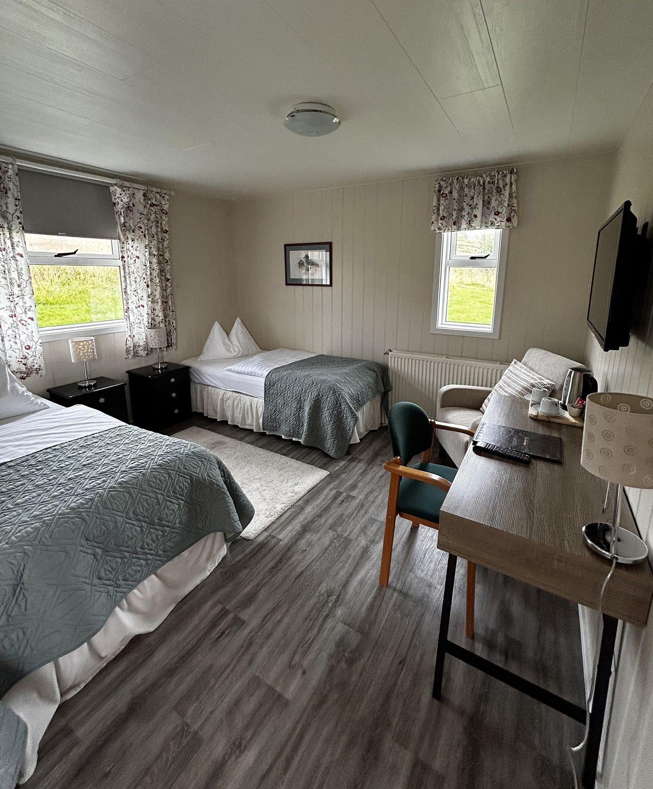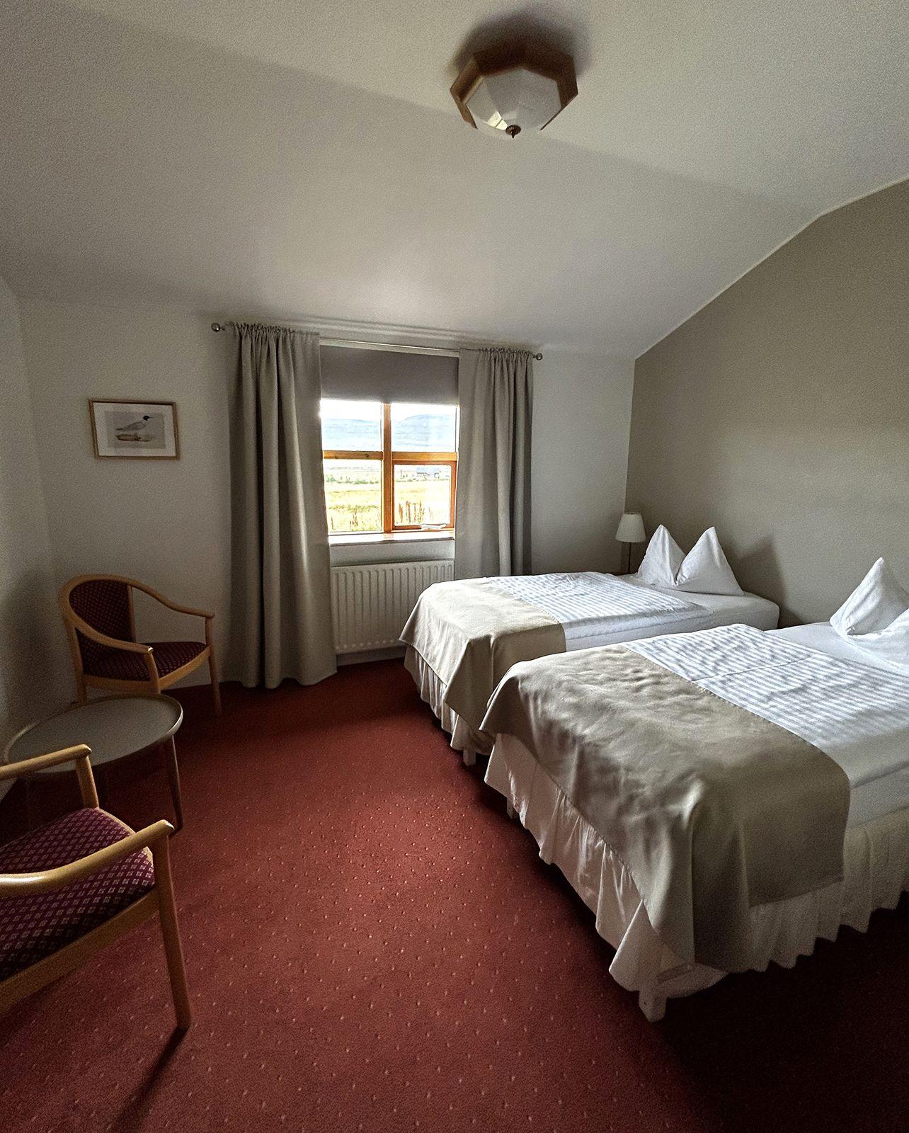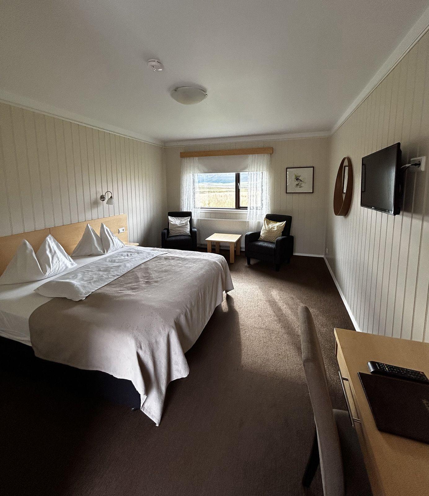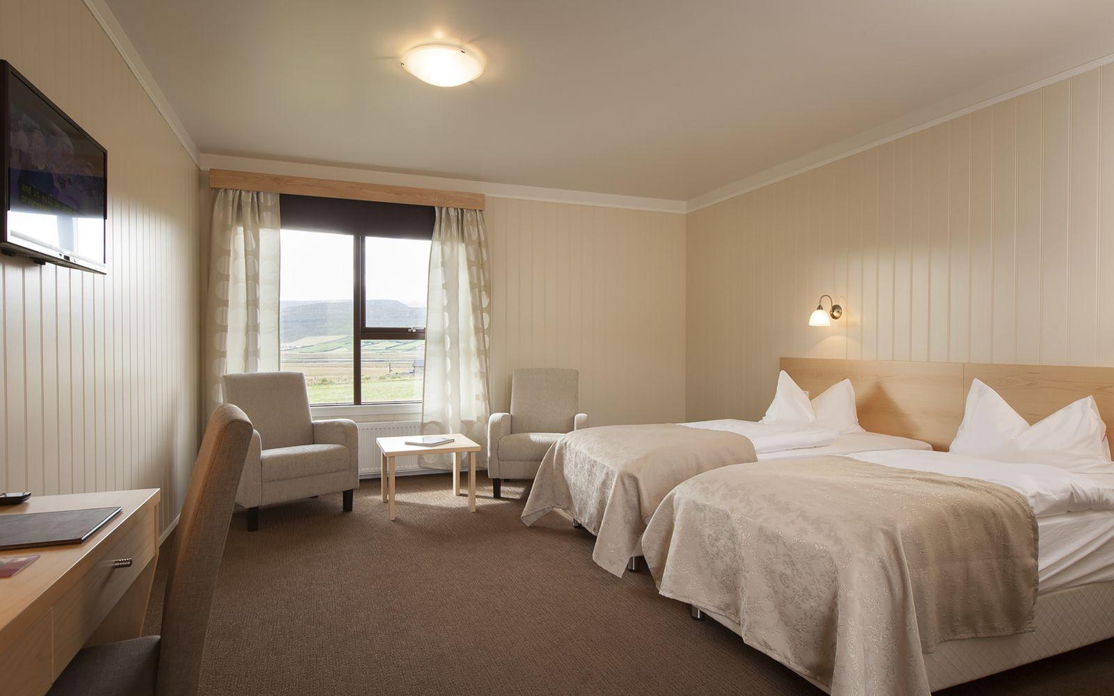 Á hótelinu eru 42 herbergi, 2ja, 3ja og 4ra manna. Þar af eru 37 herbergi með sér baðherbergi og 5 með sameiginlegum baðherbergjum. Hitaveita og tveir heitir pottar eru við hótelið fyrir gesti þess. Auk þess er bústaður með eldunaraðstöðu og baðherbergi, 2 starfsmannahús með 9 svefnherbergjum samtals, baðherbergjum og eldunaraðstöðu. Hótelið hefur rekstrarleyfi fyrir gistingu fyrir 96 manns í rekstrarflokki IV. Á hótelinu er veitingasalur fyrir um 60 manns ásamt tilheyrandi eldhúsi og geymsluaðstöðu, bar og setustofum.