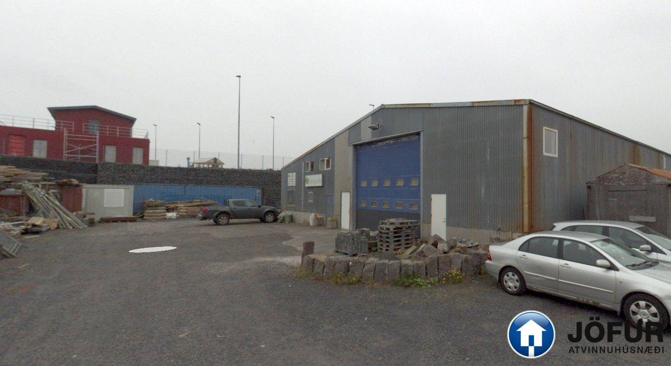 Snyrtileg kaffistofa með lítilli innréttingu, ísskáp o.fl. og wc á millilofti. Salerni er innan rýmisins. Góð lofthæð sem er hæst um 7 m. og stór innkeyrsludyr er um 4,5 m á hæð. Í dag er bílalyfta innan rýmisins sem mögulega getur fylgt með rýminu. Lóðin er afgirt svæði, með aðgangi um innkeyrsluslá. Ekki VSK húsnæði.