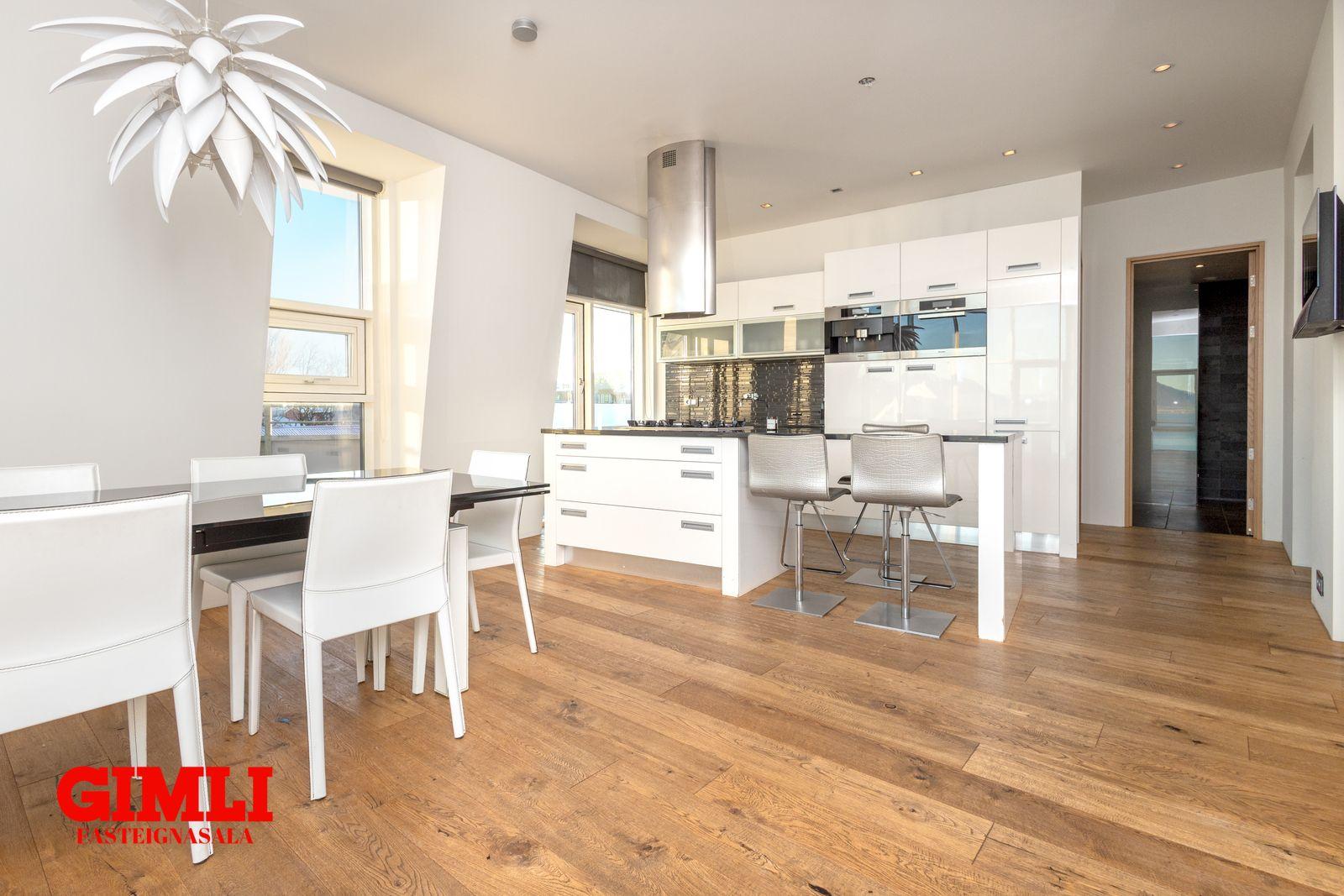 Mjög mikið var lagt upp úr vönduðu efnisvali við smíði íbúðarinnar þar sem ekkert var til sparað í búnaði, innréttingum gólfefnum og fl. en íbúðin er hönnuð af Ástu Sigríði Ólafsdóttur arkitekt.