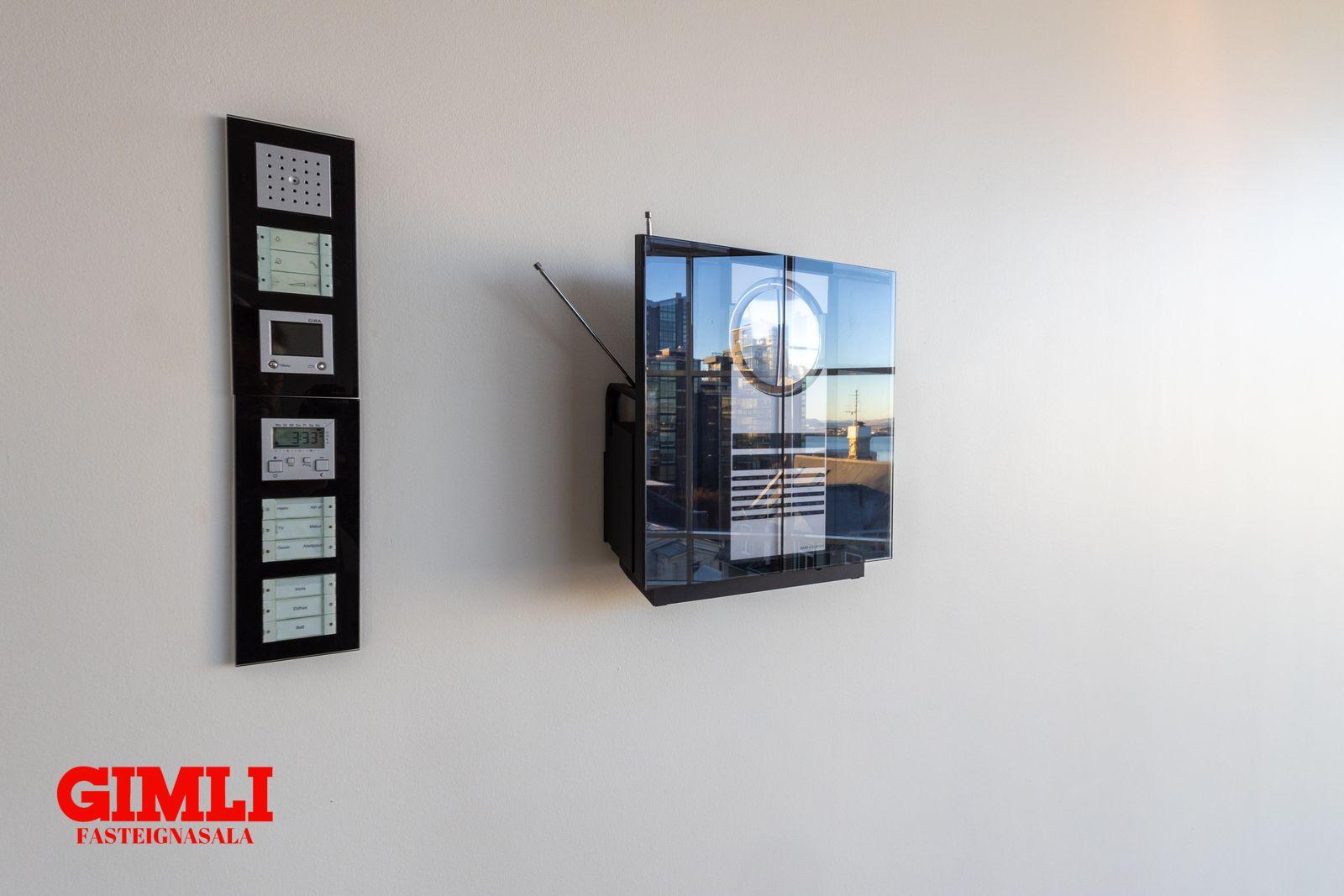 Smellið hér til að sjá myndband af eigninniNÁNARI LÝSING:Úr lyftunni sem gengur upp í íbúðina er komið út í rúmgóða forstofu með flísum á gólfi og eikarfataskápum.