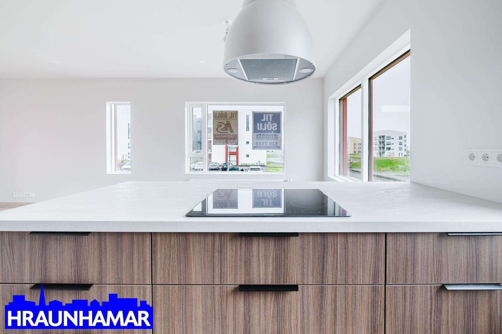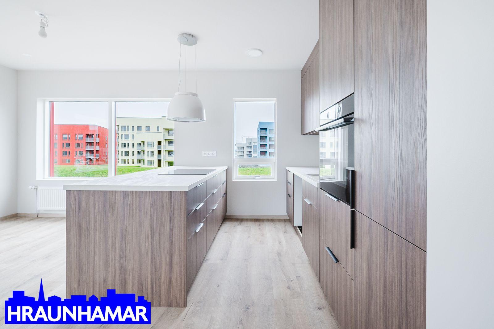 Hraunhamar fasteignasala kynnir: 4ra herbergja íbúð á þriðju hæð í nýju fjölbýli á frábærum stað í Hamranesinu í Hafnarfirði. Eignin afhendist fullbúin án gólfefna nema flísar á votrýmum og með innréttingum frá Parka.