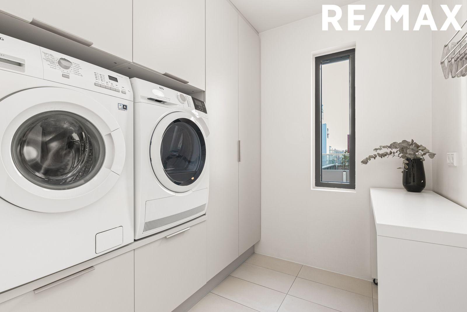 Gestasalerni / þvottahús er flísalagt með fallegri innréttingu, salerni og vaski. Fyrir innan baðherberbergið er rúmgott þvottahús með innréttingu og tengi fyrir þvottavél og þurrkara í vinnuhæð. Flísar á gólfum og gólfhiti.
