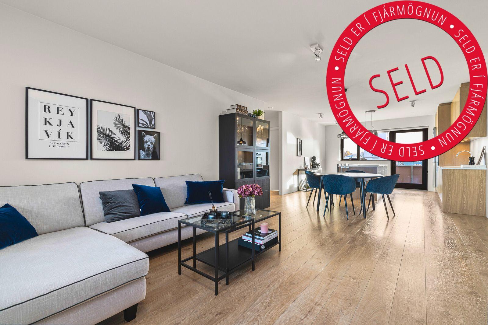 Stofa og borðstofa er opið rými og þaðan er útgengt á yfirbyggðar rúmgóðar 8,7 m2 svalir með glæsilegu útsýni til sjávar.