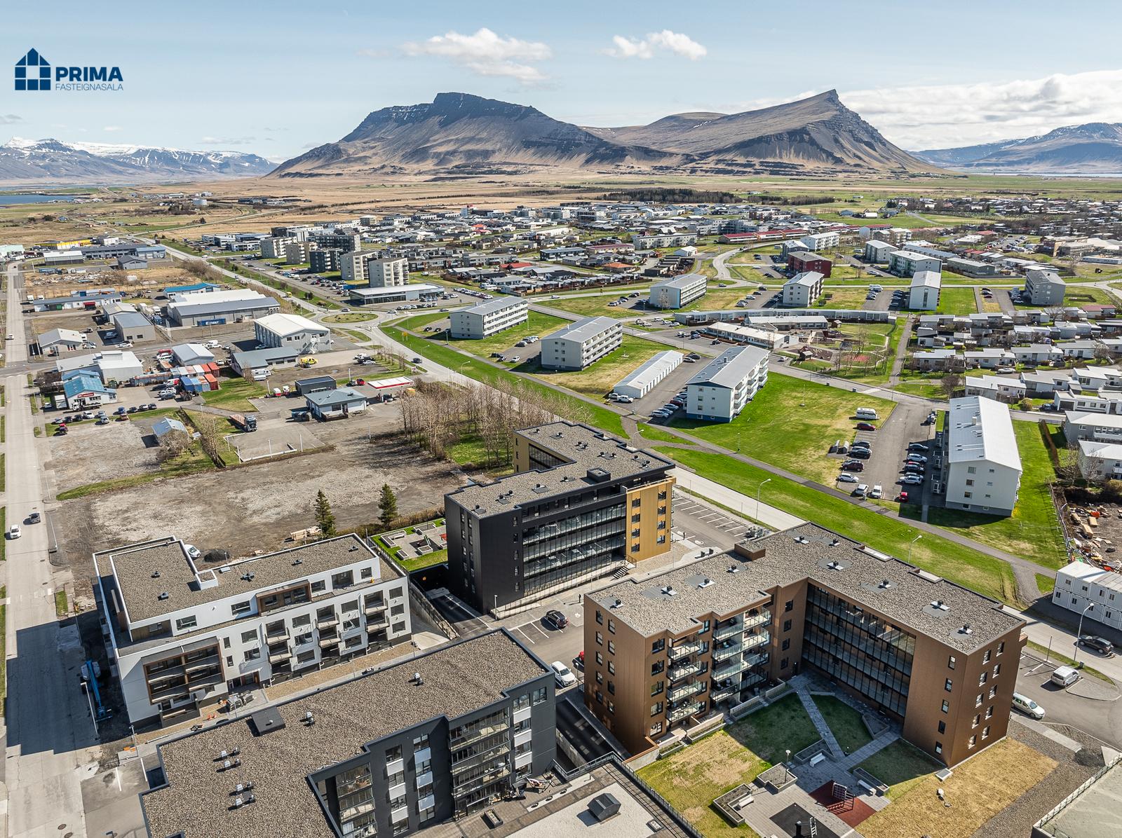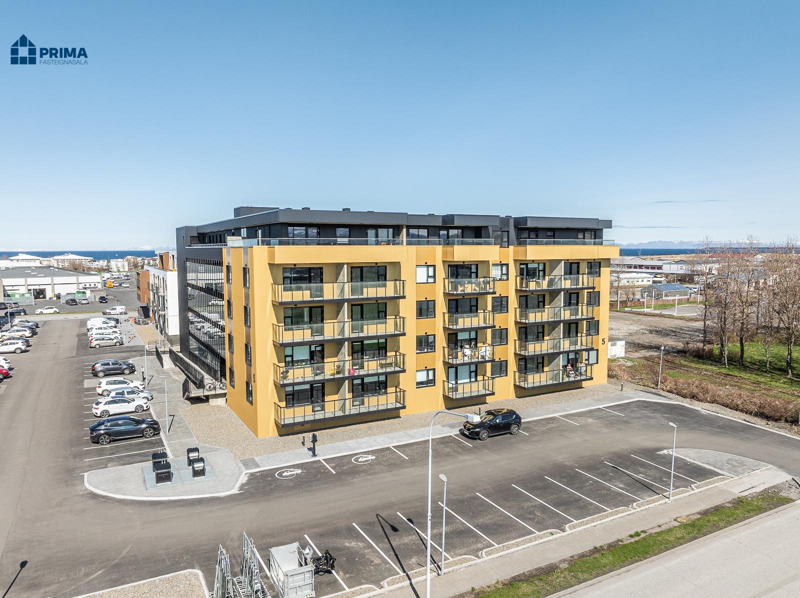 Þjóðbraut 5 - 300 Akranesi: Fjölbýlishúsið að Þjóðbraut 5 er staðsett í glæsilegu íbúðarhverfi í uppbyggingu á Akranesi. Byggingin er 5 hæðir með 38 íbúðum af fjölbreyttum stærðum og gerðum. Eitt stiga- og lyftuhús er í byggingunni. Svalagangar tengjast saman í vinkil á 2.-5. hæð og er aðgengi að stigahúsi frá tveim áttum. Þá hafa íbúðir á jarðhæðum sem snúa til suðurs sérinngang má segja. Á 1. – 5. hæð eru íbúðir af fjölbreyttum stærðum og gerðum, tveggja, þriggja og fjögurra herbergja. Í kjallara hússins er sameiginleg bílageymsla með bílastæðum fyrir 26 bifreiðir. Að auki eru í kjallara sérgeymslur fyrir hluta íbúða ásamt vagna- og hjólageymslu og sameiginlegum tæknirýmum. Aðalinngangur er staðsettur á 1. hæð. Eingöngu er notast við fyrsta flokks efni bæði innan- sem og utandyra. Léttir innveggir íbúða eru með sérvöldu gipsefni fyrir hvert rými og veggir sérgeymslna eru hlaðnir.
