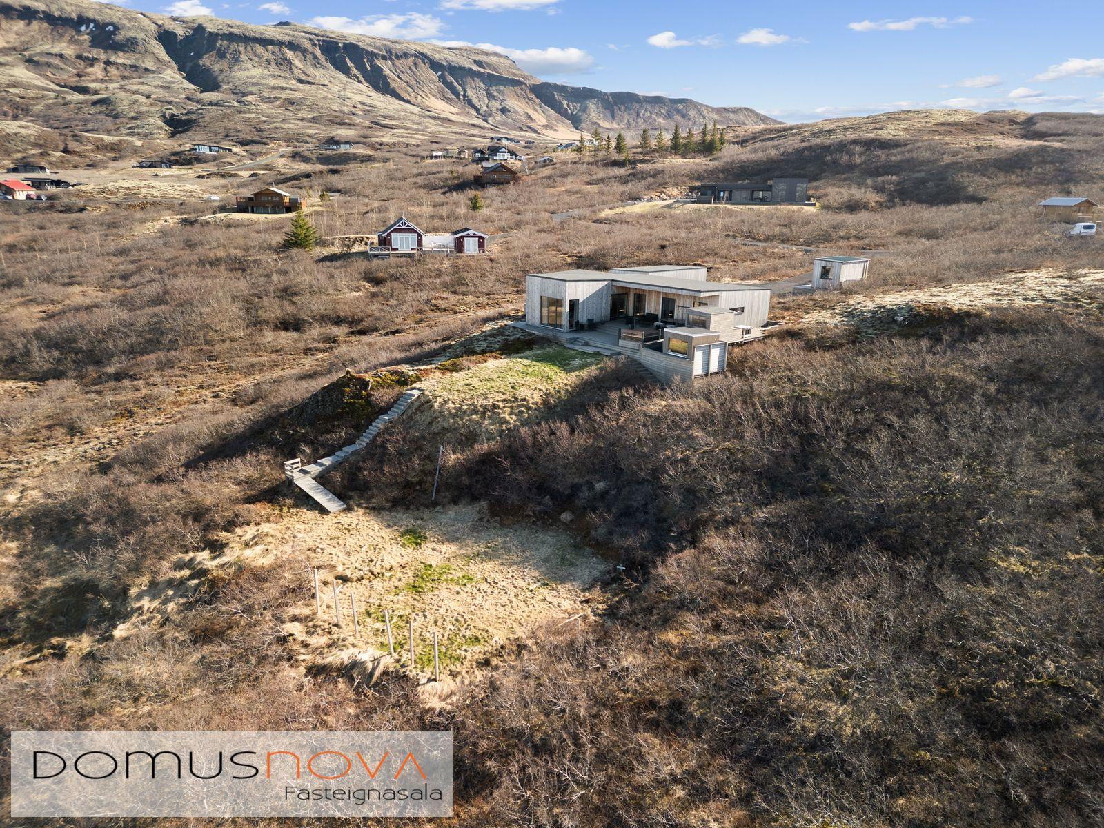 Eignin stendur á 9000 fm eignarlóð á lokuðu frístundahúsasvæði (símahlið) með fallegu útsýni til suðurs, vesturs og fjalla í norðri.