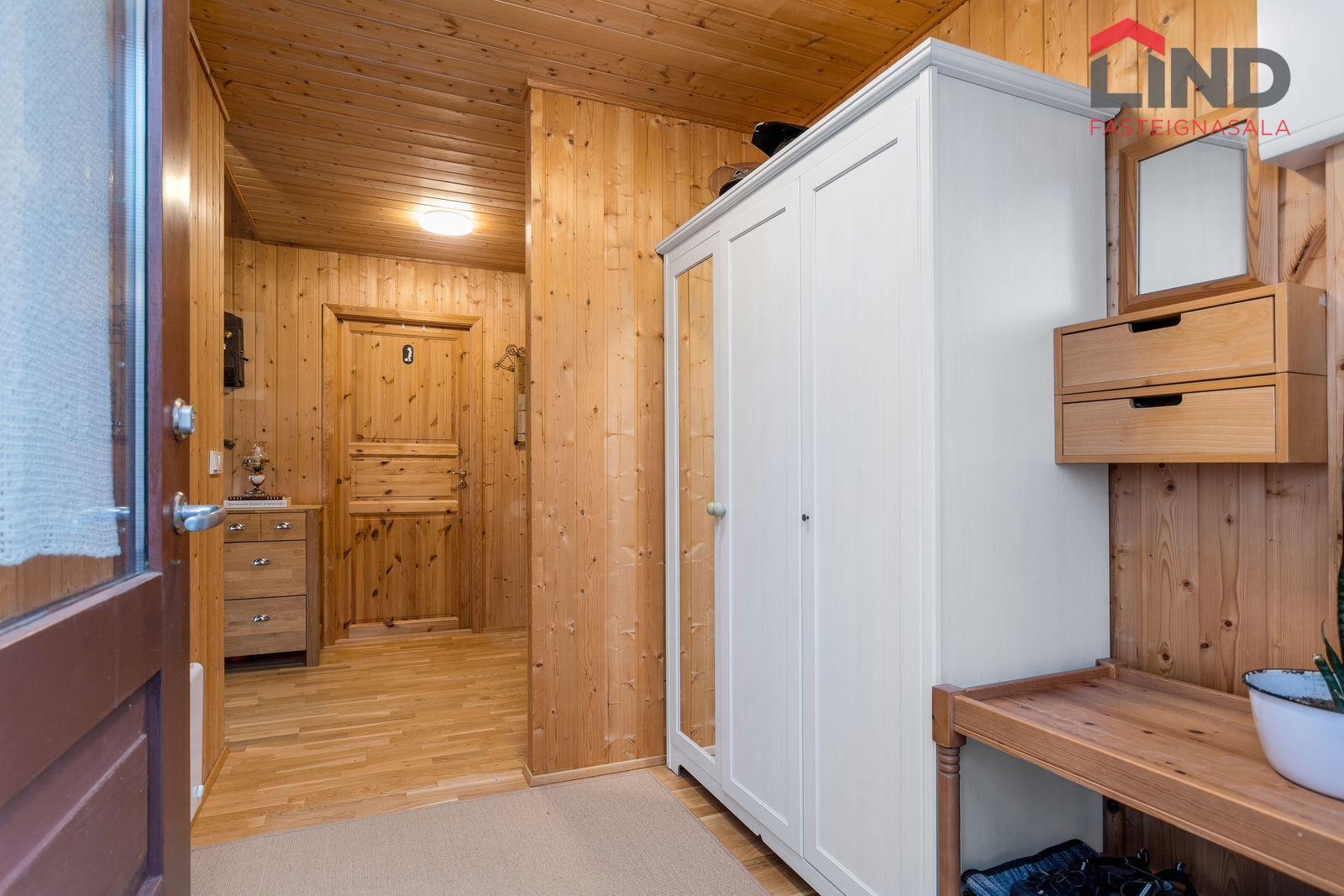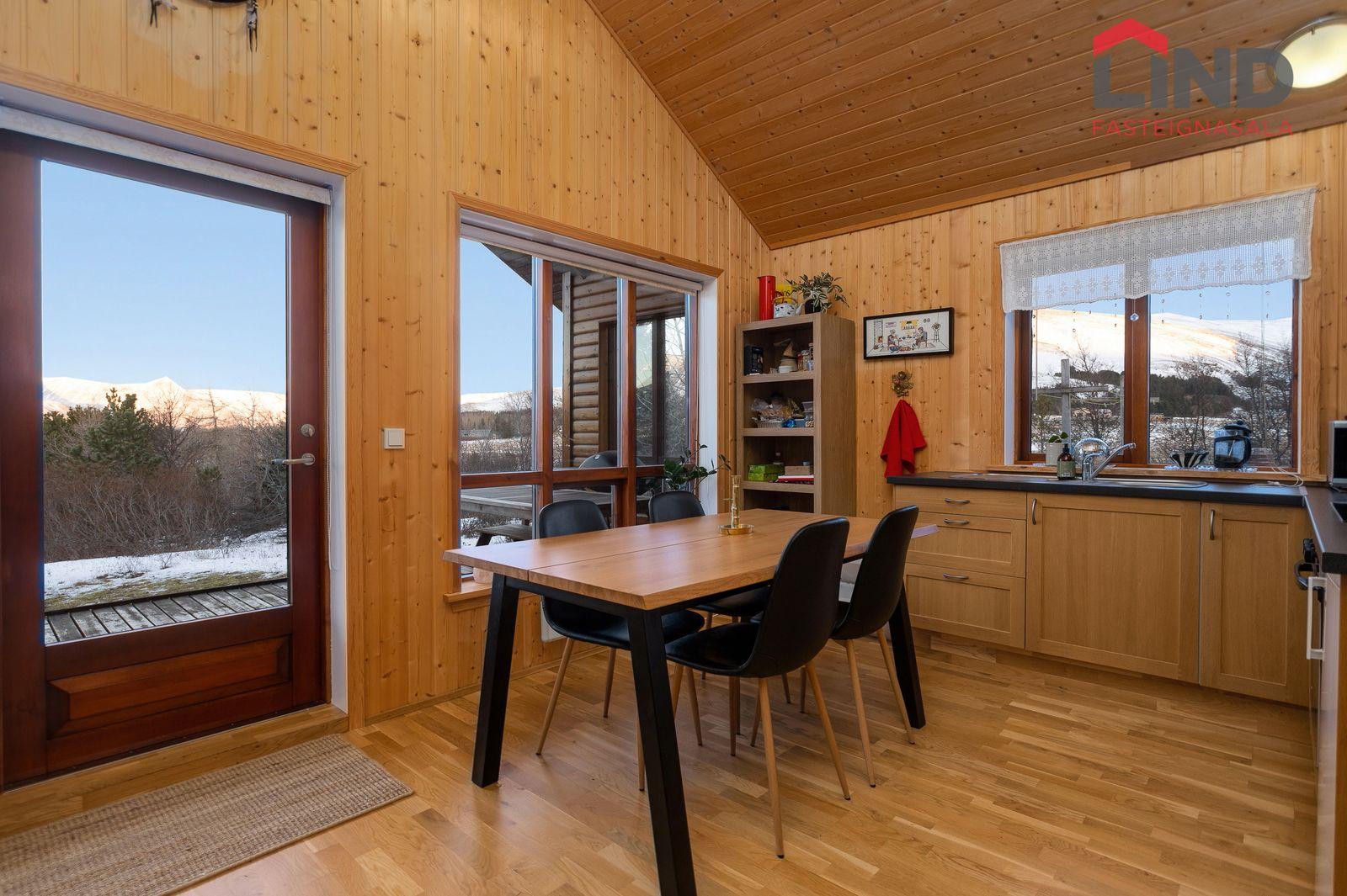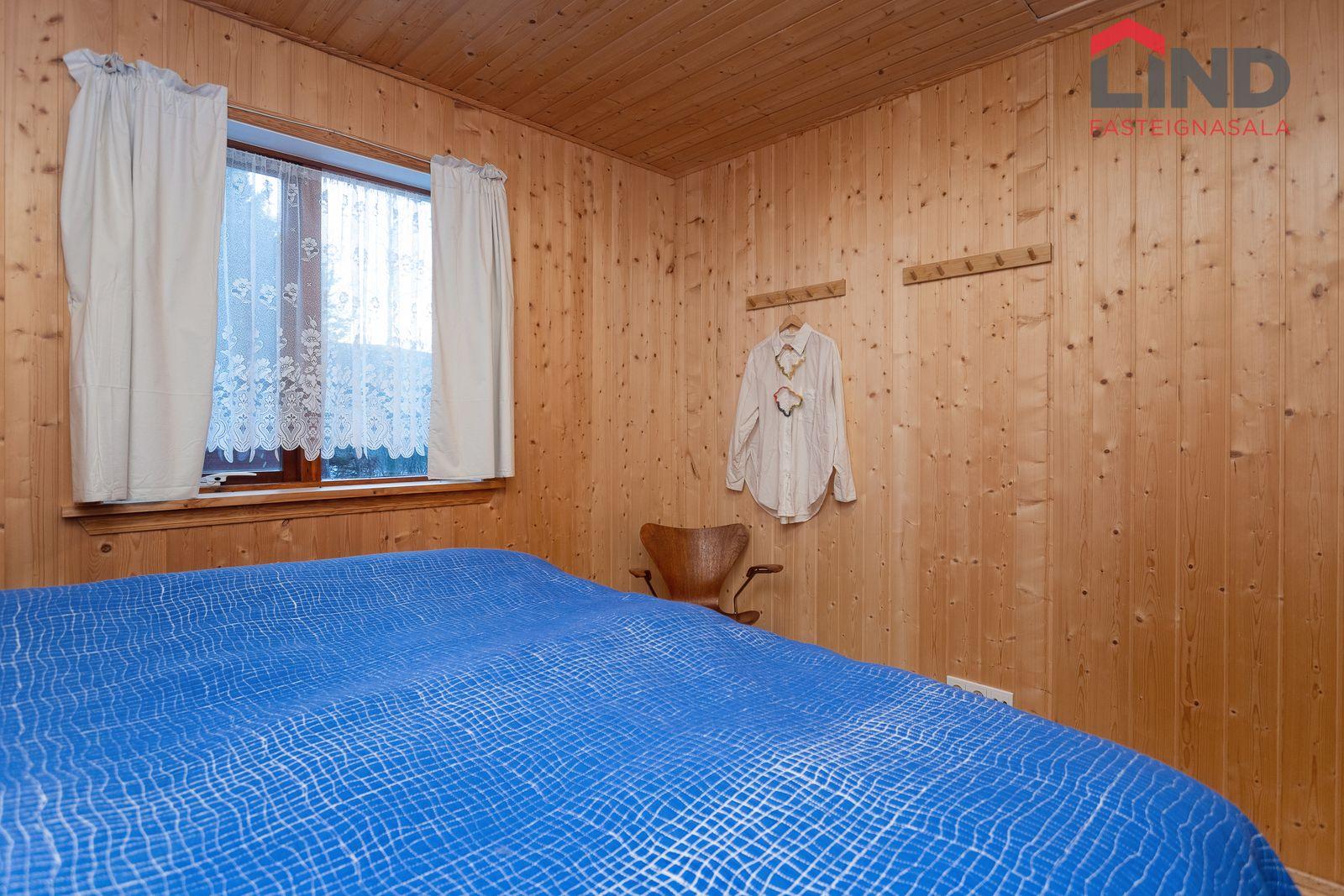 Lýsing eignar: Bústaðurinn er parketlagður utan baðherbergis. Gengið er inn í forstofu með forstofuskápum. Tvö ágætlega rúmgóð svefnherbergi eru til staðar. Baðherbergið er með flísum á gólfi, sturtuklefa og útgengi út á verönd. Stofan og eldhúsið eru í sama rými með góðri lofthæð. Geymsluloft er yfir hluta eignarinnar.