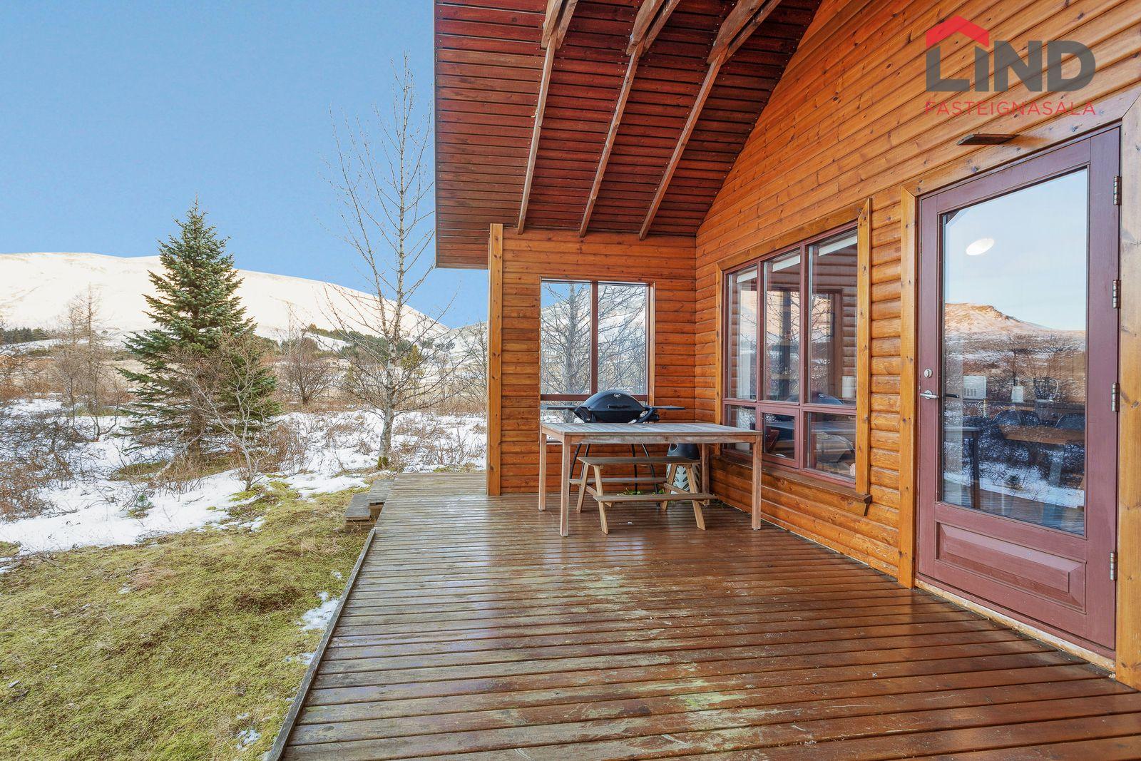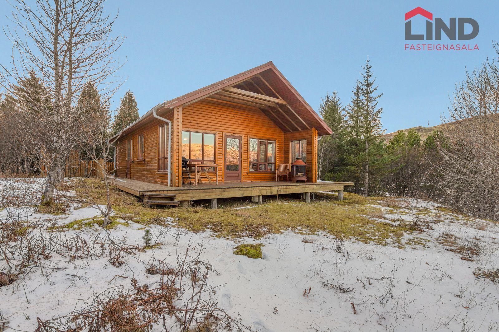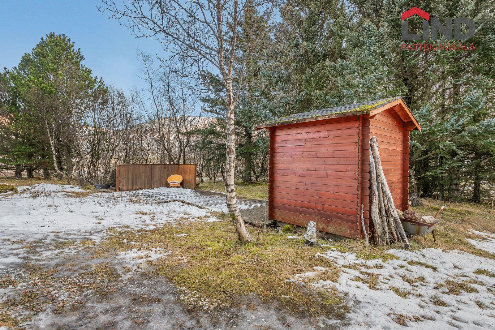 LIND fasteignasala og Arinbjörn Marinósson, löggiltur fasteignasali, kynna í einkasölu virkilega notalegt sumarhús í 10 mínútna akstursfjarlægð frá Mosfellsbæ á stóru og grónu eignalandi í Helgadalslandi í Mosfellsbæ. Húsið stendur á hæð á skógivöxnu eignalandi sem er 13.710 fm að stærð með virkilega fallegu útsýni til fjalla. Veröndin nær allann hringinn í kringum bústaðinn og er með rafmagnspotti. Innbú getur fylgt með í kaupunum óskar kaupandi þess. Tvær kaldar geymslur eru á jörðinni.