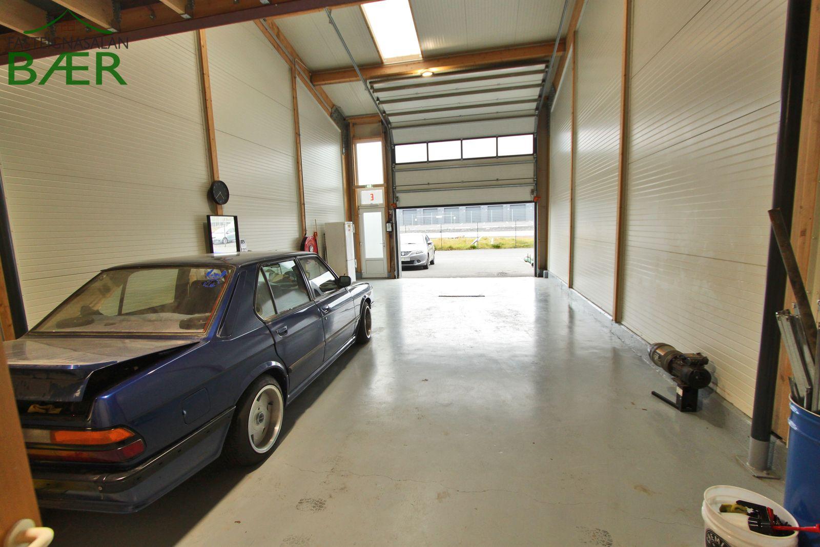 Nánari lýsing: Lager/vinnslubil er ca 80fm með góðri iðnaðarhurð og gönguhurð, málað gólf og rafmagns opnun á hurð. Húsið er skráð 108 fm en búið er að gera milliloft 50 fm þannig að húsnæðið er 158 fm í dag.