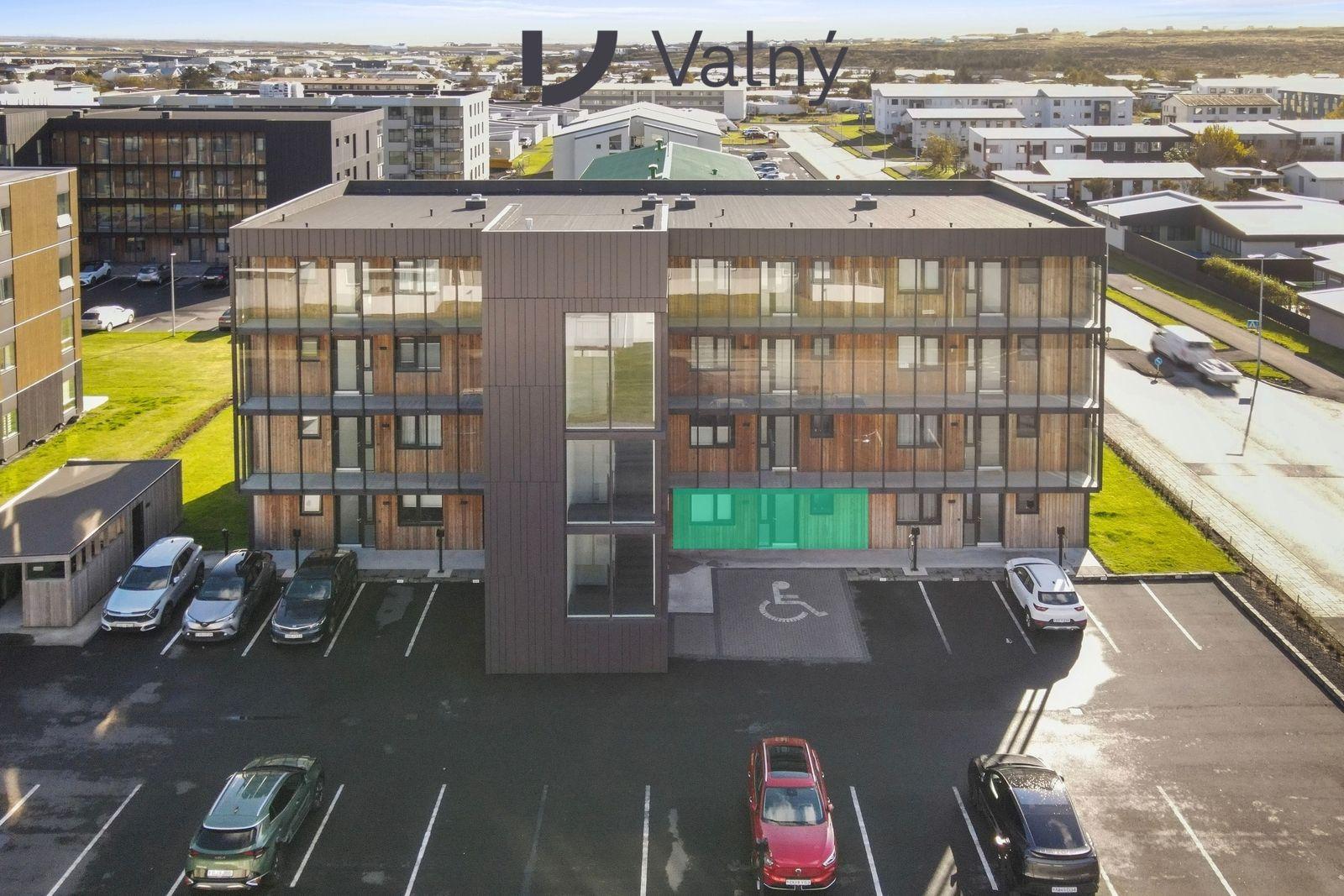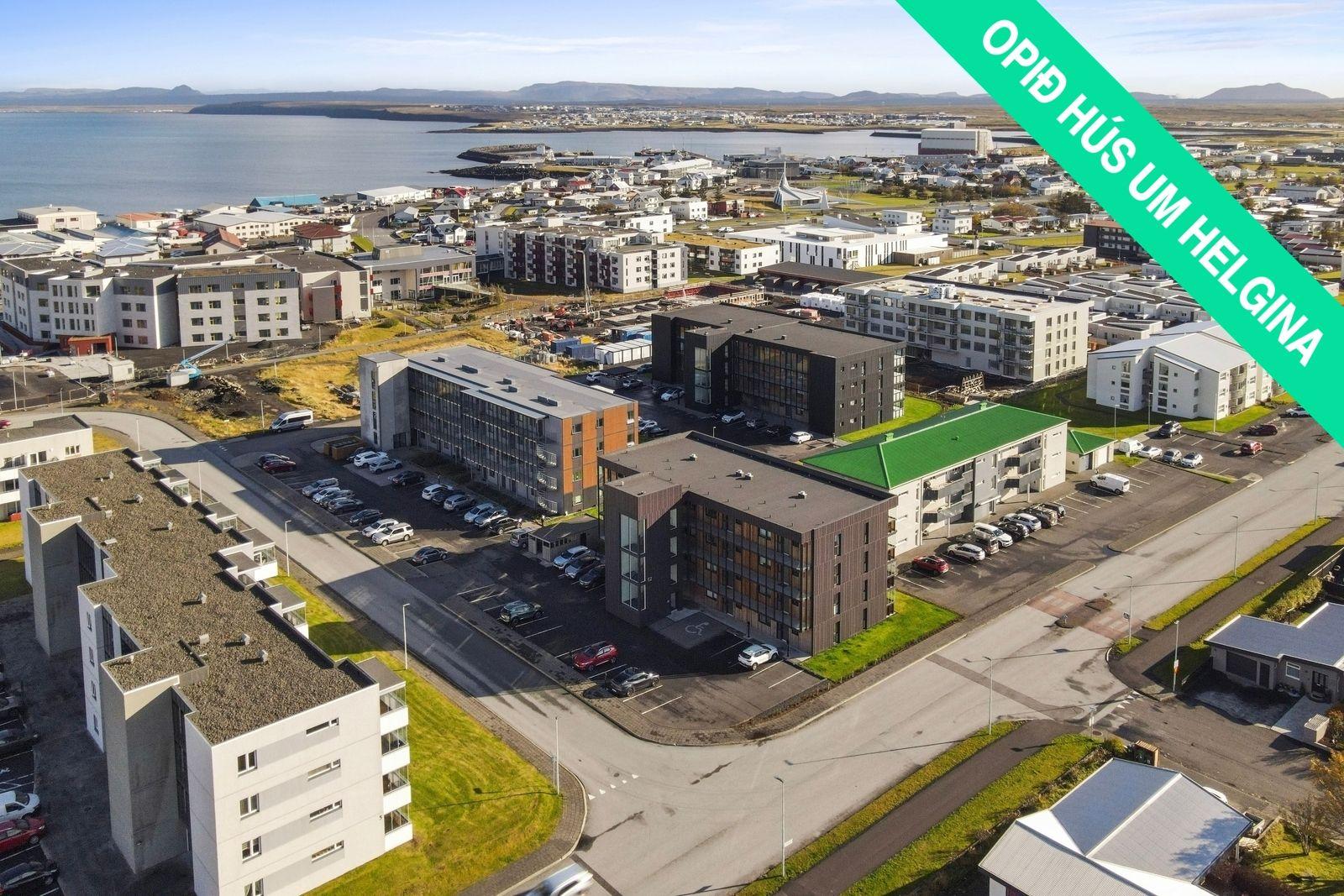 Vallarbraut 12, íbúð 102, 260 ReykjanesbærÞriggja herbergja íbúð á fyrstu hæð með sérinngangi. Eignin býður upp á tvö svefnherbergi, eldhús með vandaðri innréttingu og eyju, samliggjandi stofa/borðstofa, baðherbergi með walk-in sturtu og þvottahús innangengt frá forstofu. Sérnotareitur með svalalokun og gólfhiti í allri eigninni. Sérmerkt bílastæði fylgir.