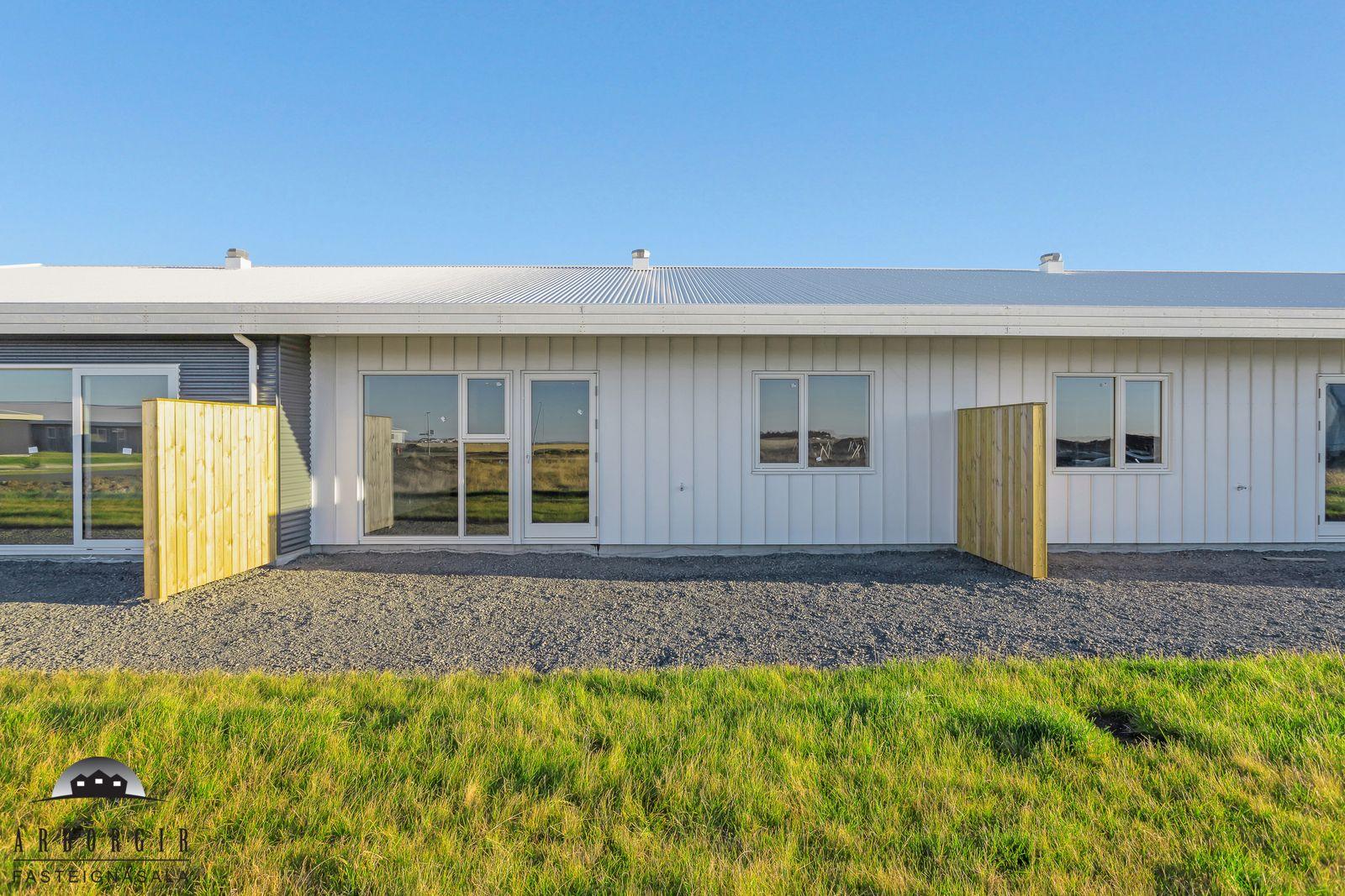 ÁRBORGIR SELFOSSI S 482 4800 kynna í sölu: Fallegt og vel skipulagt raðhús í nýju hverfi á Selfossi. Húsið er timburhús, klætt að utan með lituðu báruáli og Stac Bond klæðningu í bland, bárujárn er á þaki. Heildarstærð eignarinnar er 100m2 og skiptist hún í forstofu, þvottahús, baðherbergi, 3 svefnherbergi, stofu og eldhús í opnu rými.
