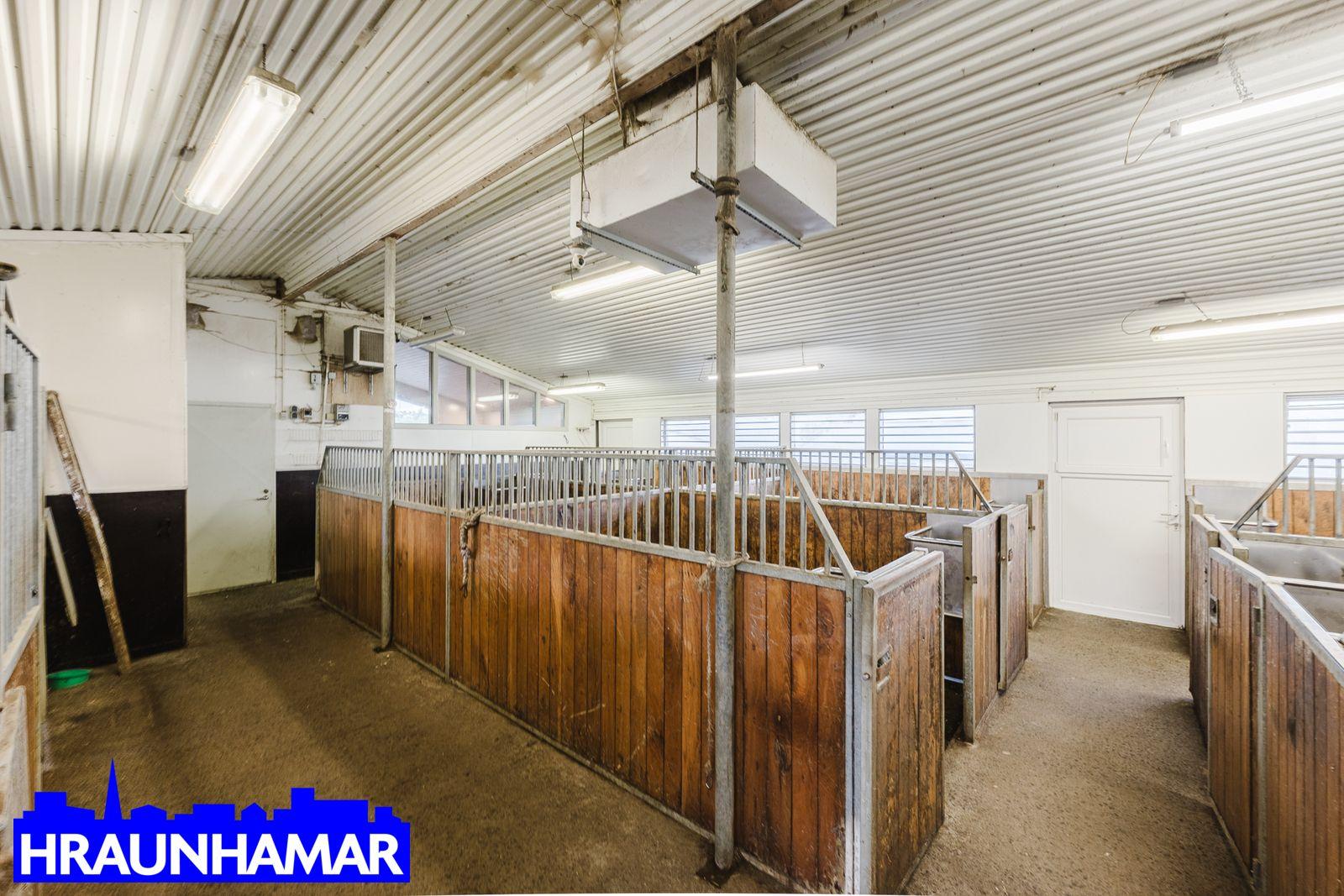 Húsið skiptist m.a. þannig: Hesthús innréttað fyrir ca 20 hesta, hlaða er rúmgóð,kaffistofa er stór og góð, einnig búningsaðstaða sem er með skápum. Góð snyrting. Rúmgott sér gerði. Öflug loftræsting. Haughús sem er velmokað er undir húsinu.