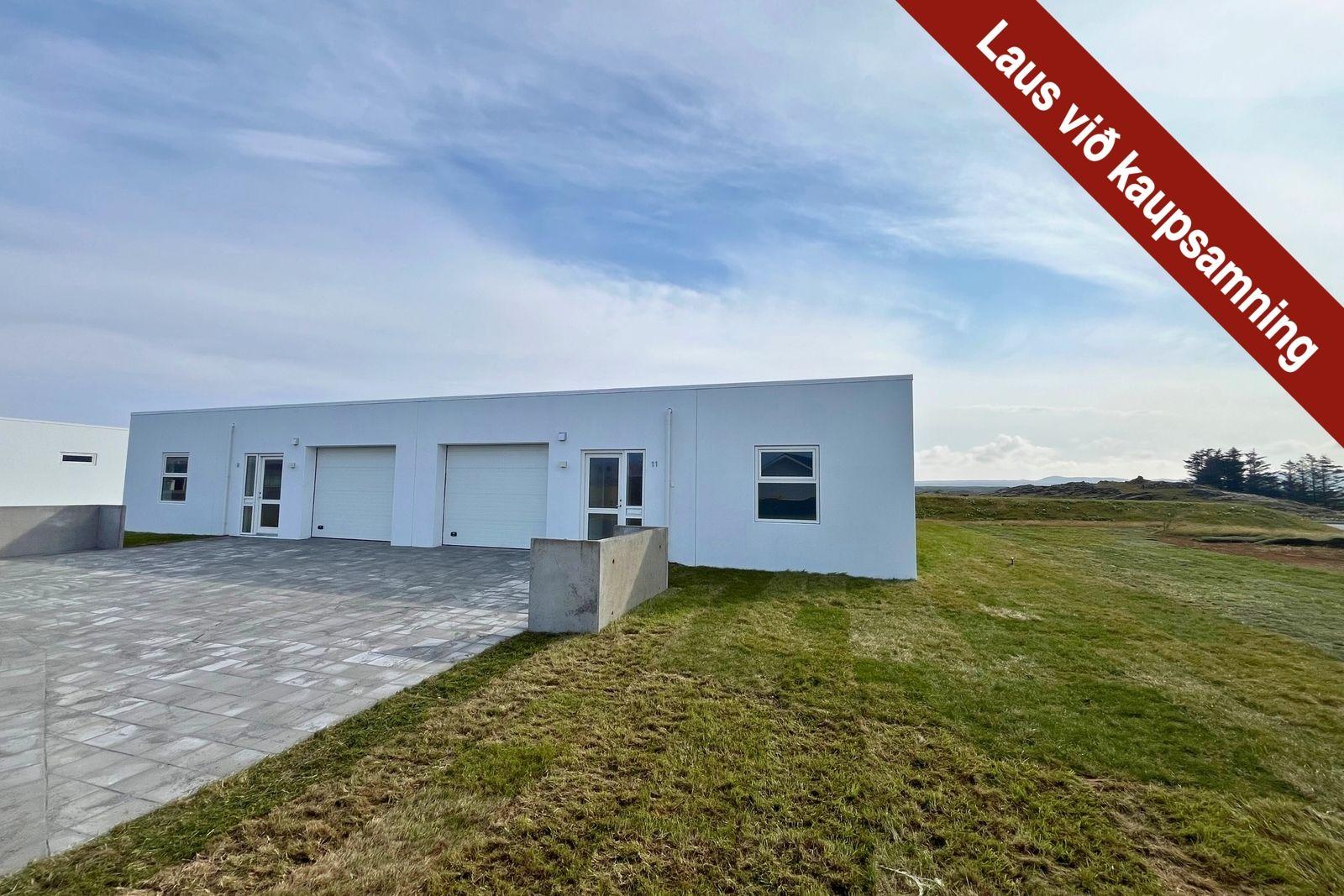 Parhús á einni hæð með bílskúr byggt úr forsteyptum einingum. Útveggir eru klæddir forsteyptri veðurkápu að utanverðu. Þak er varið með PVC dúk með malarfargi. Gluggar eru Ál-tré með tvöföldu K-gleri. Gert er ráð fyrir 2 bílastæðum á lóðinni, 1 í bílskúr. Steypt, opin sorpskýli eru komin á lóð.