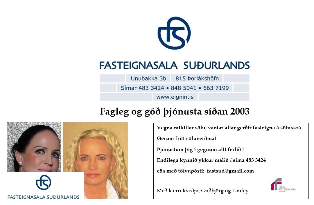 FASTEIGNASALA SUÐURLANDS HEFUR VEITT VANDAÐA OG GÓÐA ÞJÓNUSTU SÍÐAN 2003 !