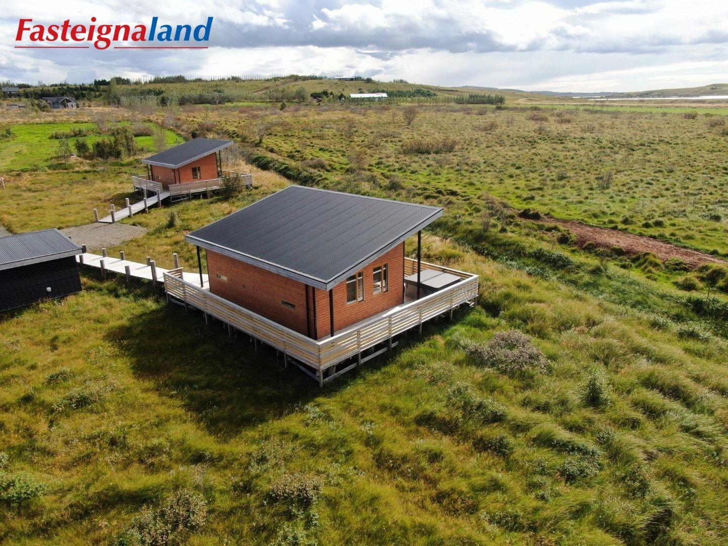 Lýsing á eign nr. 1: Hús skráð gestahús 30 fm. Komið inn alrými/stofu með parketi á gólfi. Herbergi með parketi á gólfi. Baðherbergi með flísum á gólfi og fíbo plötum á veggjum, viðarinnréttingu og „walk in“ sturtu. Eldhús og stofa í sama rými L-laga með góðri lofhæð. Viðarinnréttingu og sambyggðri eldavél með kermik helluborði/uppþvottavél. Góður pallur með handriðið. Heitur pottur.