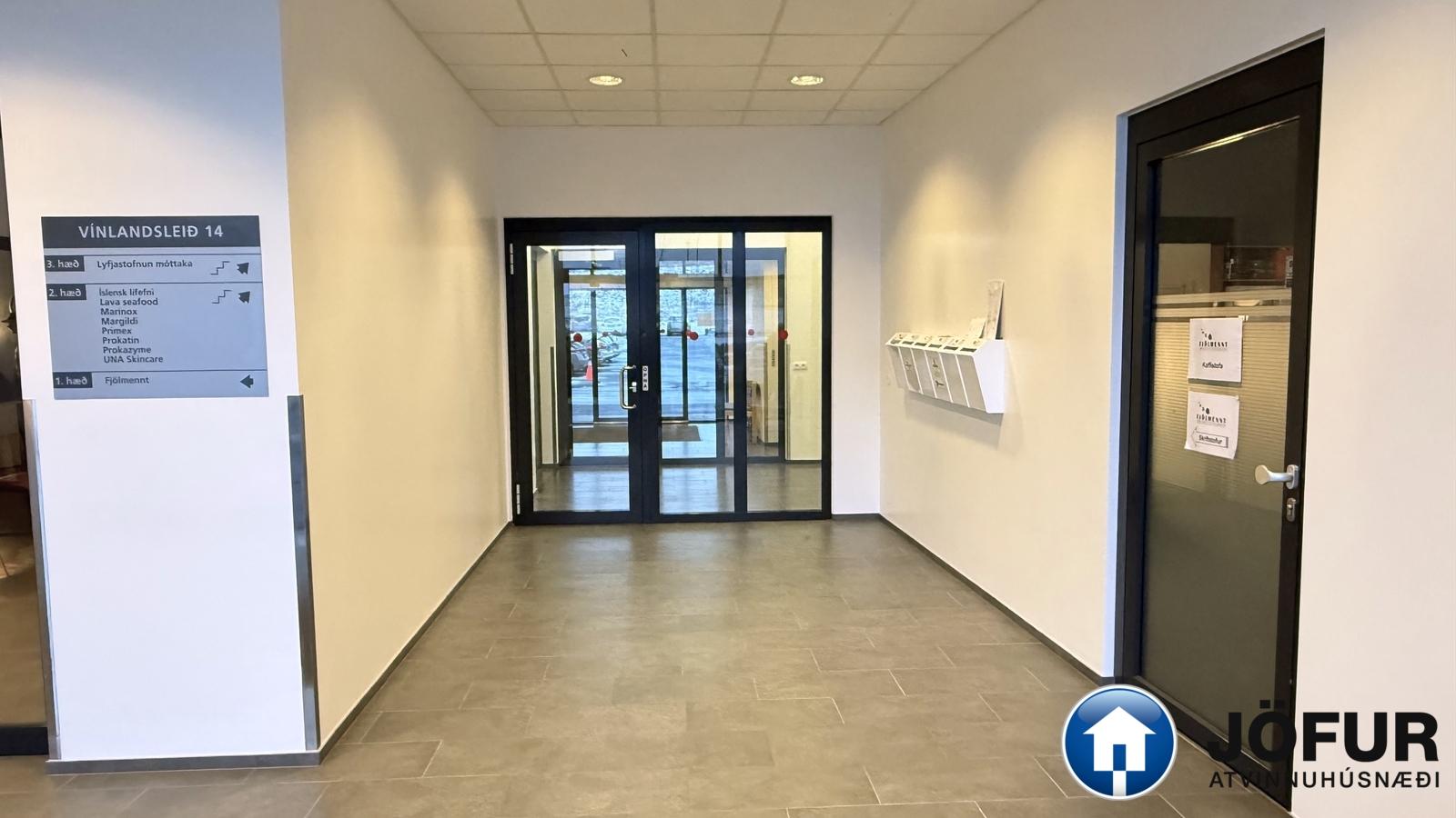Til leigu 183,2 m² skrifstofa í Vínlandsleið 14, 113 Reykjavík. Um er að ræða snyrtilega skrifstofu með móttöku, þremur stórum skrifstofuherbergjum, tveimur fundarherbergjum og kaffiaðstöðu. Næg bílastæði eru við húsið. Mögulegt er að fjölga skriftofum um tvær þannig að skrifstofur verði samtals fimm. Mötuneyti er í húsinu. Virðisaukaskattur leggst á húsaleigu.