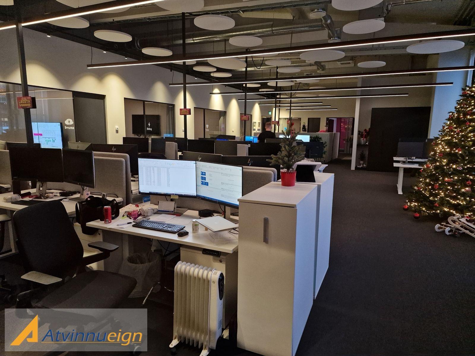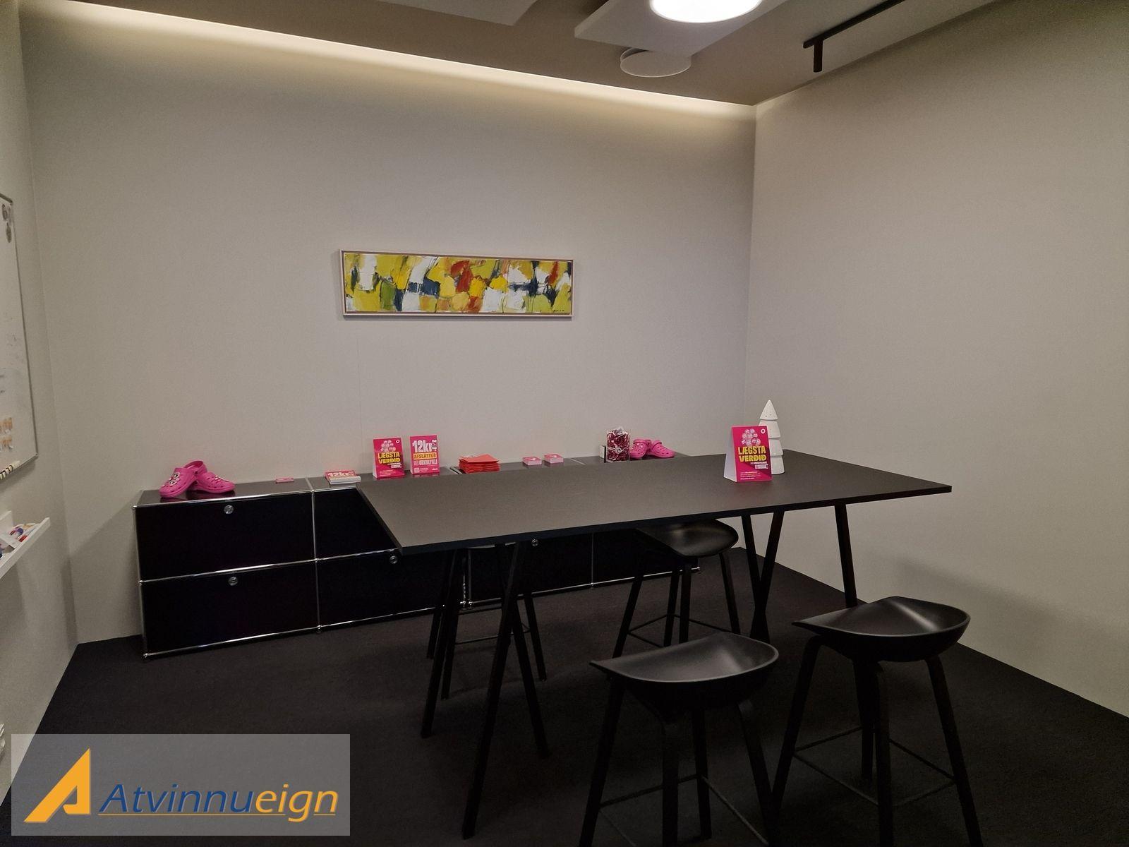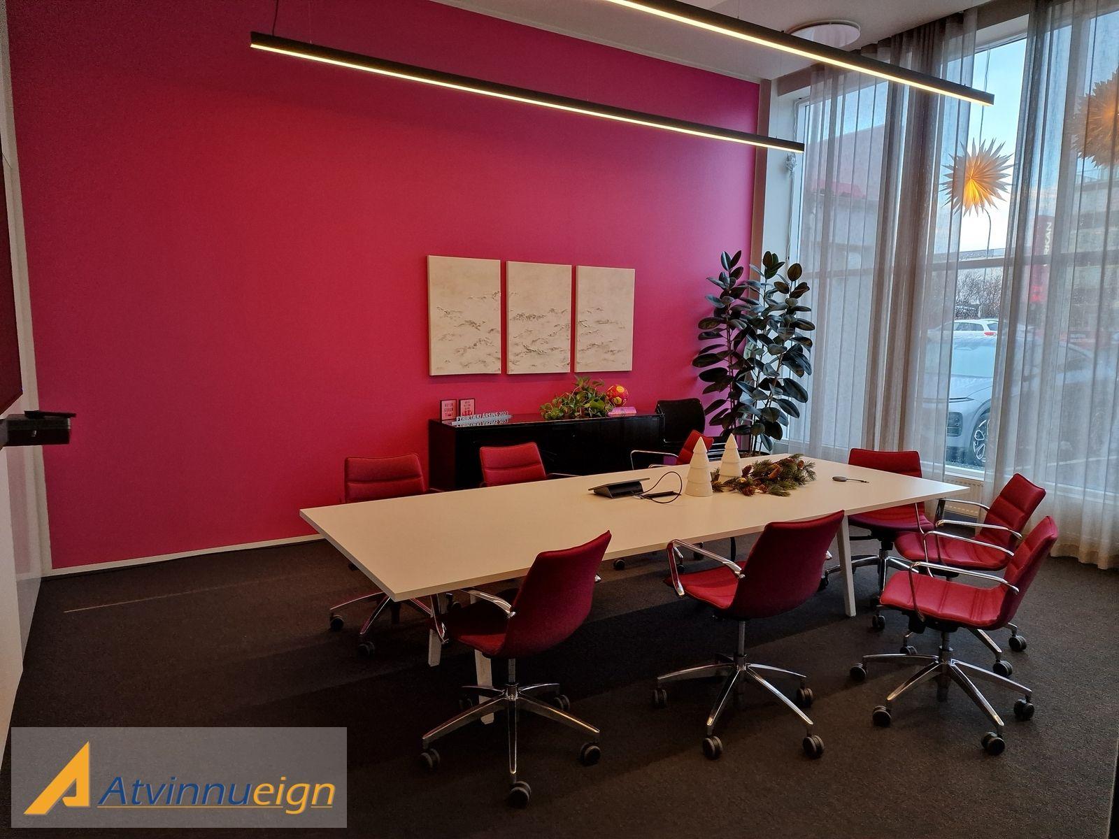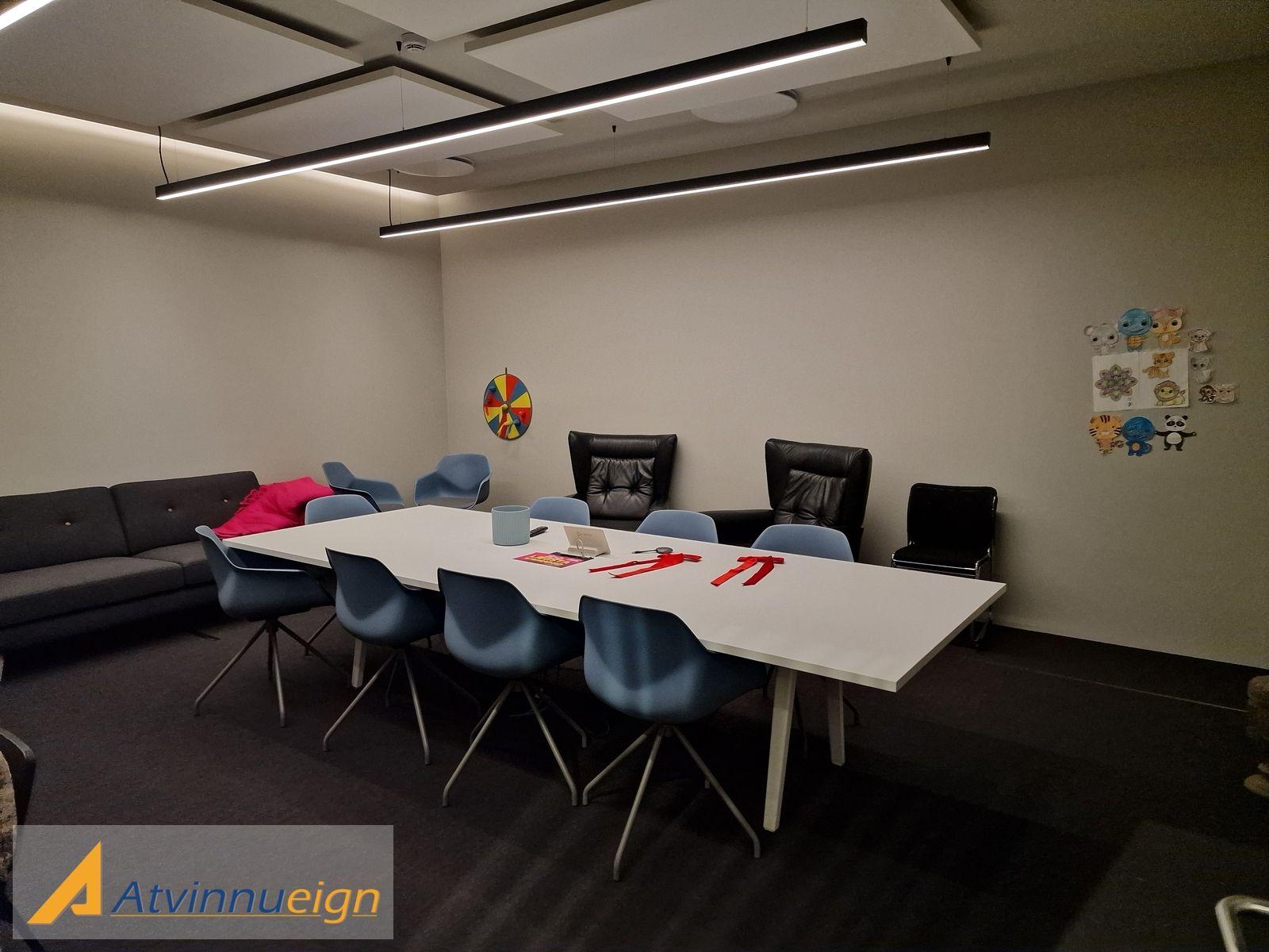 Húsnæðið skiptist í 549 fm skrifstofu- og atvinnuhúsnæði og 452 fm lagerhúsnæði baka til. Rúmgott húsnæði á jarðhæð sem bíður upp á ýmsa möguleika. Í skrifstofuhlutanum eru níu skrifstofu- eða fundarherbergi, opið rými, kaffiaðstaða með iðnaðareldhúsi og nokkur salerni. Í lagerhlutanum er innkeyrsluhurð, gott lagerrými, lítil skrifstofuaðstaða, salerni með sturtum. Góð lofthæð og næg bílastæði eru til staðar. Afhending eftir samkomulagi. VSK bætist við leiguverð.