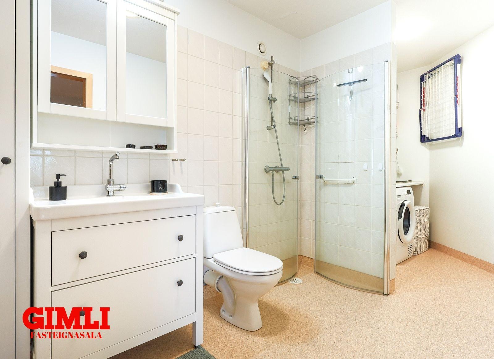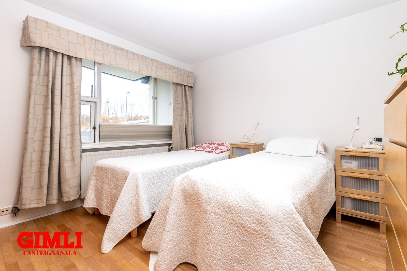 Eignin skiptist í: Forstofu, baðherbergi, tvö svefnherbergi, stofu, borðstofu og eldhús samtals skráð 89,4 fm íbúð og 4,8 fm sérgeymslu í kjallara.Bókið skoðun hjá Herdísi í síma 694-6166 eða herdis@gimli.isNánari lýsing eignar:Komið er inn í rúmgóða forstofu með parketi á gólfi og fataskáp. Þar við hlið er herbergi með fataskáp og parketi á gólfi. Gengt því er rúmgott baðherbergi með vinildúk á gólfi, flísum á veggjum, hvítri innréttingu og þreplausri sturtu með glerhurðum. Inn af baðherbergi er góð aðstaða fyrir þvottavél og þurrkara. Eldhús, borðstofa og stofa eru í opnu og björtu rými með parketi á gólfi. Eldhús er með u-laga viðar innréttingu með eldri tækjum og tengi fyrir uppþvottavél. Borðstofan og stofan eru rúmgóðar og útgengi er úr stofu út á verönd sem snýr til suðvesturs. Hjónaherbergi er rúmgott með parketi á gólfi og góðum fataskápum. Geymslan er með hillum.