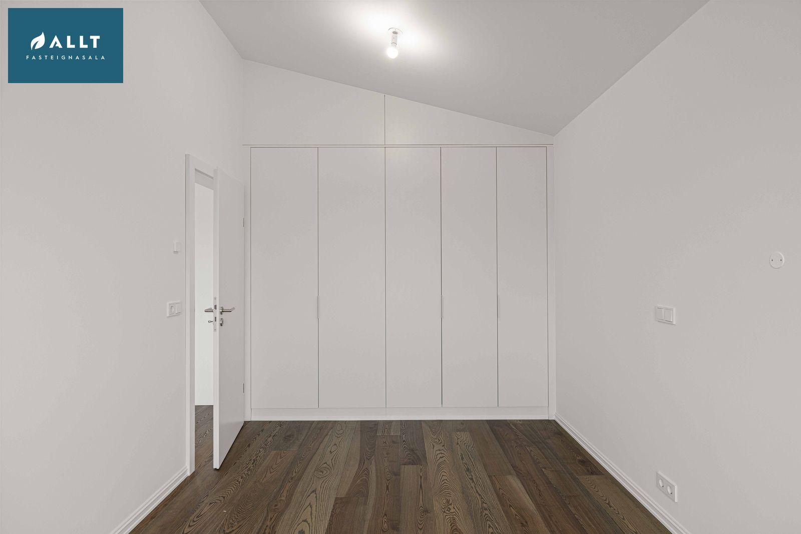 Svefnherbergi eru fjögur talsins þeim fylgja fataskápar í sama lit og efni og er á eldhúsinnréttingu. Parket á gólfum.