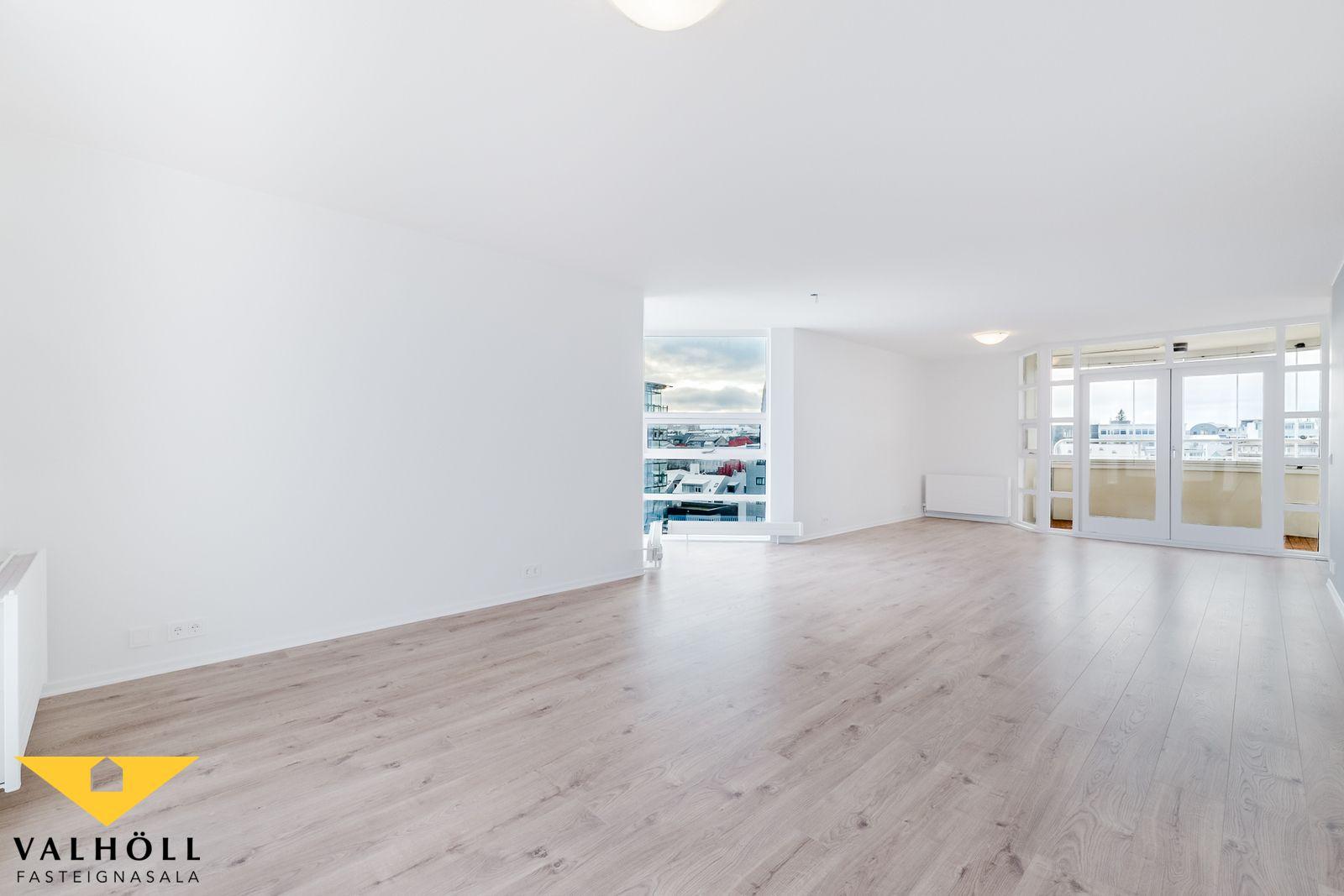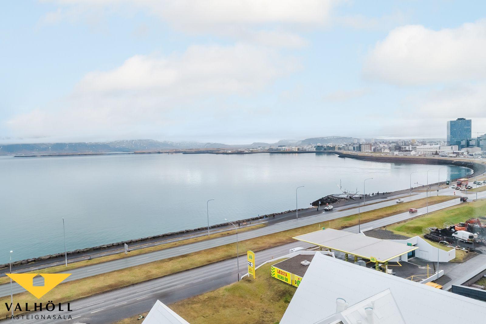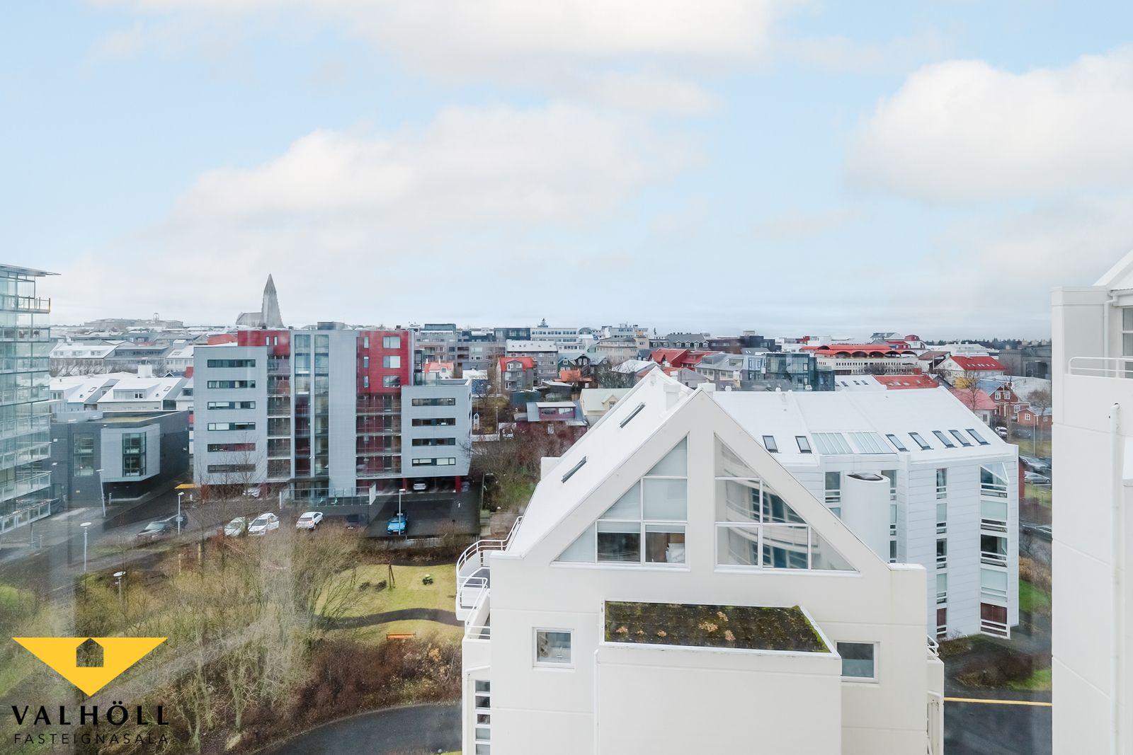 Í SÖLU - KLAPPASTÍGUR 1 - íbúð 903, 3ja herbergja íbúð (113,2 m²) á 9 - hæð í lyftuhúsi , í miðbæ Reykjavíkur. Glæsilegt útsýni er úr íbúðinni til allra átta, tvennar svalir sem snúa í suður og norður, stæði í lokaðri bílageymslu, frábært útsýni er úr íbúðinni, út á sundin, yfir höfnina og til suðurs yfir hluta af Reykjavík.
