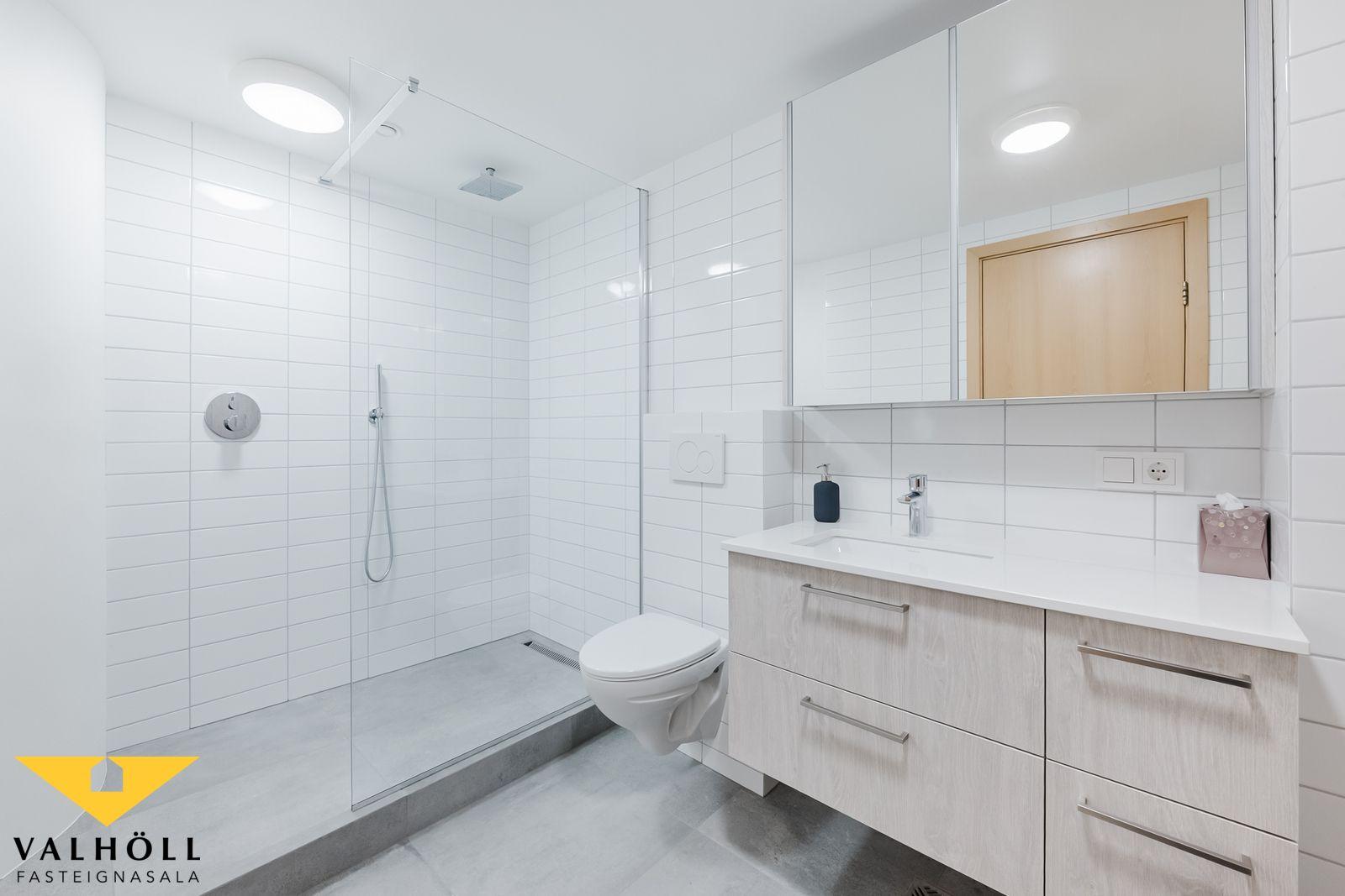 Mjög rúmgott svefnherbergi með stórum skápum og harð parketi á gólfi. Herbergi með skápum og harðparketi á gólfi. Baðherbergi sem búið er að endurgera, rúmgóð walk in sturta, innrétting og skápur Íbúðin deilir svo þvottarhúsi með annari íbúð þar sem hvor er með sína þvottarvél og þurrkara á hæðinni