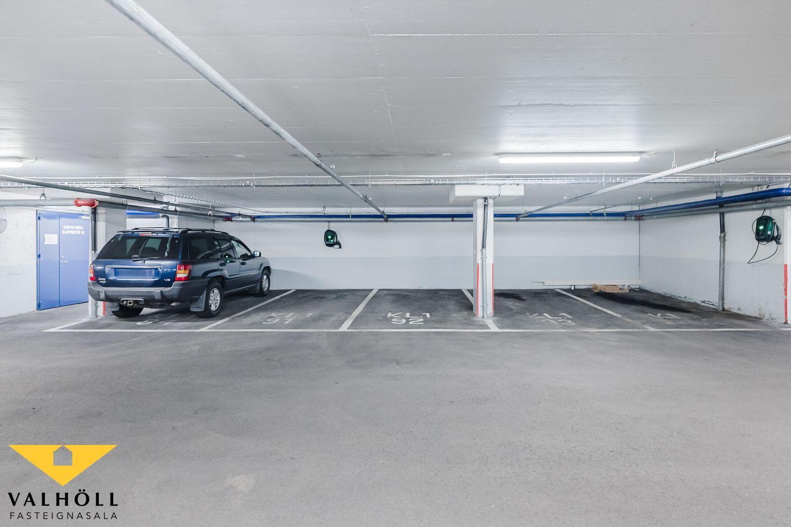 Í kjallara er sér geymsla sem er 6 fm og stæði í bílageymslu, í bílageymslu er hjóla og vagnageymsla og er öll sameign til sérstakrar fyrirmyndar. Húsið við Klapparstíg 1, hefur verið í töluverði endurgerð, m.a þakk og steyptir fletir, auk þess sem búið er að skipta út einhverjum gluggum og gleri. Íbúðin hefur tvennar svalir, suður-svalir sem eru með glerlokun og svo norður svalir með æðislegu útsýni.