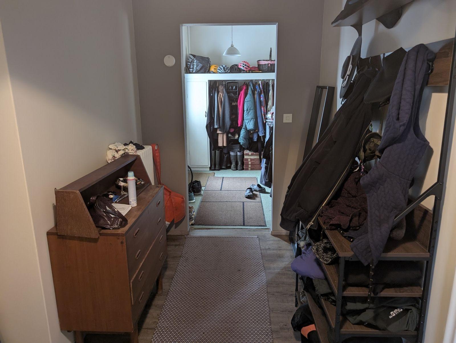 Jarðhæð: Forstofa: Teppi á gólfi og opinn fataskápur. Svefnherbergi: 2 á hæðinni, fataskápar í báðum herbergjum. Stofa og borðstofa: Rúmgóðar með parket á gólfi. Snyrting: Dúkur á gólfi, salerni og innrétting með skápum á vegg. Eldhús: Eldri innrétting, eldavél.