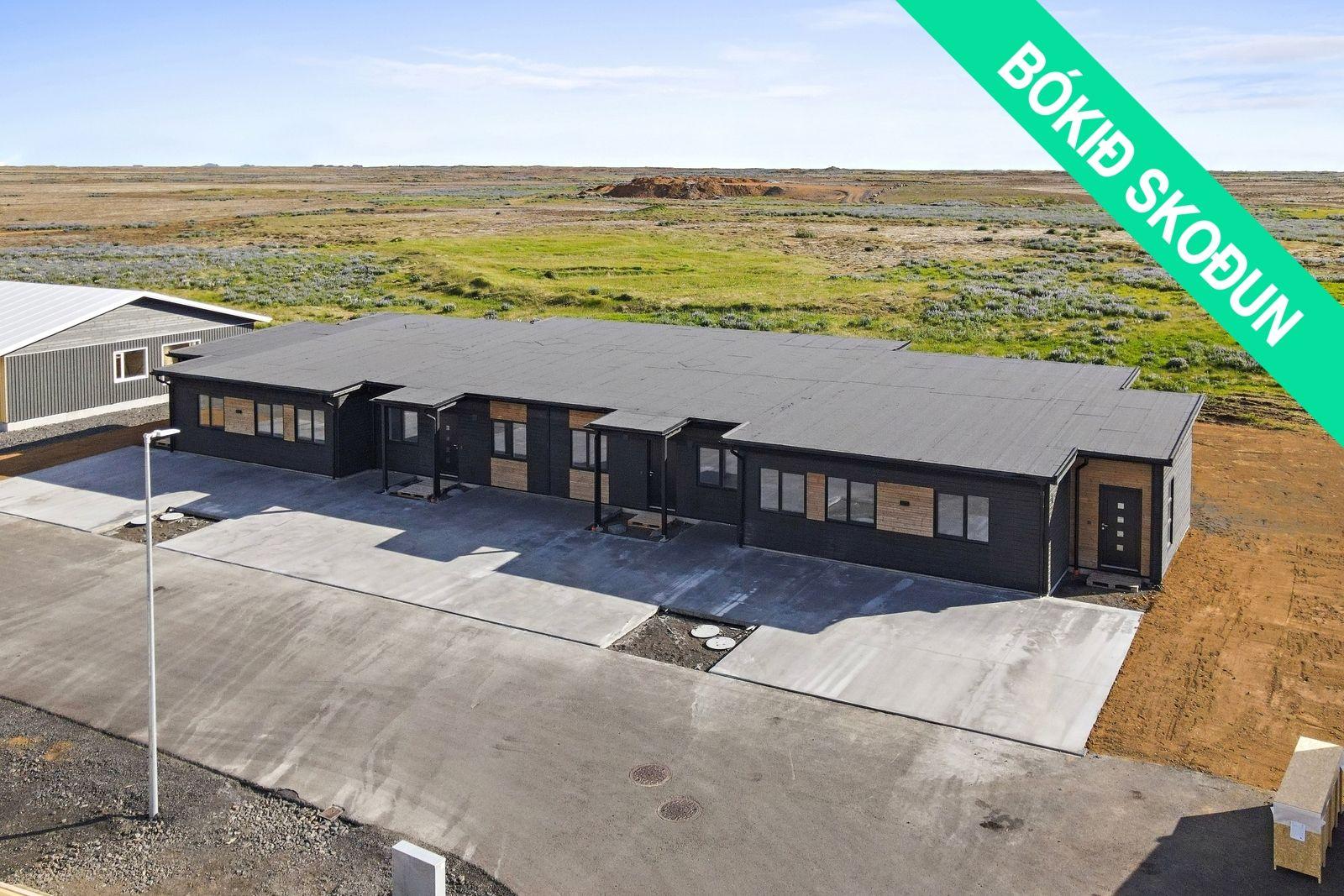 Háteigur 48, 250 GarðurNýtt raðhús á vinsælum stað í Garði. Um er að ræða þriggja svefnherbergja eign á einni hæð með rúmgóðri stofu, opnu eldhúsi og timburverönd. Frágengin lóð og steypt bílastæði.