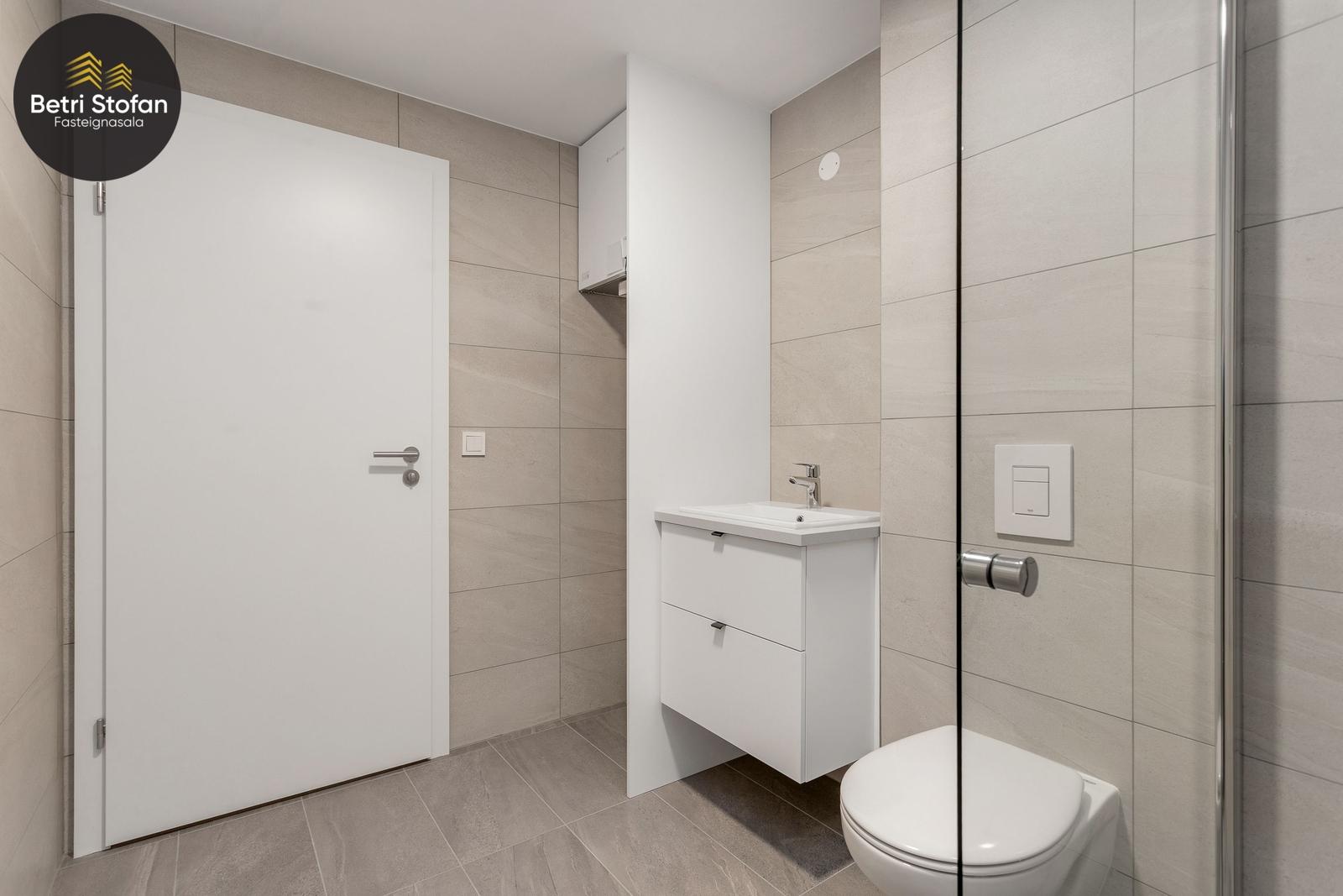 Baðherbergi: Vegghengt salerni, sturta með flísalögðum sturtubotni. Allur búnaður er frá Grohe.