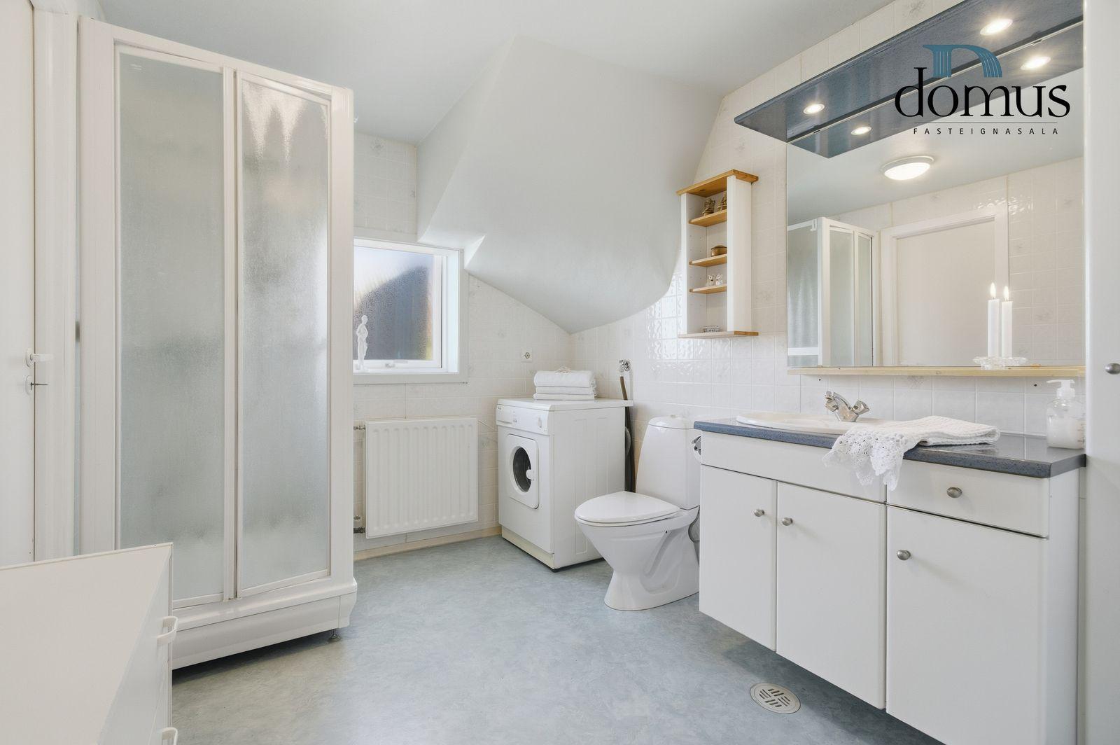 Eignin í stuttu máli: - Þrjú rúmgóð svefnherbergi - Rúmgóð stofa og eldhús með fallegri viðarinnréttingu - Baðherbergi með sturtu og aðstöðu fyrir þvottavél - Tveir inngangar, þar af annar inn af baðherbergi - Steinsteypt hús með nýlegri utanhússklæðningu