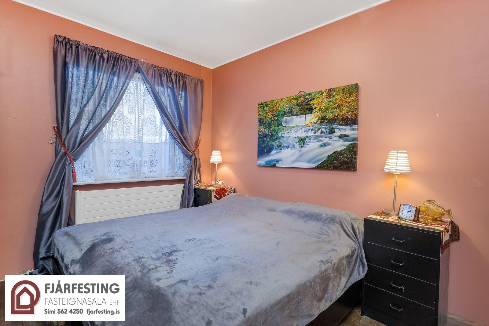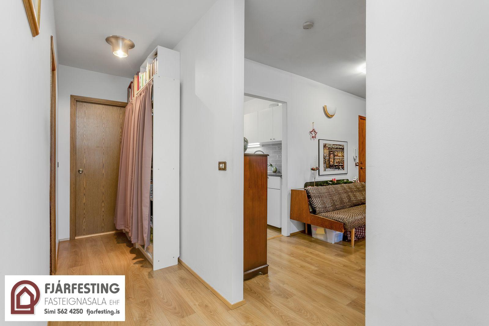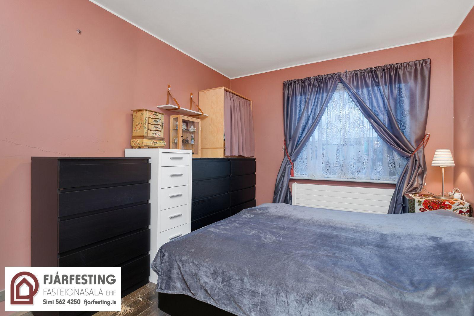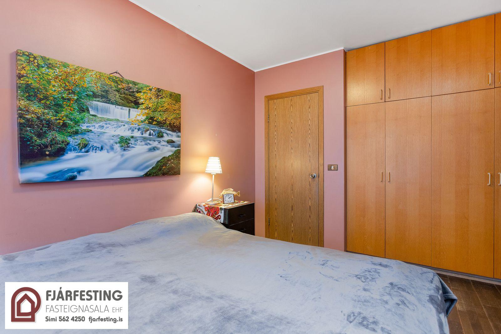 Nánari lýsing: Gengið er inn í anddyri og hol með parketi og fataskáp. Eldhús með nýlegri hvítri innréttingu, parketi á gólfi og borðkrók, gluggi er á eldhúsi. Mjög stór stofa og borðstofa með parketi á gólf, gengið er út á svalir. Mikið og fallegt útsýni er úr íbúðinni. Svefnherbergisgangur með parketi. Upprunalegt baðherbergi með flísum á veggjum og dúk á gólfi, baðker og innrétting. Hjónaherbergi með parketi á gólfi og fataskápum. Tvö góð barnaherbergi og annað með skáp.