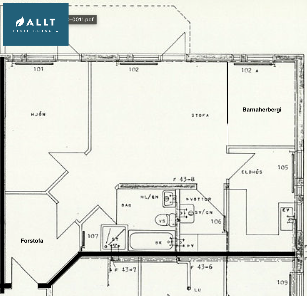 Skoðunar- og aðgæsluskylda kaupanda:Í lögum um fasteignakaup nr. 40/2002 er kveðið á um ríka skoðunarskyldu kaupenda á fasteignum. ALLT fasteignasala vill beina því til væntanlegs kaupanda að kynna sér ástand fasteignar vel við skoðun og fyrir tilboðsgerð. Ef þurfa þykir er ráðlagt að leita til sérfræðifróðra aðila. Forsendur söluyfirlits: Söluyfirlit þetta er samið af fasteignasala til samræmis við lög um sölu fasteigna og skipa nr. 70/2015. Upplýsingar þær sem koma fram í söluyfirliti þessu eru sóttar í opinberar skrár, frá seljanda og eftir atvikum til húsfélags. Seljandi veitir upplýsingar um eignina til samræmis við upplýsingaskyldu sína sbr. lög um fasteignakaup nr. 40/2002. Fasteignasali sannreynir að upplýsingar séu réttar með sjónskoðun á eigninni. Fasteignasali getur ekki fullyrt um ástand og eiginleika þeirra hluta fasteignar sem ekki eru aðgengilegir og sjást ekki með berum augum, eins og t.d. lagnir, dren, skólp og þak.