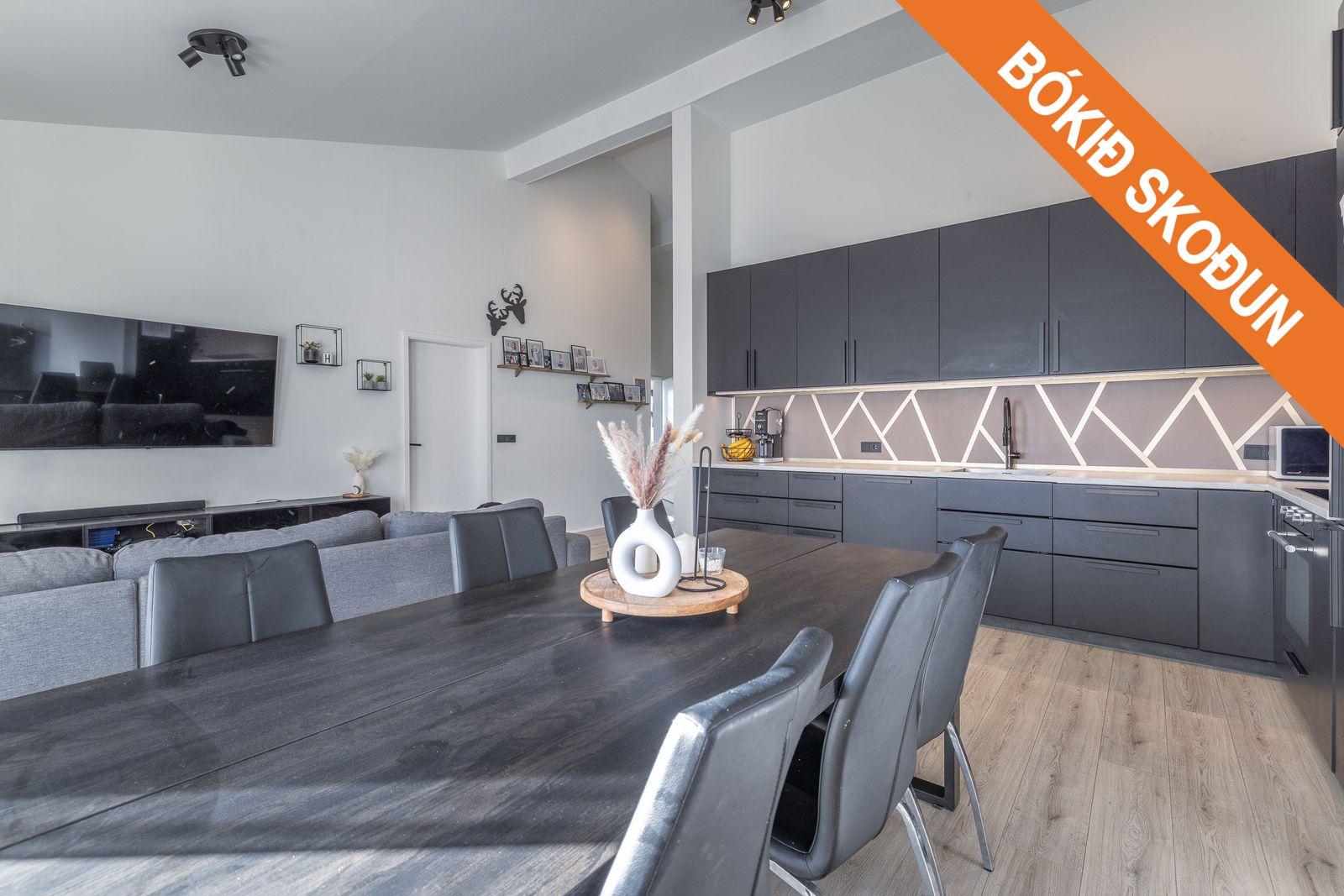 Alrými sem tengir saman stofu, borðstofu og eldhús. Úr alrýminu er gengið út í garð.