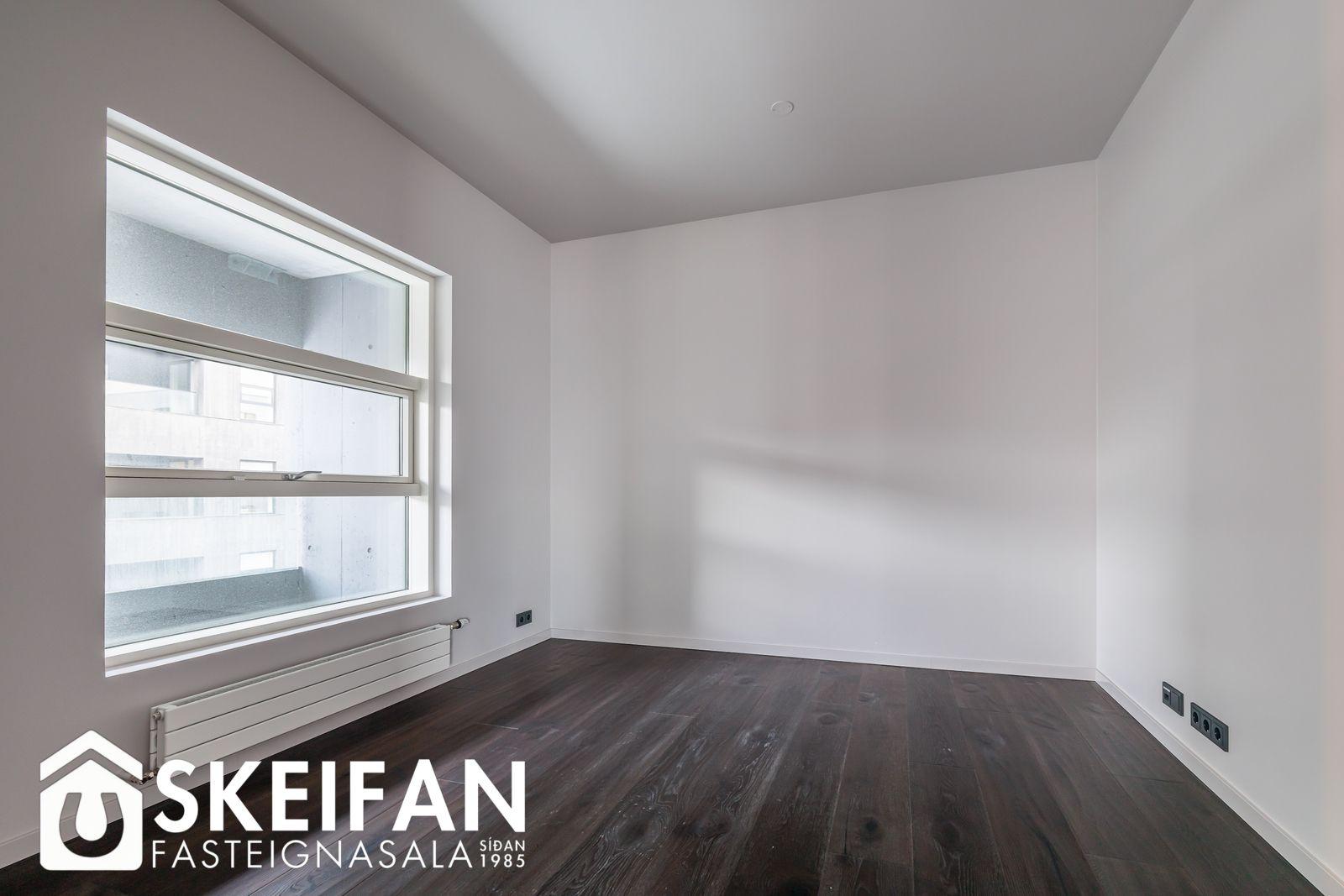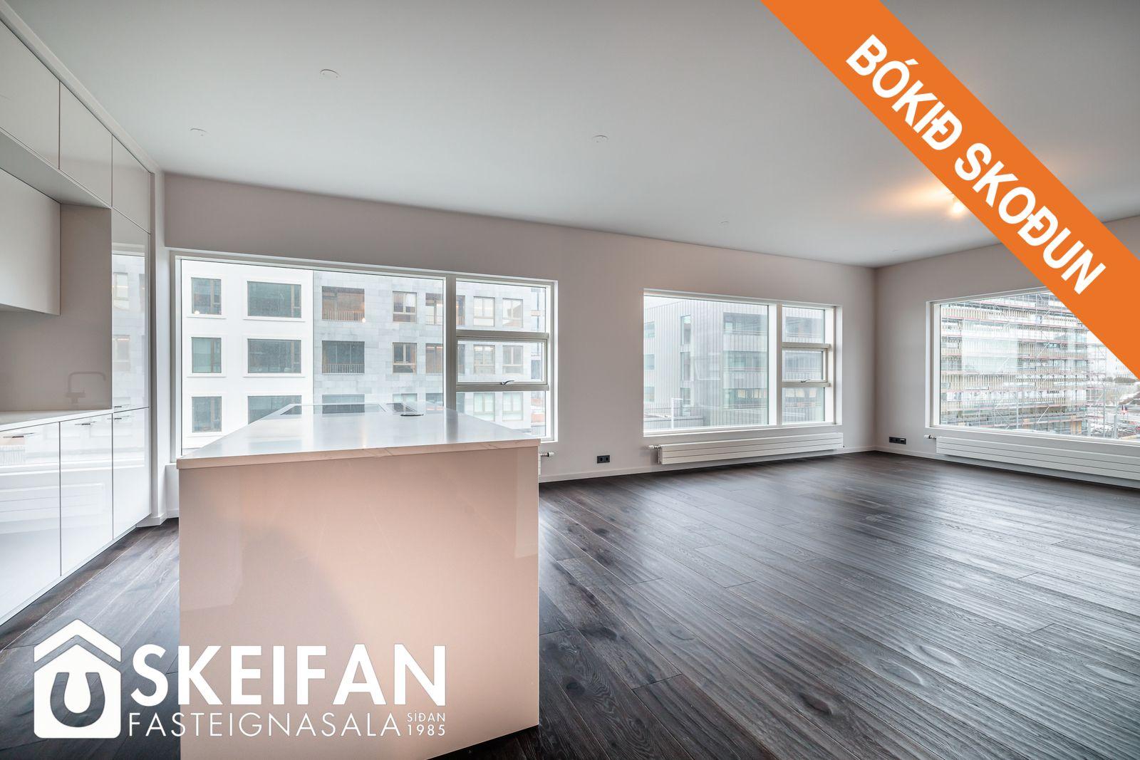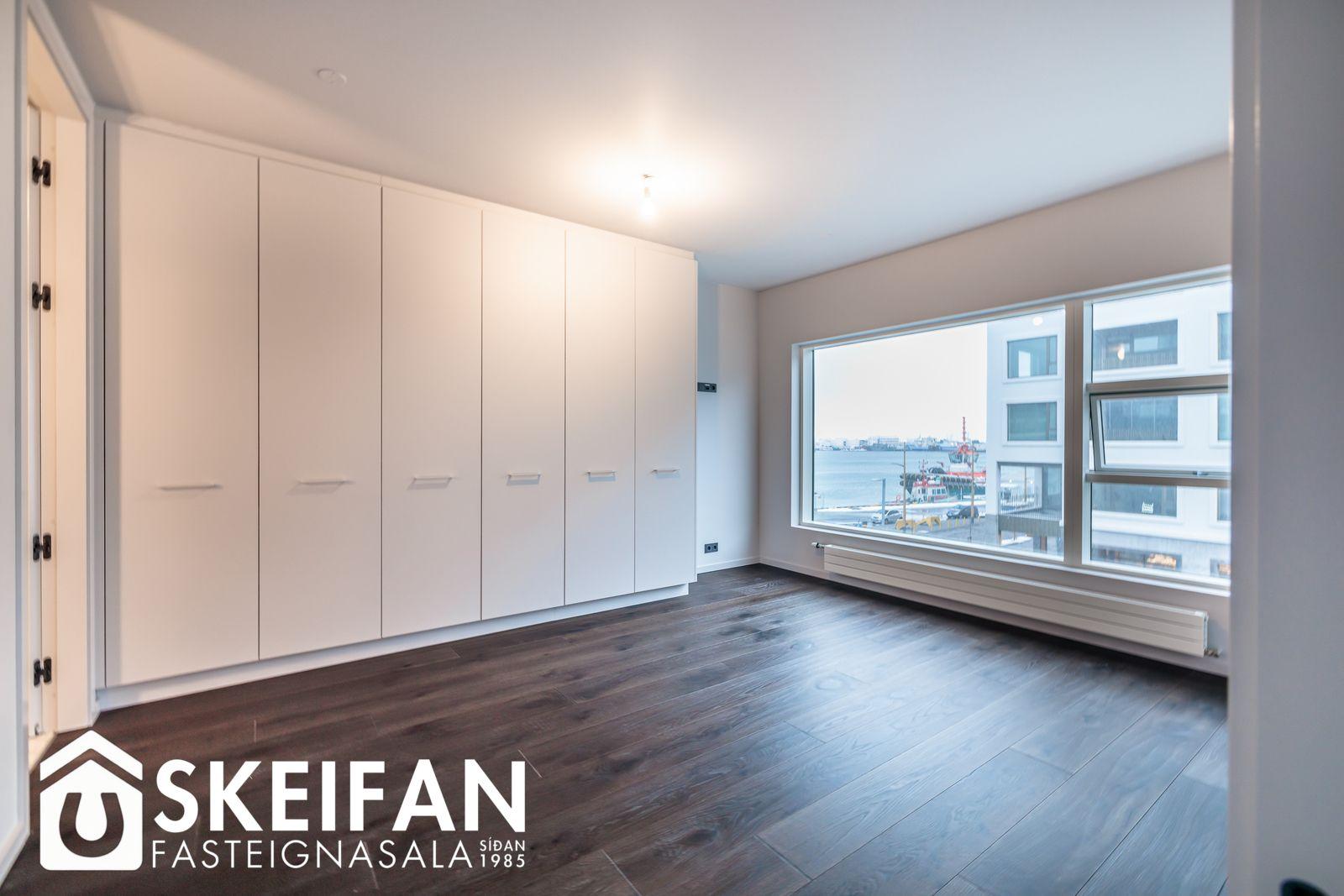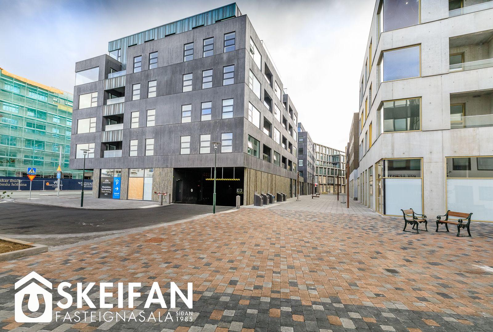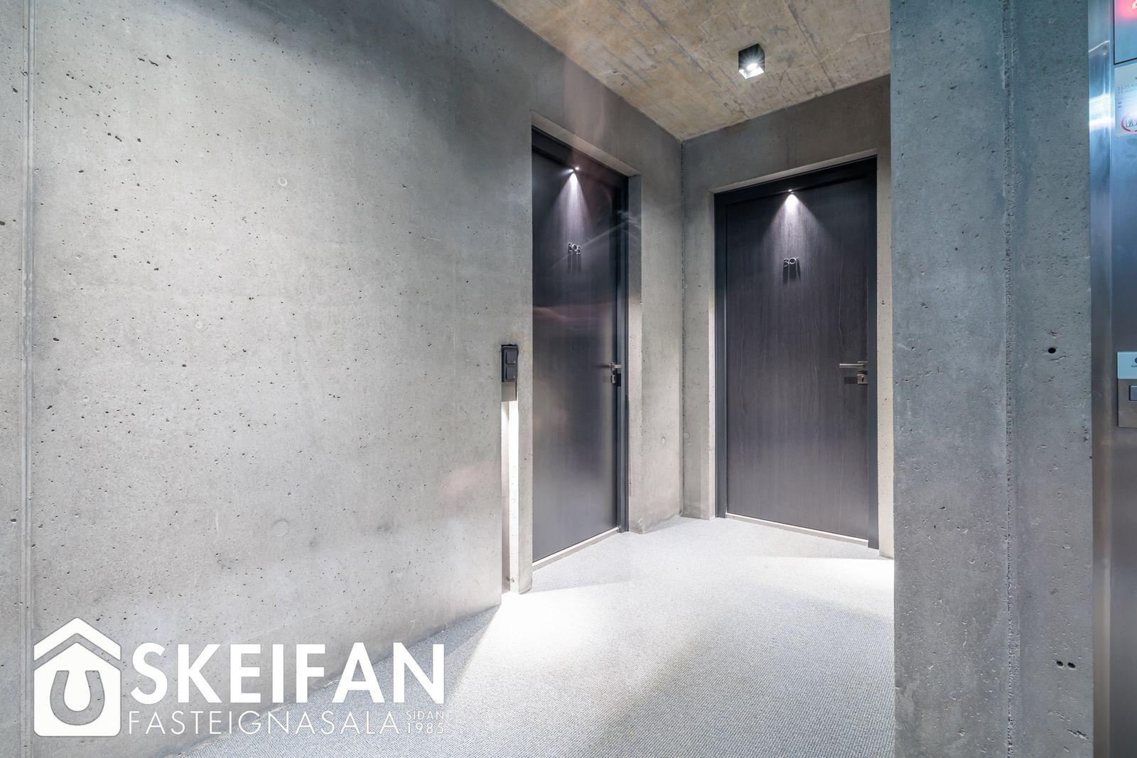Halldór Kristján í síma: 618-9999 / HALLDOR@SKEIFAN.ISKolagata 1 er hluti af Hafnartorgi sem samanstendur af 70 íbúðum í háum gæðaflokki. Byggingarnar tengjast með sameiginlegum bílakjallara, sem tengist einnig við bílakjallara Hörpunnar ásamt örðum byggingum og verður með þeirri tengingu einn stærsti bílakjallari landsins. Hönnun bygginganna er fáguð og tímalaus með áherslur á efni og efnisáferðir, vandaðan frágang, vandaðar innréttingar, búnað og tæki.Almenn lýsing: Að innan er íbúðin máluð með gráu litaþema. Veggir, loft, hurðir og innréttingar eru samlitar. Útihurðir eru raflæstar og tengdar heildstæðu aðgangsstýrikerfi. Dyrasími með myndavél frá Bticino og þráðlausu e-net ljósastýrikerfi frá GIRA. Allar íbúðir eru með loftræstikerfi þar sem upphituðu fersklofti er dælt inn í íbúðir og í votrýmum er vélrænt útsog.
