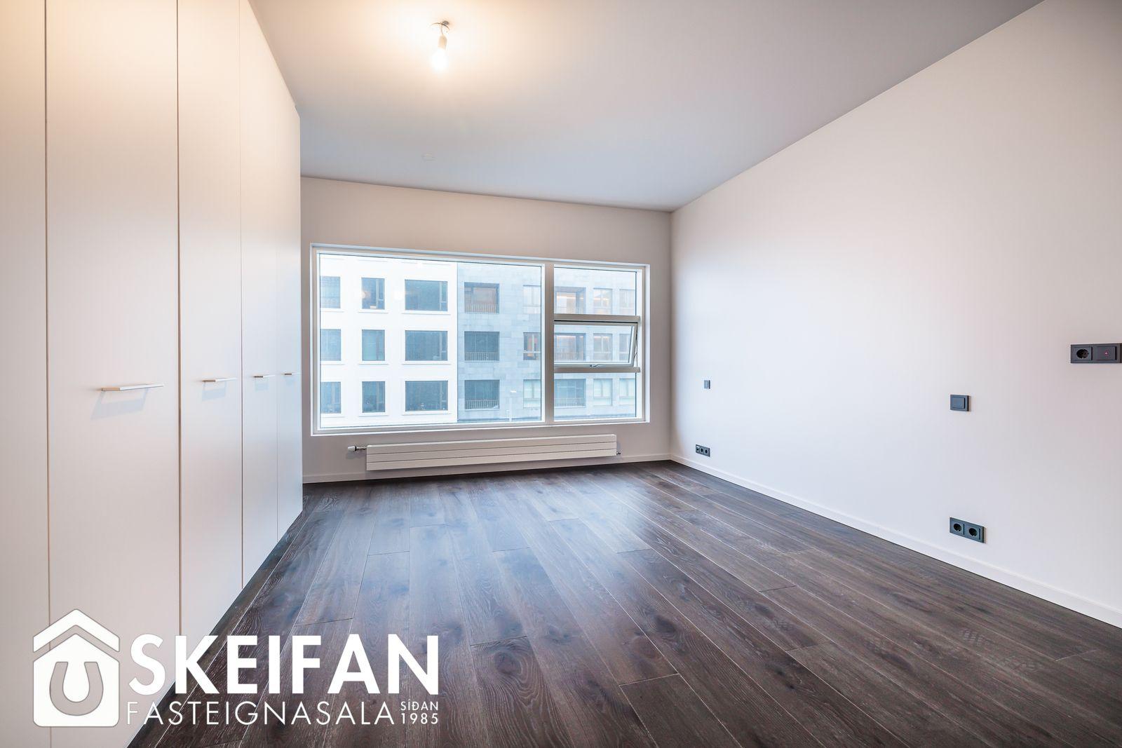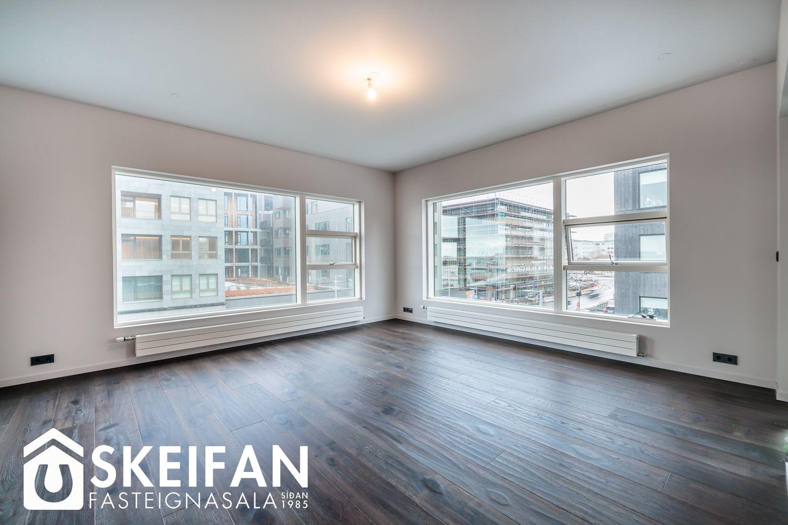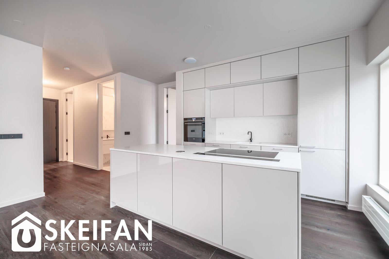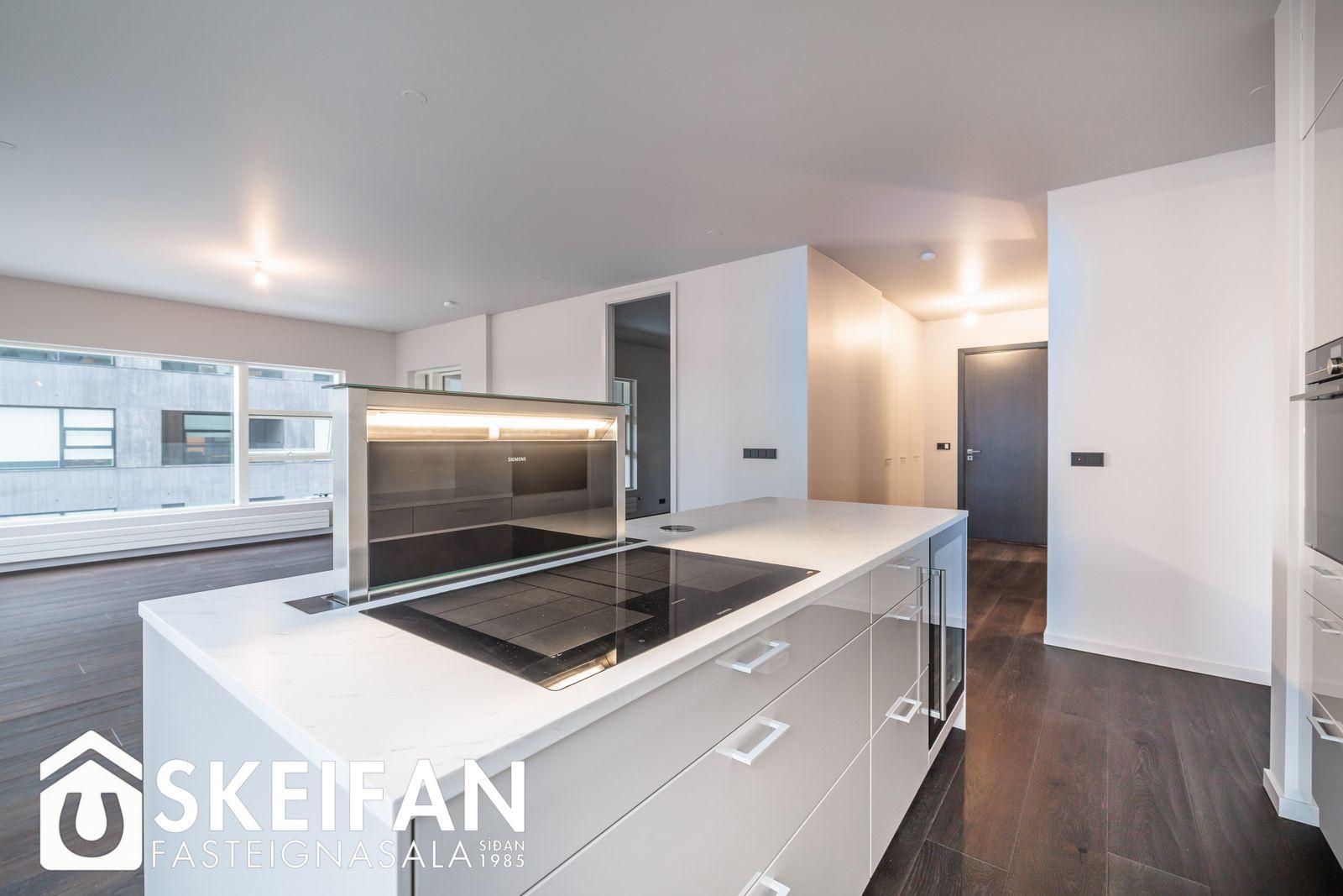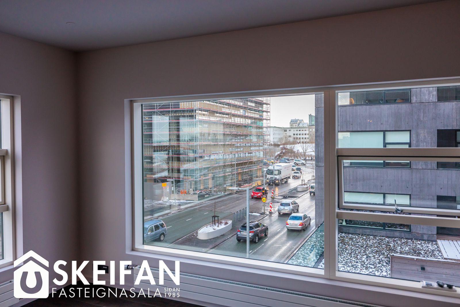 Halldór Kristján í síma: 618-9999 / HALLDOR@SKEIFAN.ISKolagata 1 er hluti af Hafnartorgi sem samanstendur af 70 íbúðum í háum gæðaflokki. Byggingarnar tengjast með sameiginlegum bílakjallara, sem tengist einnig við bílakjallara Hörpunnar ásamt örðum byggingum og verður með þeirri tengingu einn stærsti bílakjallari landsins. Hönnun bygginganna er fáguð og tímalaus með áherslur á efni og efnisáferðir, vandaðan frágang, vandaðar innréttingar, búnað og tæki.Almenn lýsing: Að innan er íbúðin máluð með gráu litaþema. Veggir, loft, hurðir og innréttingar eru samlitar. Útihurðir eru raflæstar og tengdar heildstæðu aðgangsstýrikerfi. Dyrasími með myndavél frá Bticino og þráðlausu e-net ljósastýrikerfi frá GIRA. Allar íbúðir eru með loftræstikerfi þar sem upphituðu fersklofti er dælt inn í íbúðir og í votrýmum er vélrænt útsog.
