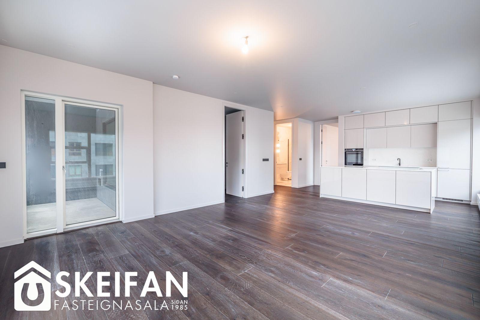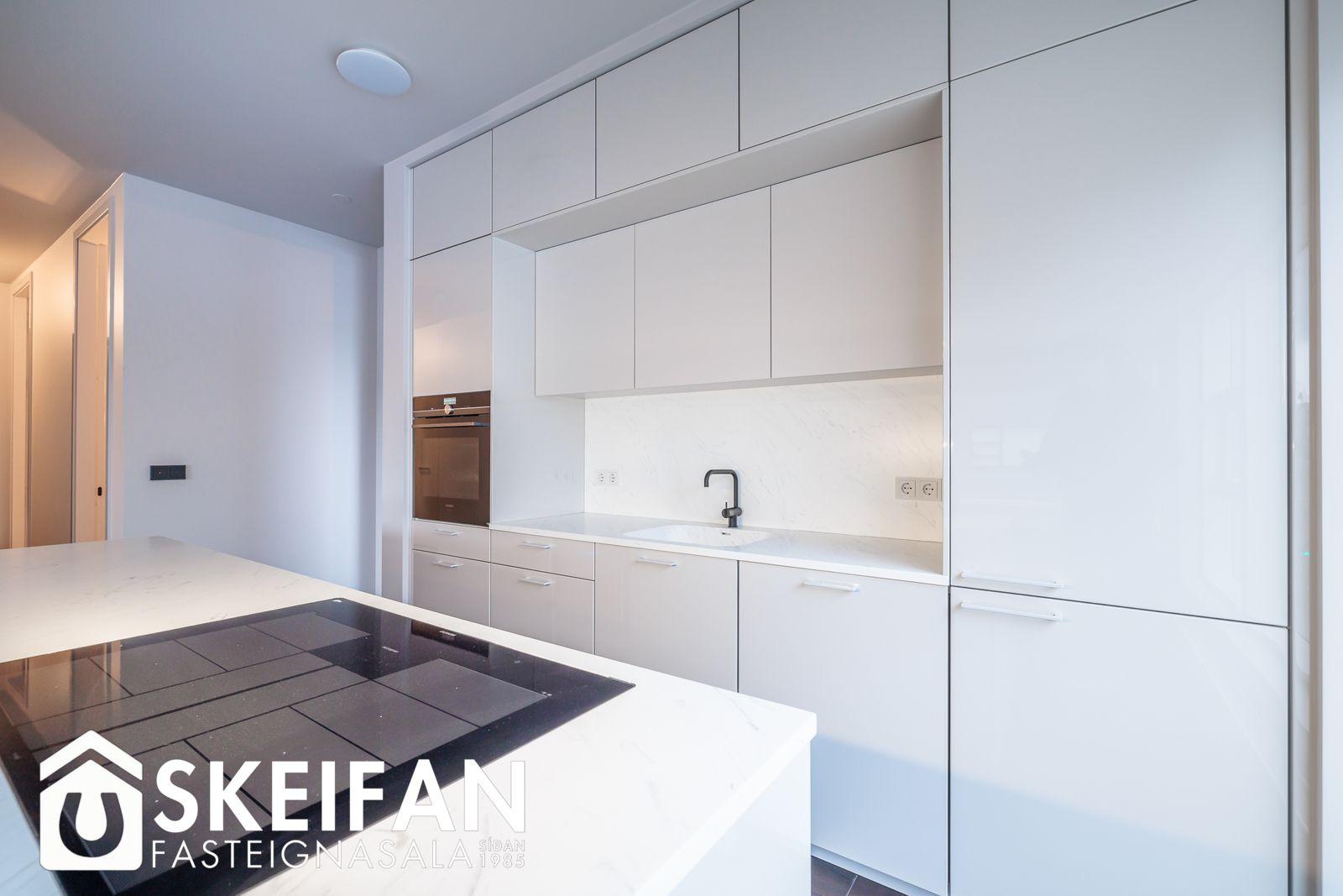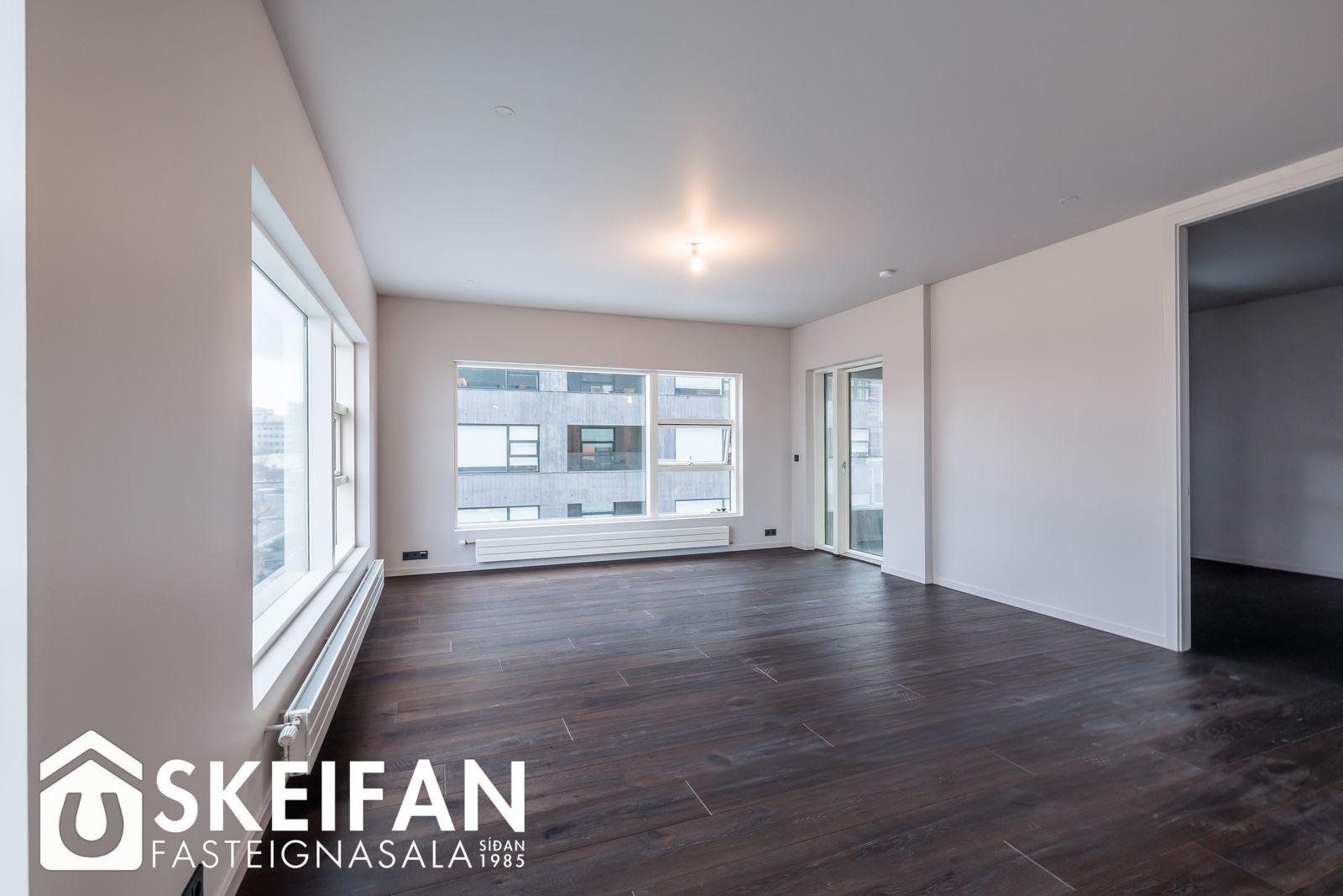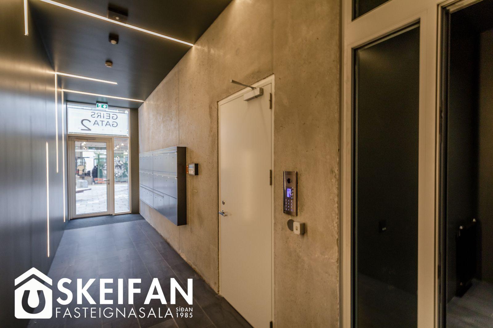Halldór Kristján í síma: 618-9999 / HALLDOR@SKEIFAN.ISKolagata 1 er hluti af Hafnartorgi sem samanstendur af 70 íbúðum í háum gæðaflokki. Byggingarnar tengjast með sameiginlegum bílakjallara, sem tengist einnig við bílakjallara Hörpunnar ásamt örðum byggingum og verður með þeirri tengingu einn stærsti bílakjallari landsins. Hönnun bygginganna er fáguð og tímalaus með áherslur á efni og efnisáferðir, vandaðan frágang, vandaðar innréttingar, búnað og tæki.Almenn lýsing: Að innan er íbúðin máluð með gráu litaþema. Veggir, loft, hurðir og innréttingar eru samlitar. Útihurðir eru raflæstar og tengdar heildstæðu aðgangsstýrikerfi. Dyrasími með myndavél frá Bticino og þráðlausu e-net ljósastýrikerfi frá GIRA. Allar íbúðir eru með loftræstikerfi þar sem upphituðu fersklofti er dælt inn í íbúðir og í votrýmum er vélrænt útsog.